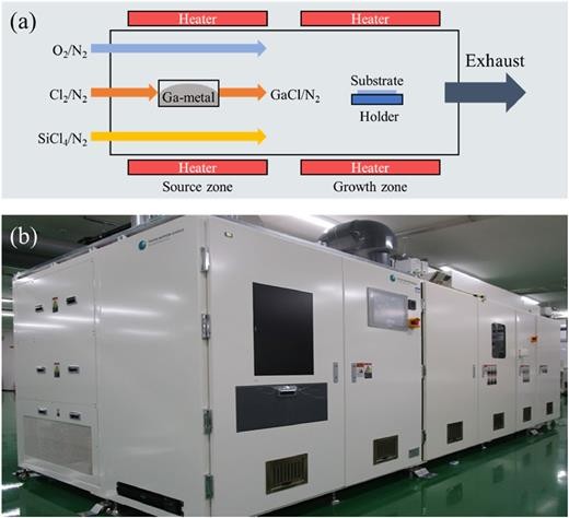 FIG. 8. Typical HVPE system: (a) schematic diagram and (b) physical diagram.
