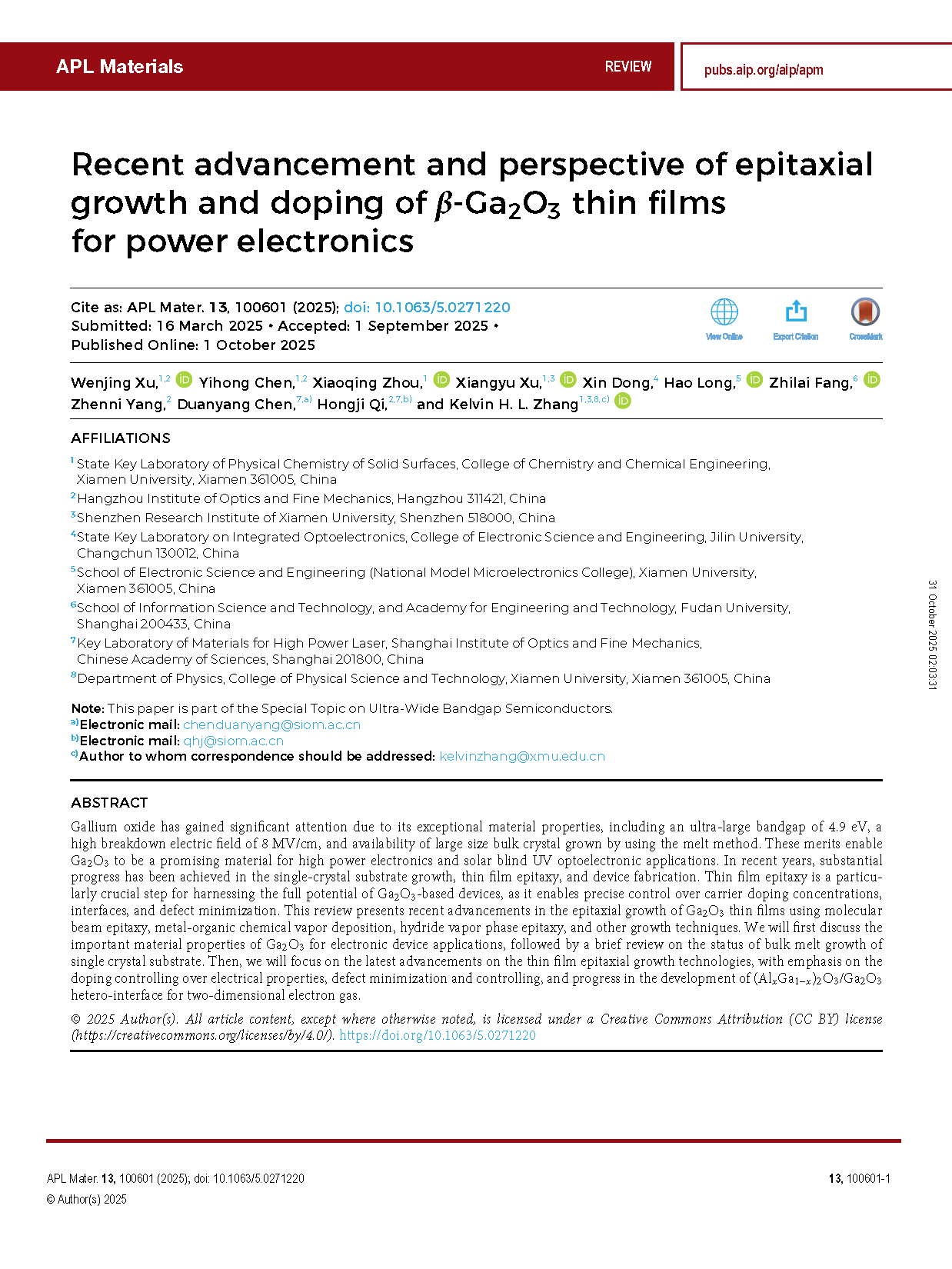 Researchers from the Xiamen University and Hangzhou Institute of Optics and Fine Mechanics have published a dissertation titled "Recent advancement and perspective of epitaxial growth and doping of β-Ga2O3 thin films for power electronics" in APL Materials.