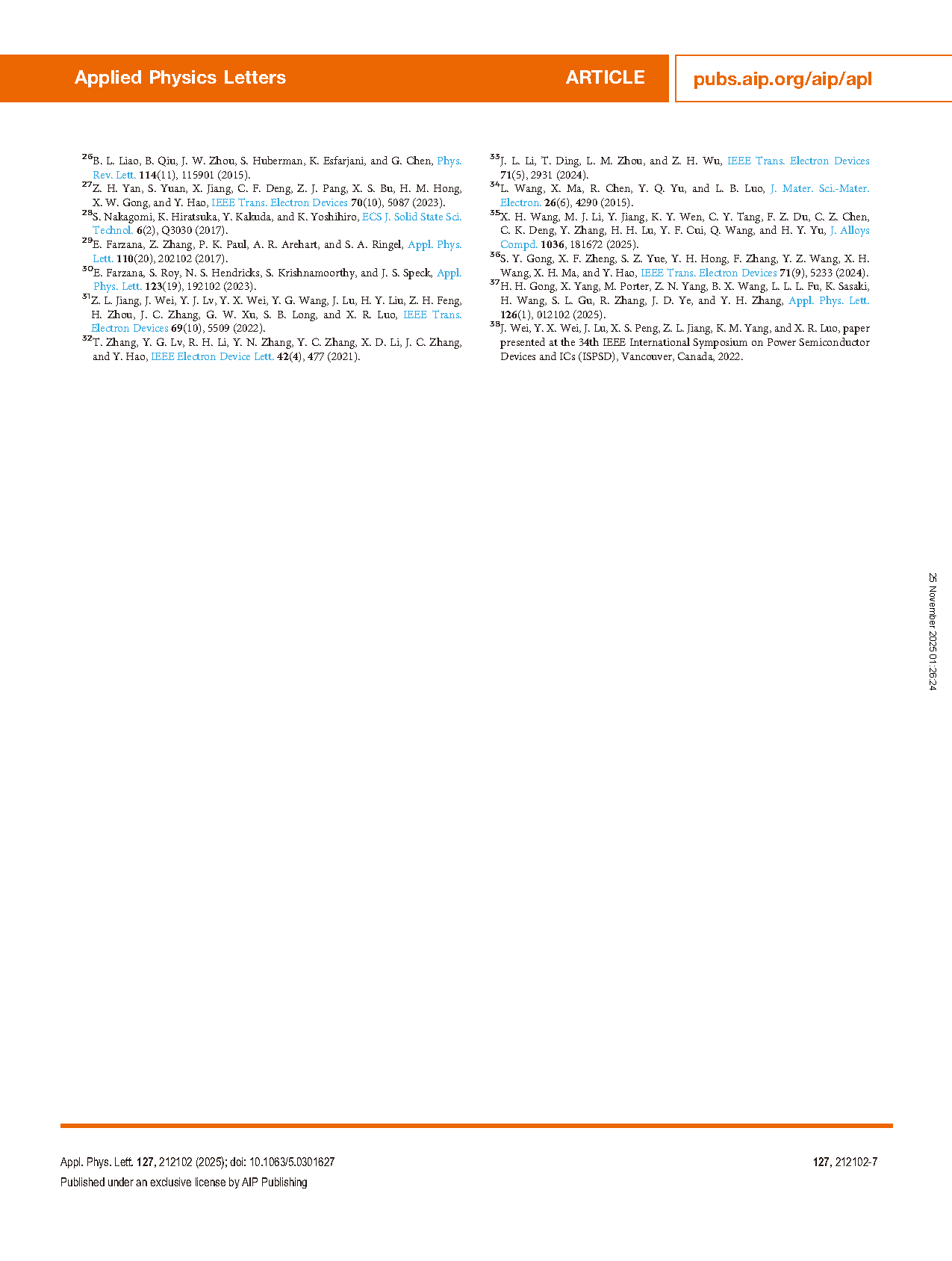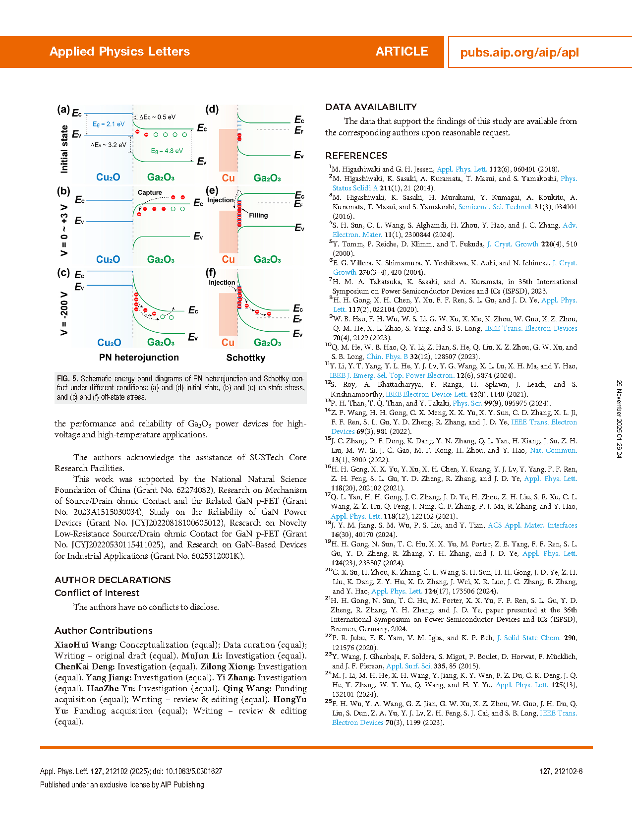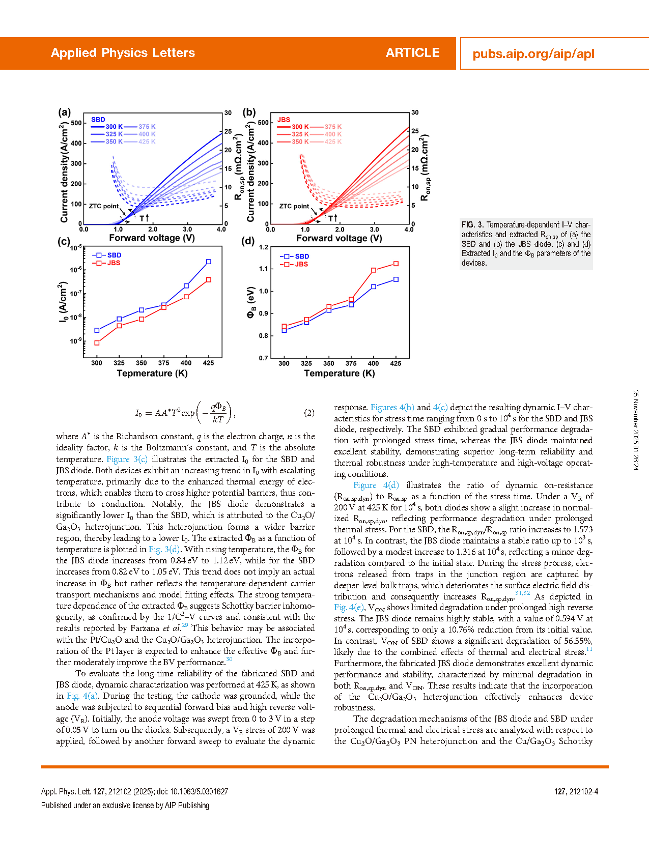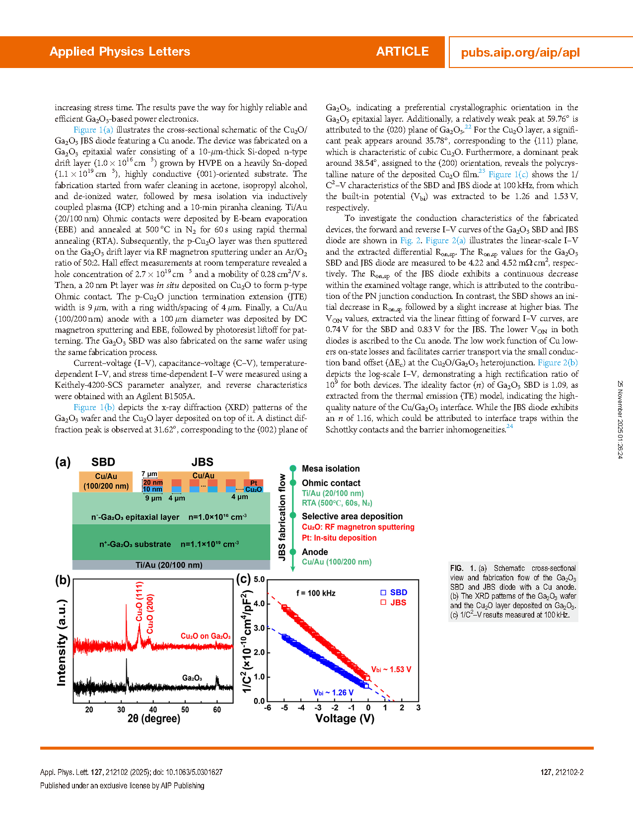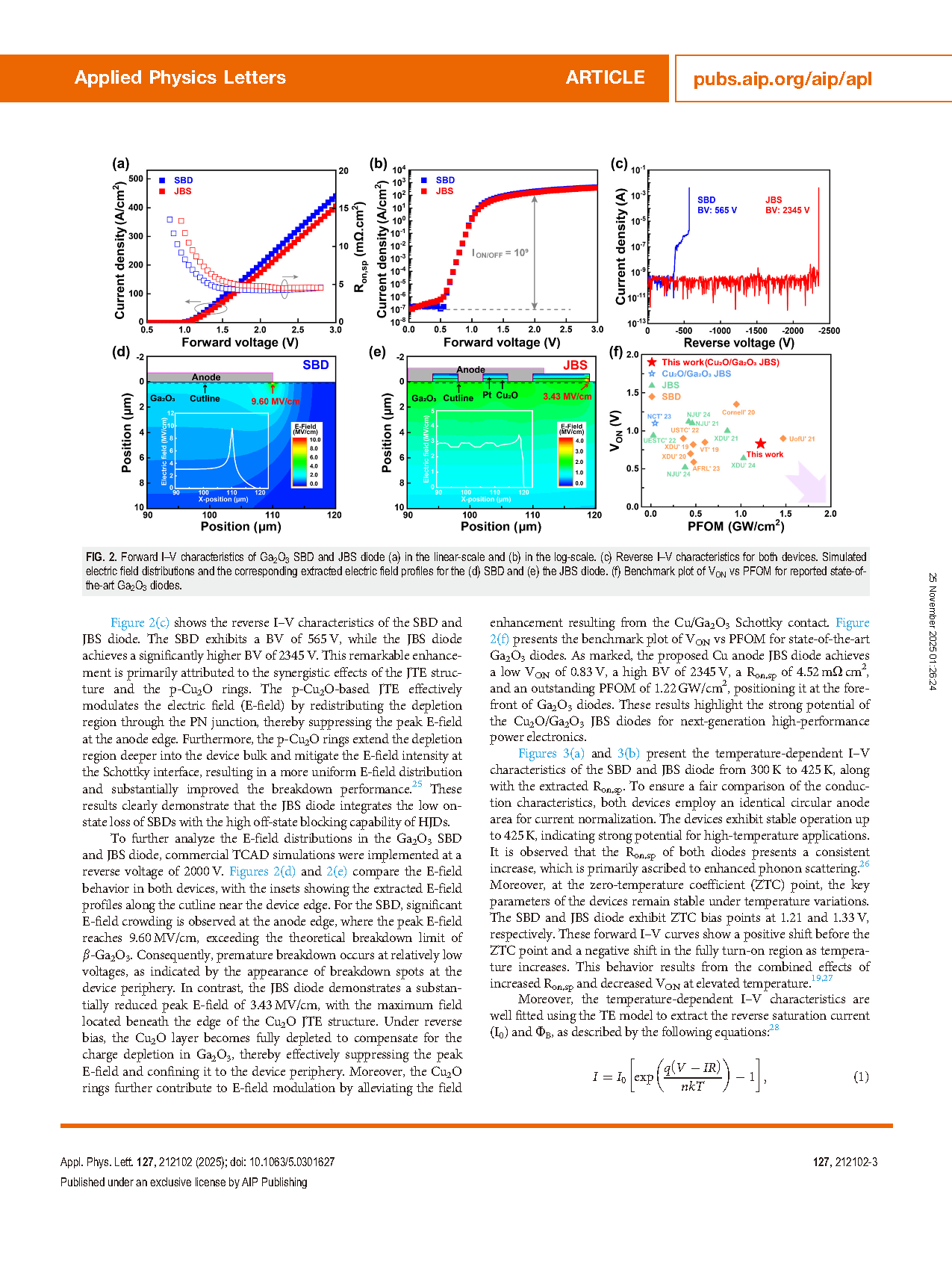 Researchers from the Southern University of Science and Technology and Shenzhen Polytechnic University have published a dissertation titled "2.3-kV β-Ga2O3 heterojunction barrier Schottky diode with Cu anode and robust thermal reliability" in Applied Physics Letters.