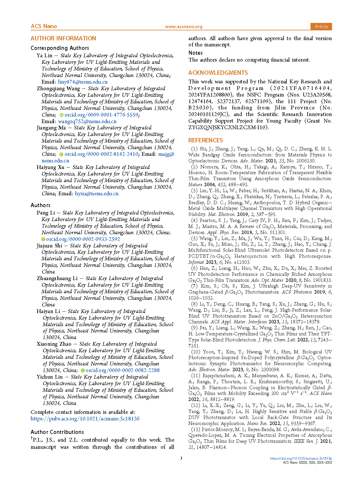 This work was supported by the National Key Research and Development Program (2021YFA0716404, 2024YFA1208800), the NSFC Program (Nos. U23A20568, 12474164, 52372137, 62571109), the 111 Project (No. B25030), the funding from Jilin Province (No. 20240101129JC), and the Scientific Research Innovation Capability Support Project for Young Faculty (Grant No. ZYGXQNJSKYCXNLZCXM-I10).