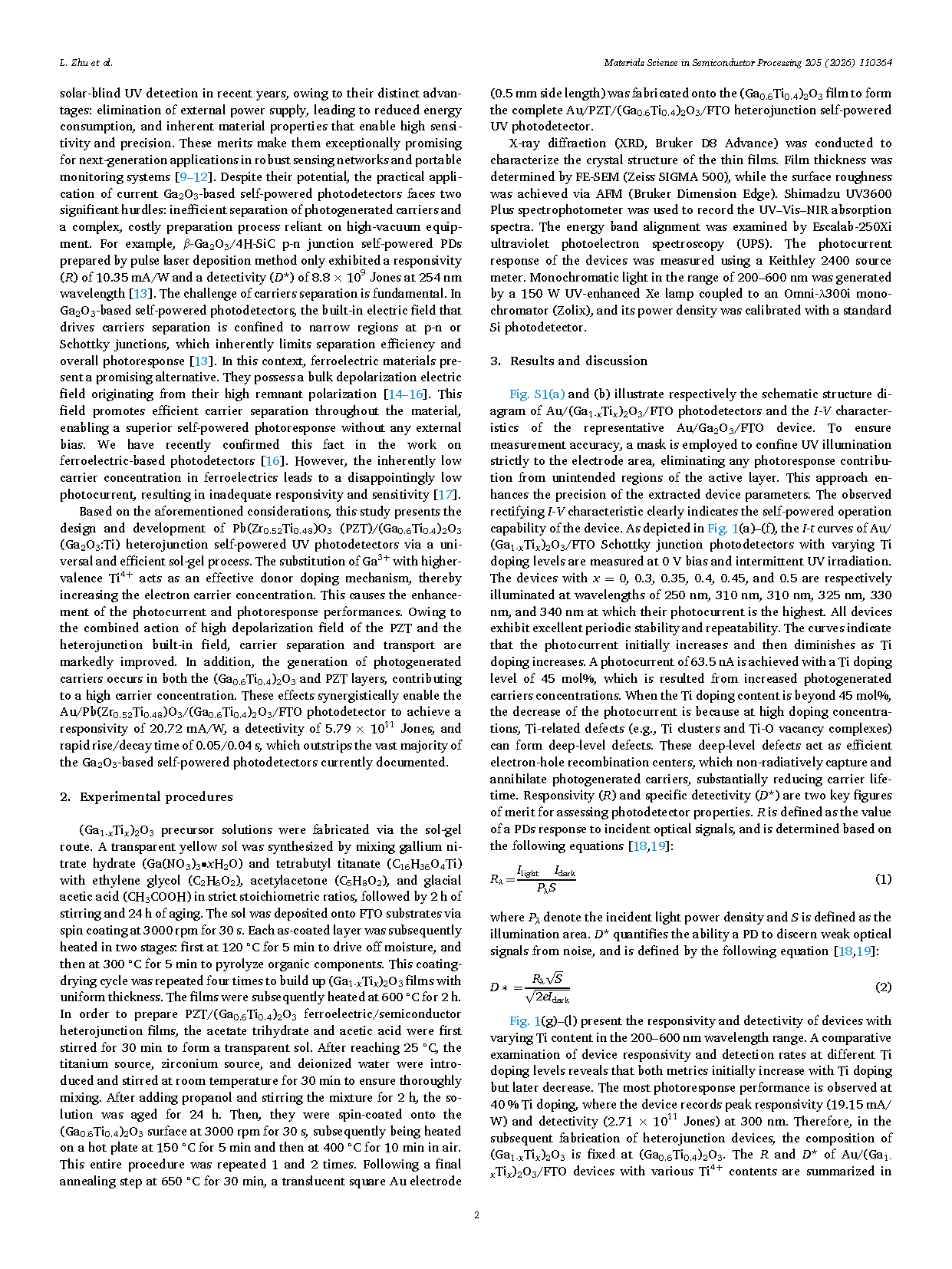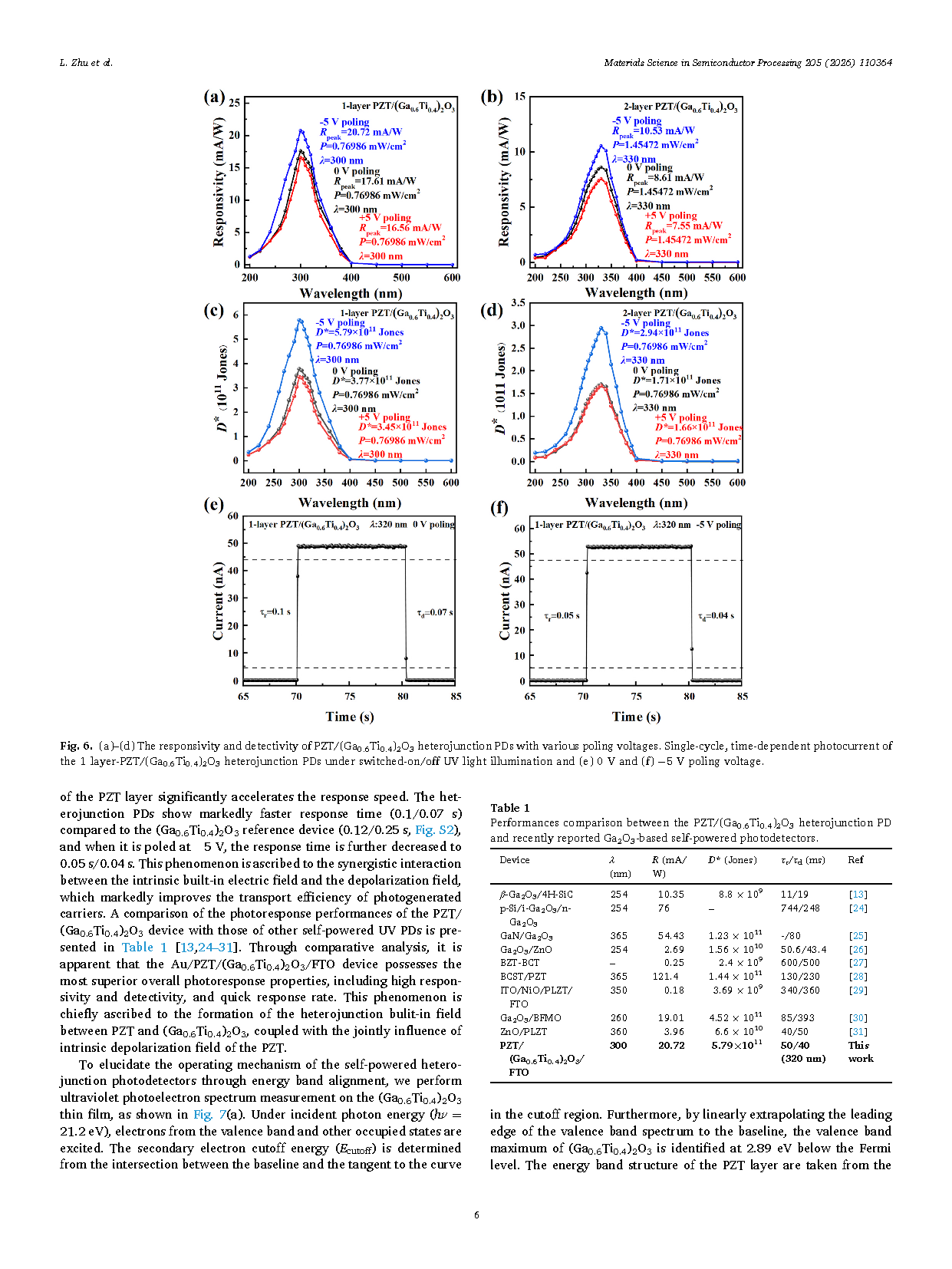 •High-property PZT/(Ga0.6Ti0.4)2O3heterojunction self-powered UV PD is developed.