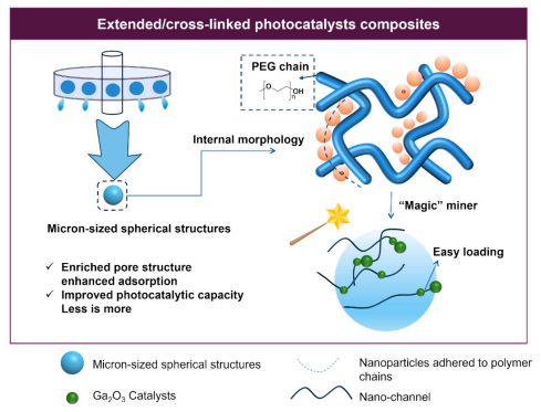 Scheme 1. Schematic illustration of rational design of the Ga2O3-SiO2 composites, highlighting the molecular level interactions and structural responsible for enhanced adsorption and photocatalytic performance.