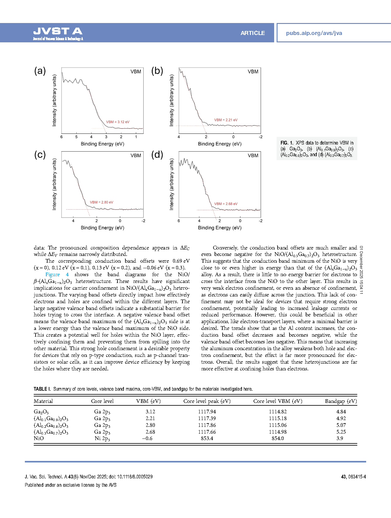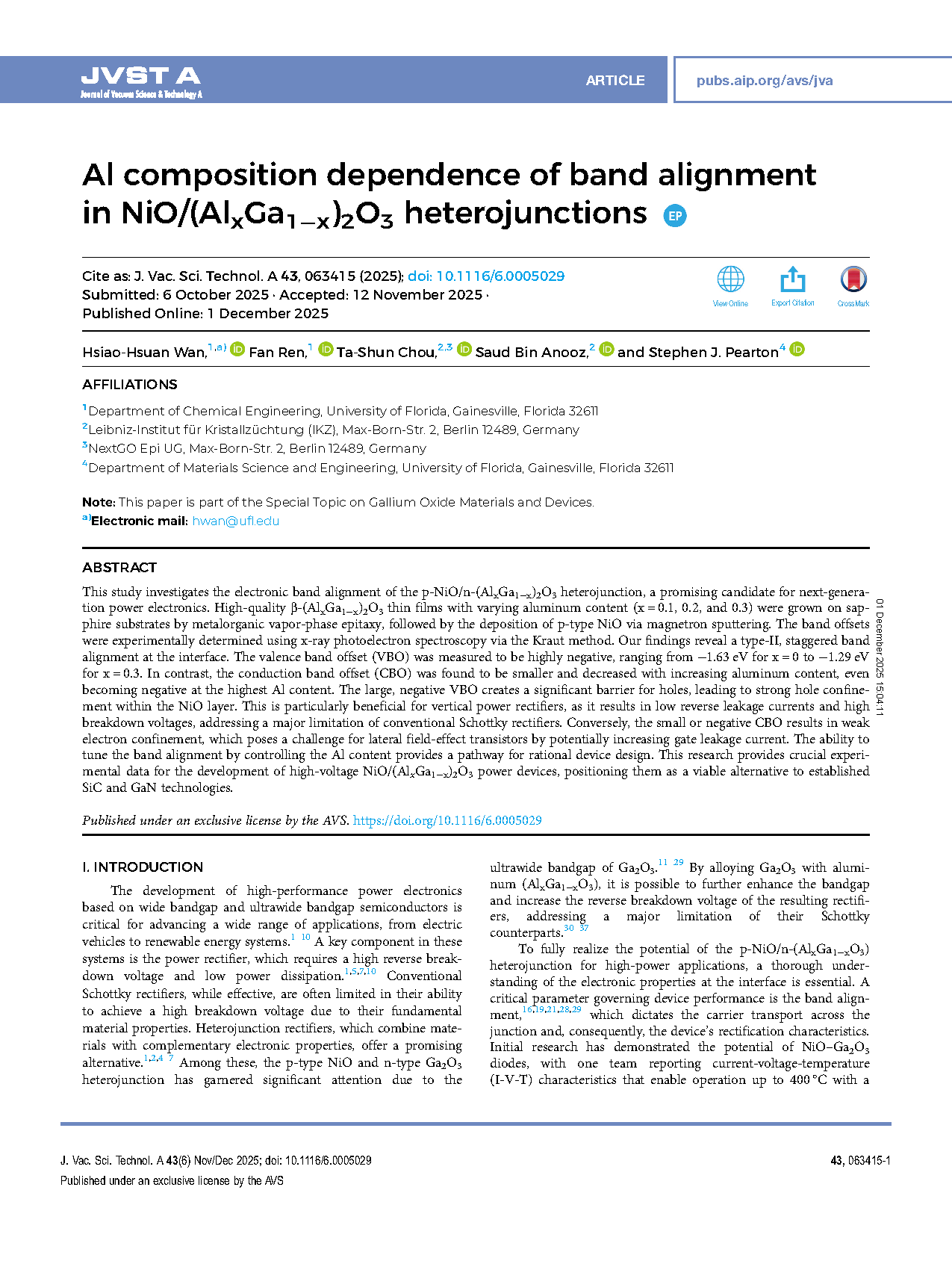 Researchers from the Leibniz-Institut für Kristallzüchtung (IKZ) and University of Florida have published a dissertation titled "Al composition dependence of band alignment in NiO/(AlxGa1−x)2O3 heterojunctions" in Journal of Vacuum Science & Technology A.