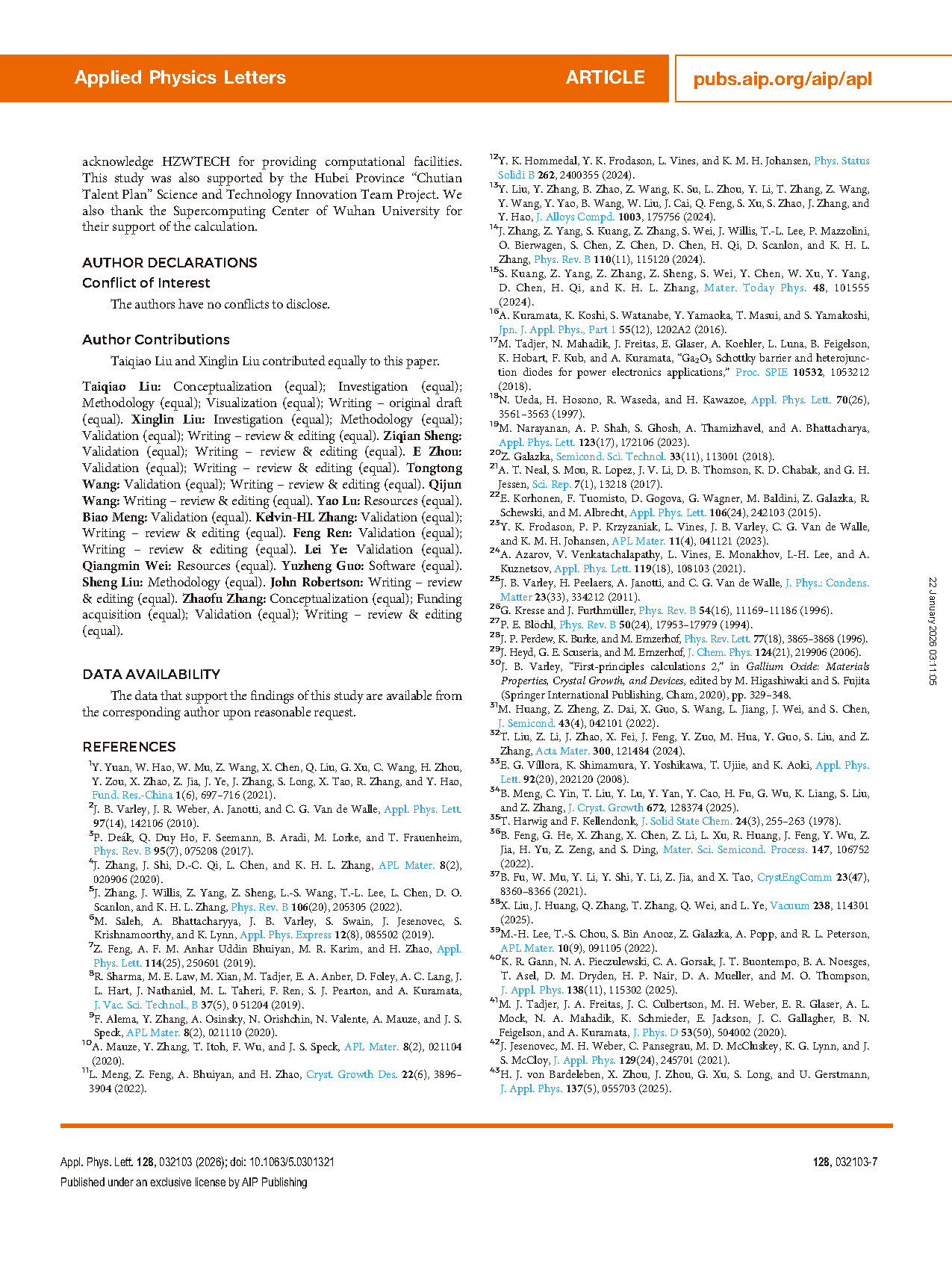 Researchers from the Wuhan University have published a dissertation titled " Universal Role of Dopant-VGa Complexes Induced Carrier Suppression in Si/Ge/Sn/Zr-doped β-Ga2O3 " in Applied Physics Lettes.