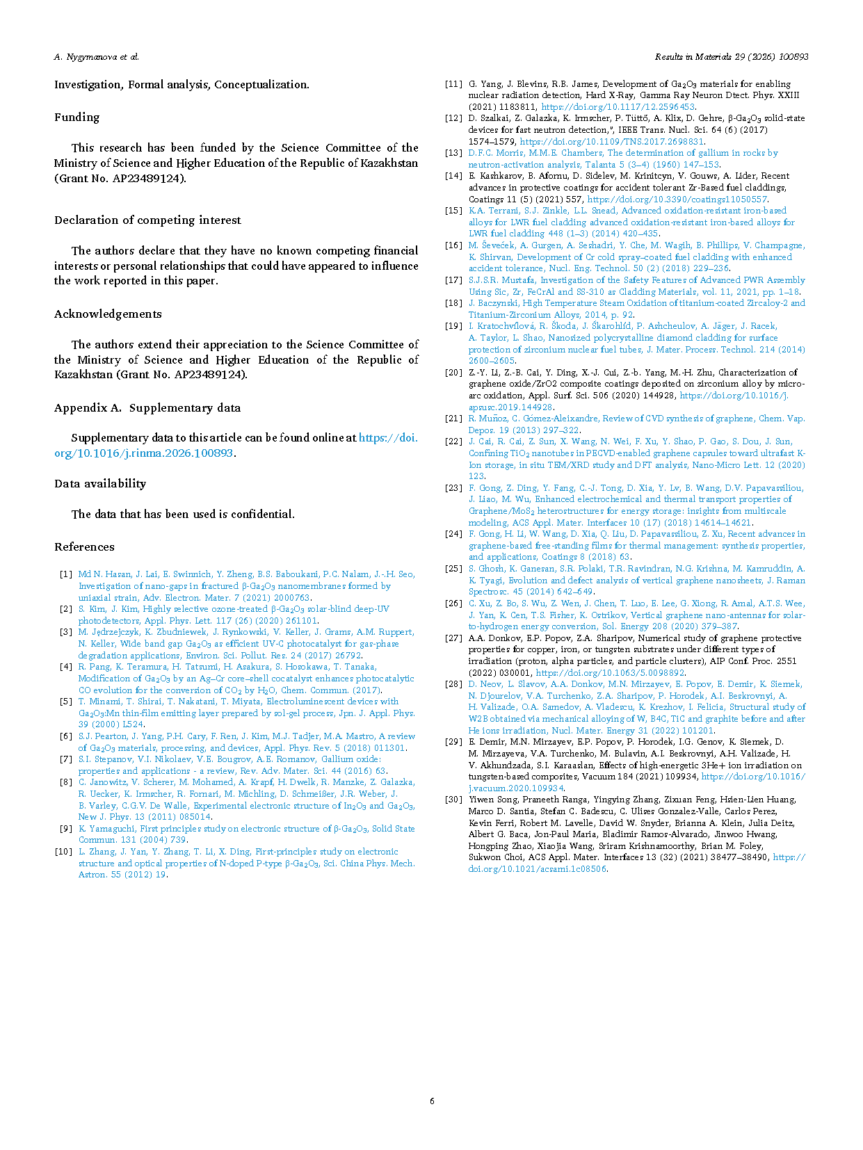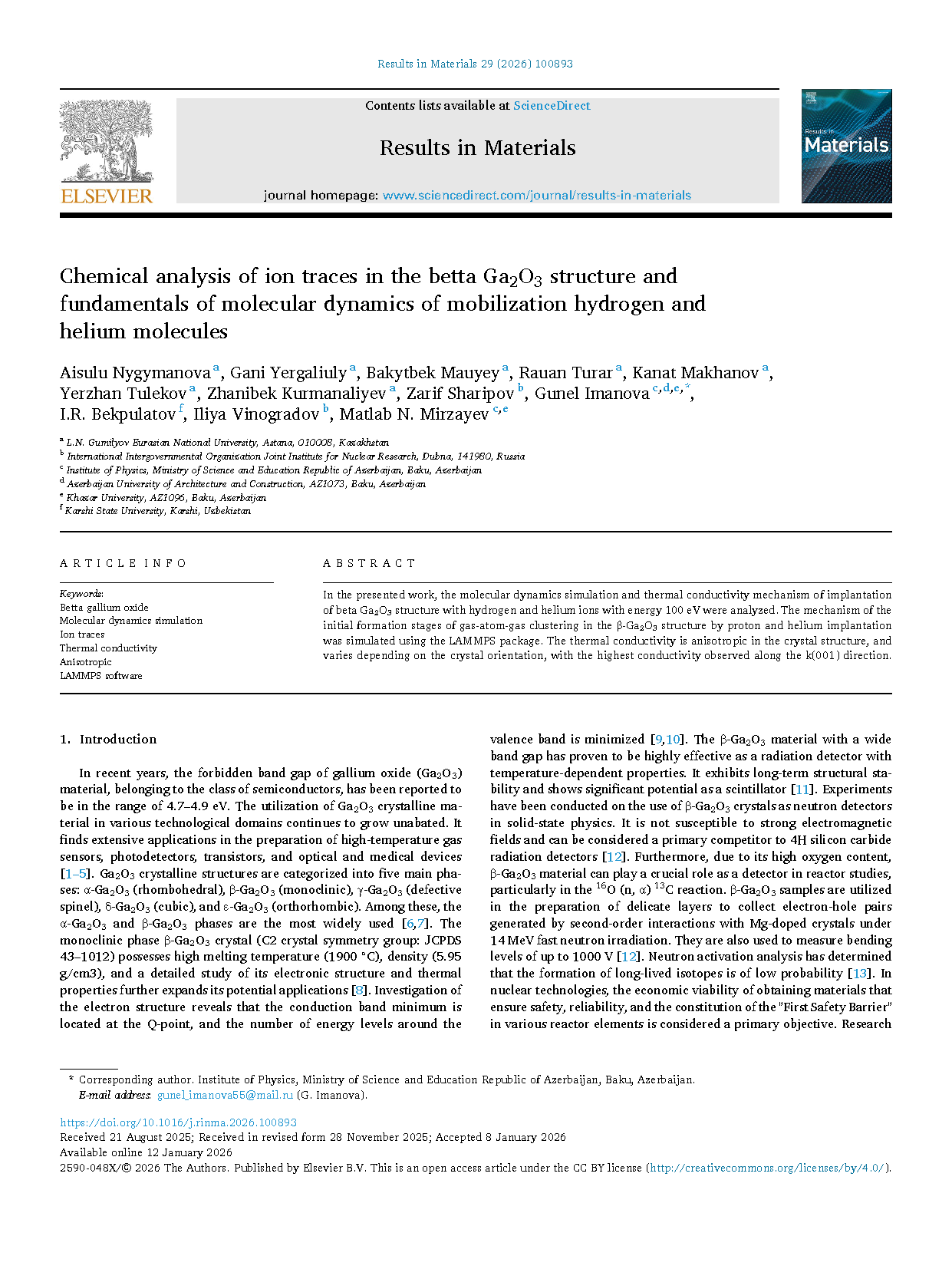 Researchers from the L.N. Gumilyov Eurasian National University have published a dissertation titled "Chemical analysis of ion traces in the betta Ga2O3 structure and fundamentals of molecular dynamics of mobilization hydrogen and helium molecules" in Results in Materials.