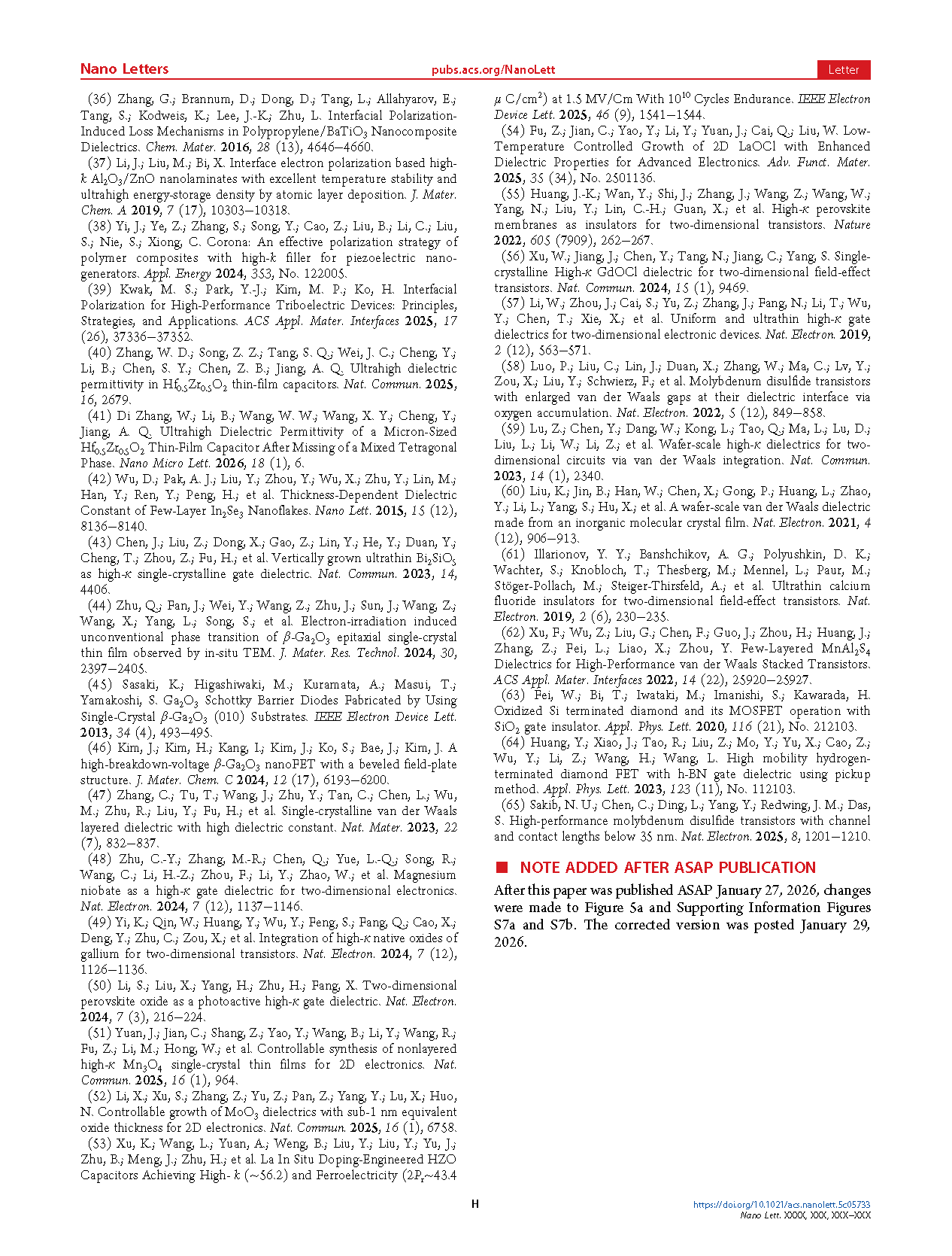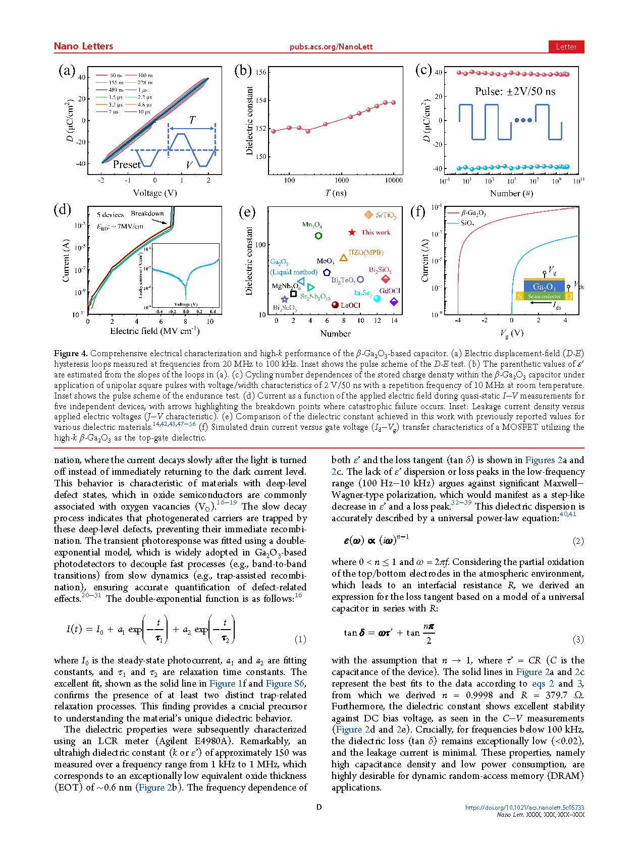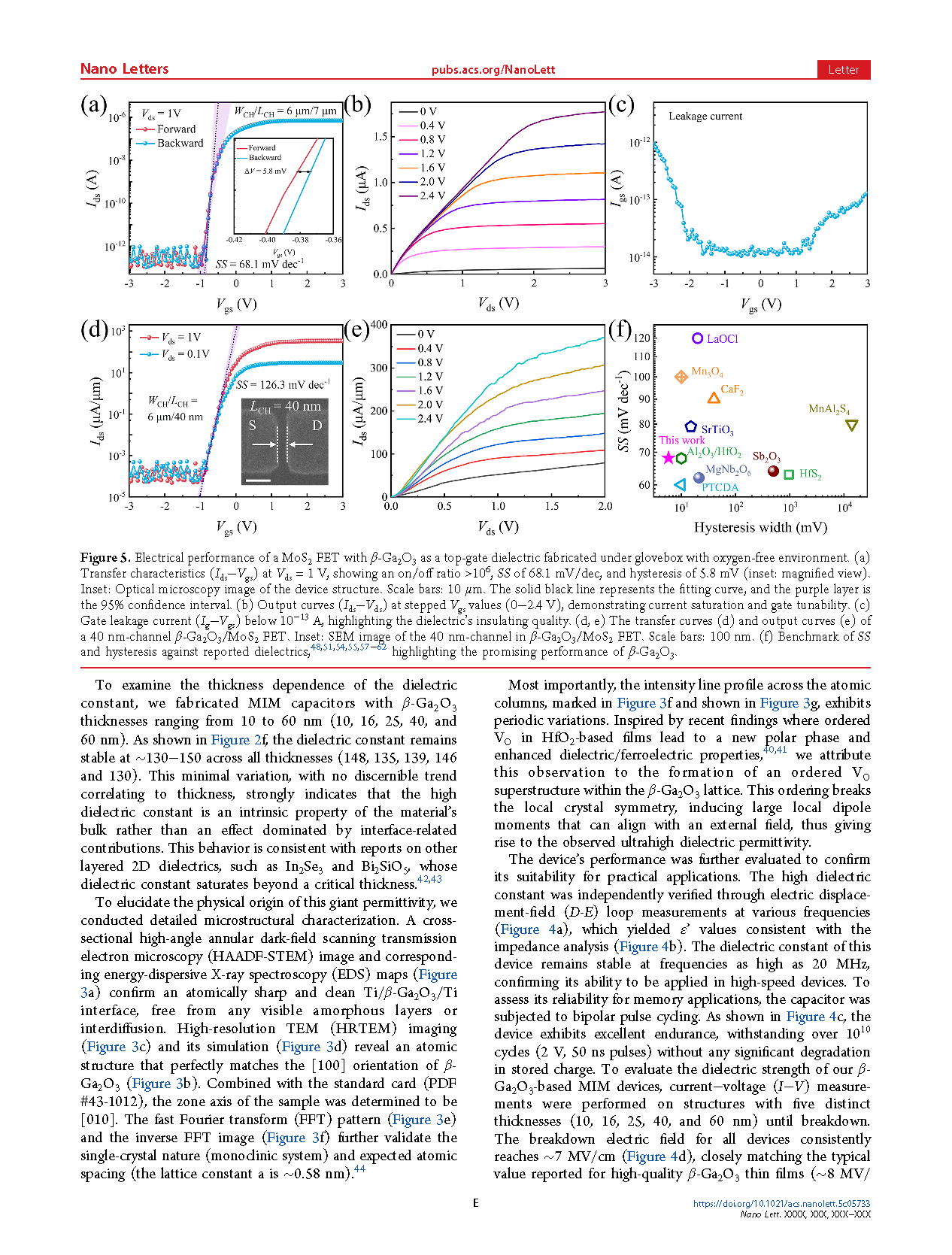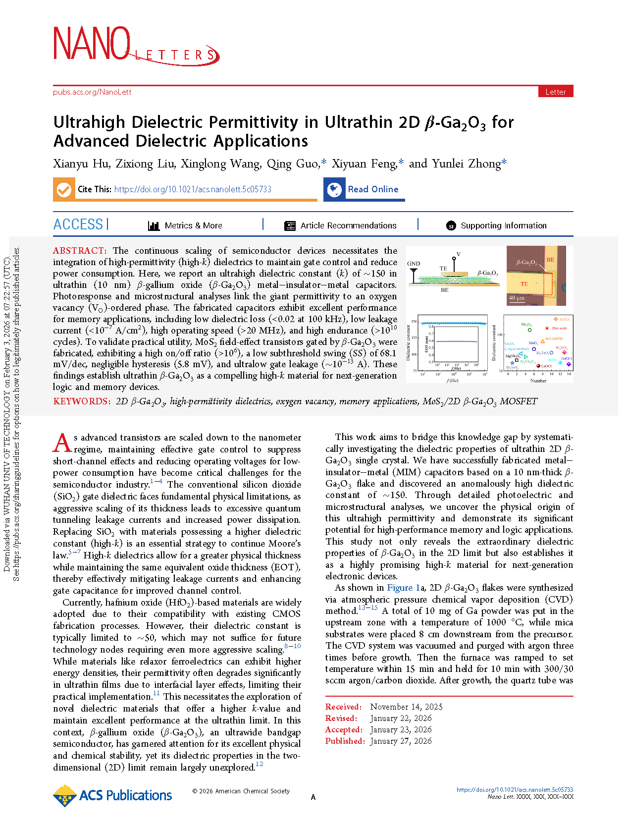 Researchers from the Fudan University have published a dissertation titled "Ultrahigh Dielectric Permittivity in Ultrathin 2D β-Ga2O3 for Advanced Dielectric Applications" in Nano Letters.