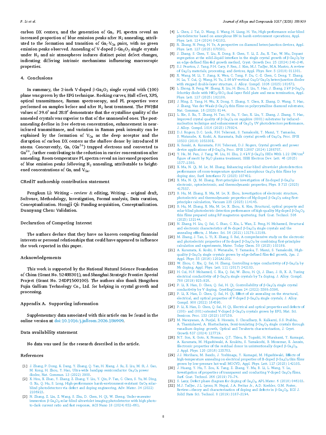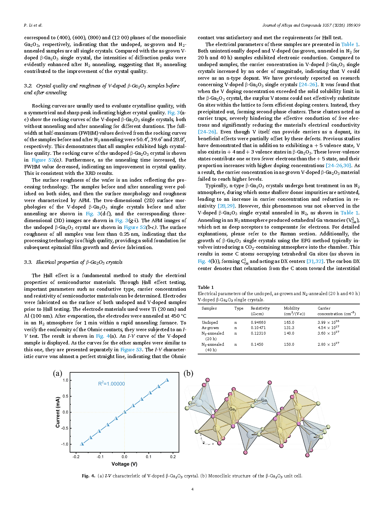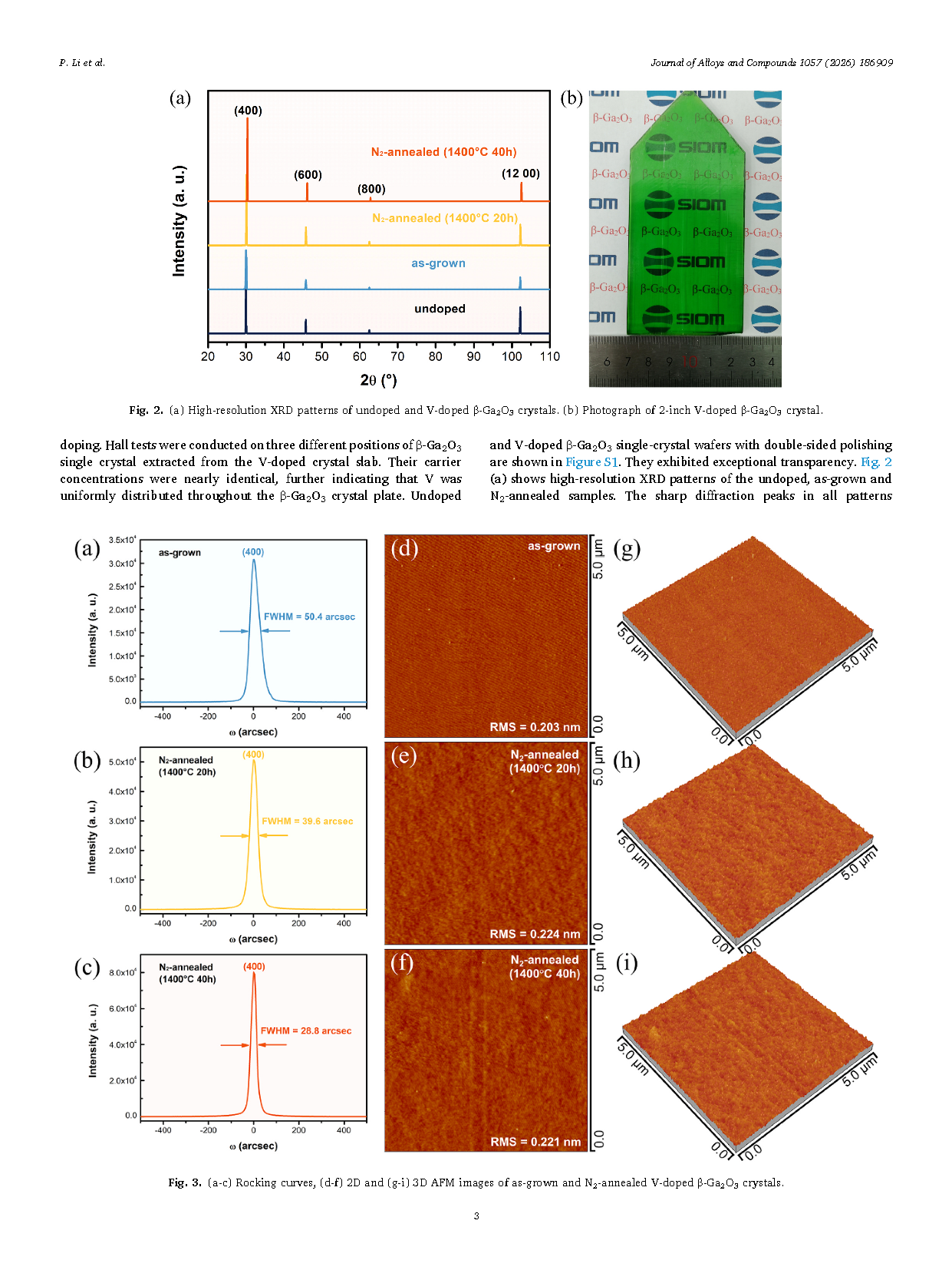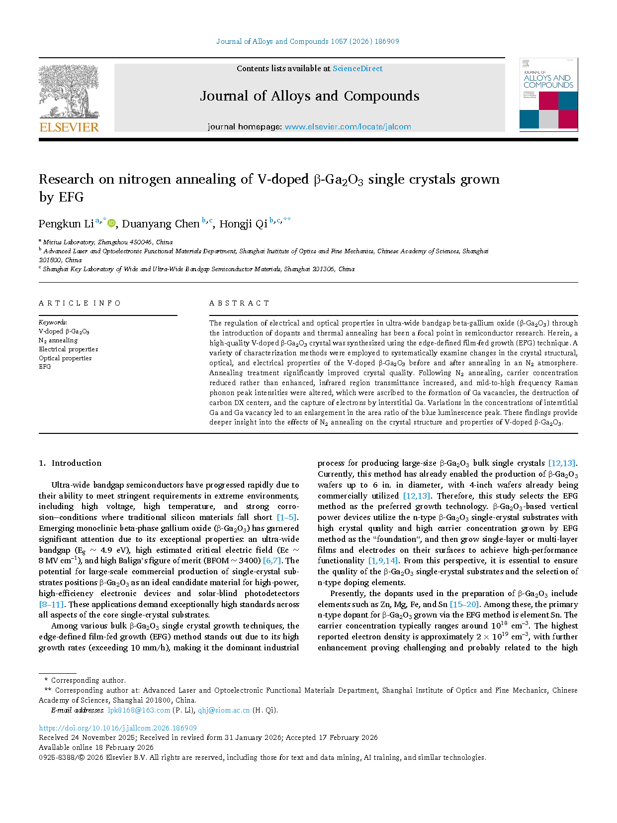 Researchers from the Micius Laboratory and Shanghai Institute of Optics and Fine Mechanics have published a dissertation titled "Research on nitrogen annealing of V-doped β-Ga2O3 single crystals grown by EFG" in Journal of Alloys and Compounds.