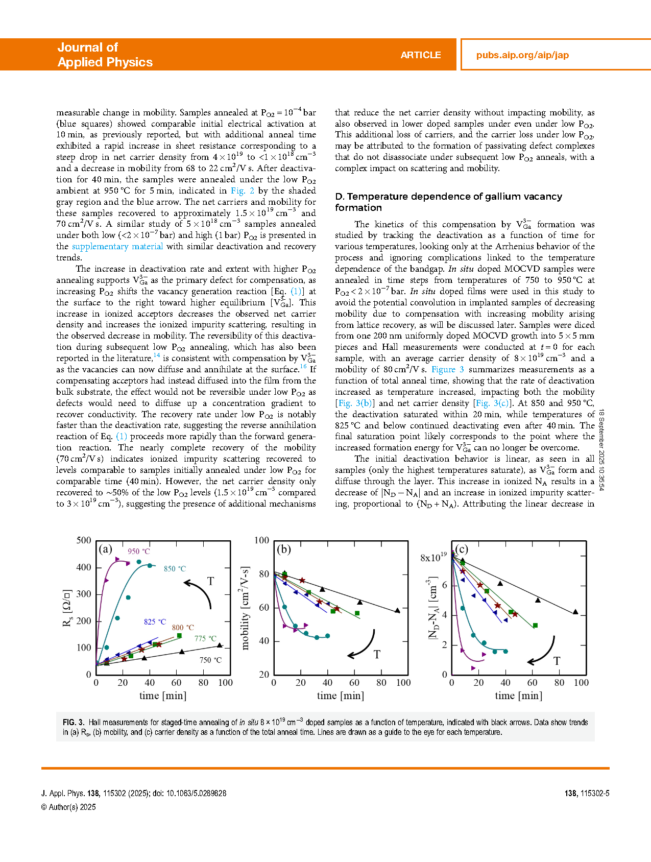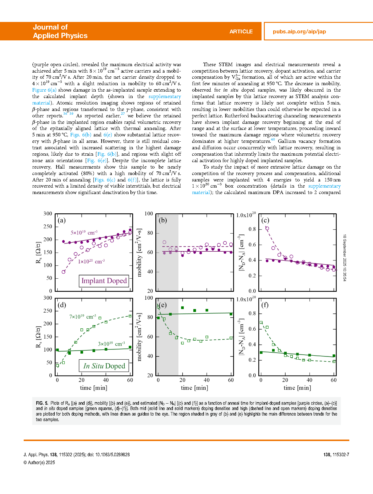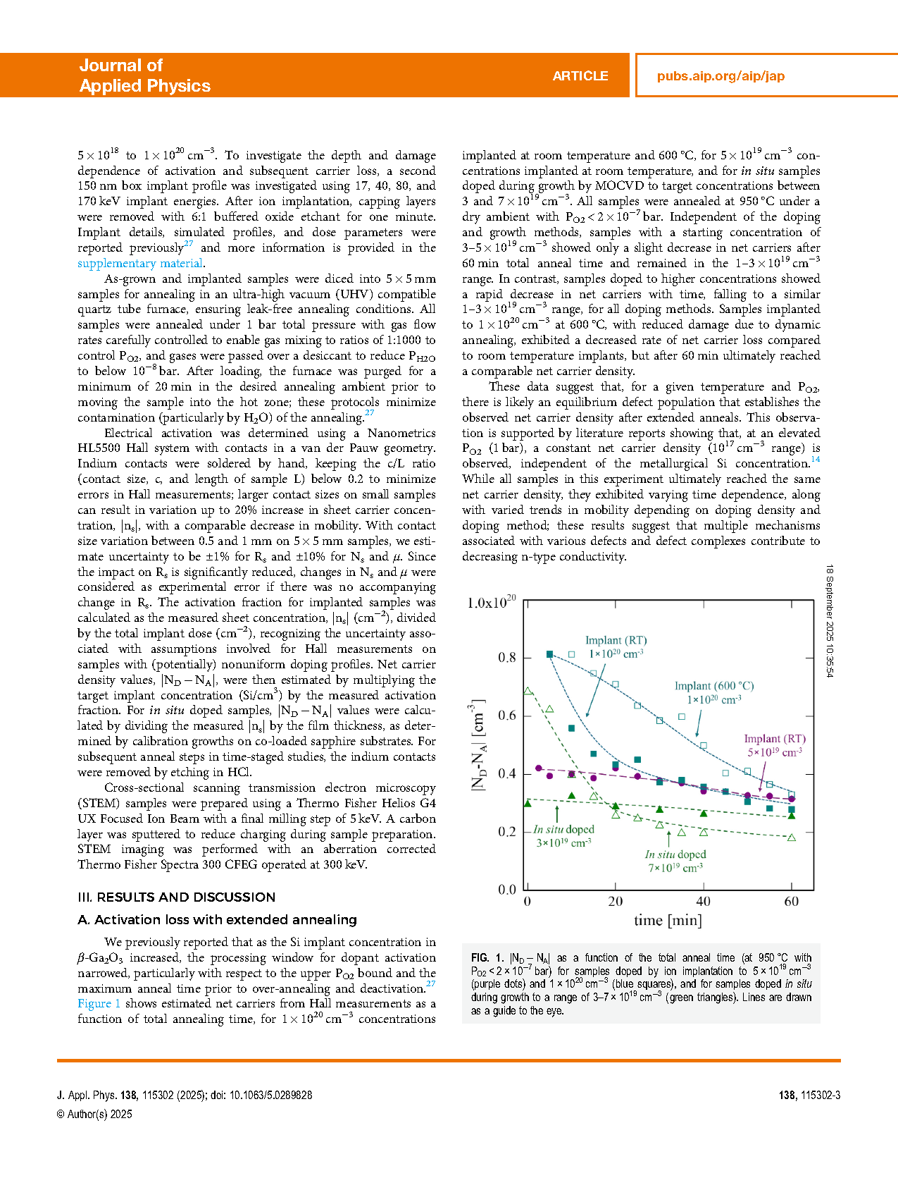 【International Papers】Evidence for carrier compensation by gallium vacancies during annealing of highly Si-doped β-Ga₂O₃