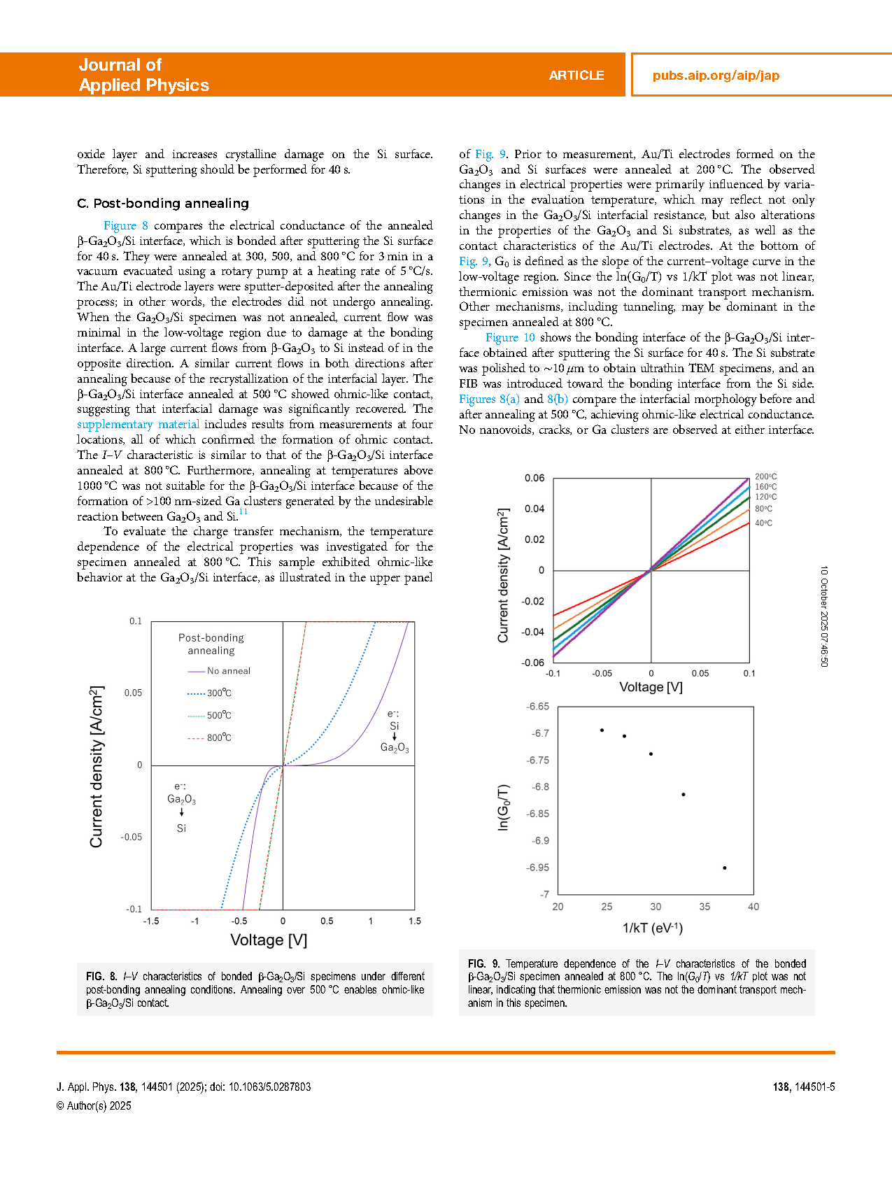 Researchers from the National Institute of Advanced Industrial Science and Technology and Novel Crystal Technology, Inc., have published a dissertation titled "Electrical conductance at Ga2O3/Si interfaces fabricated via surface activated bonding" in Journal of Applied Physics.