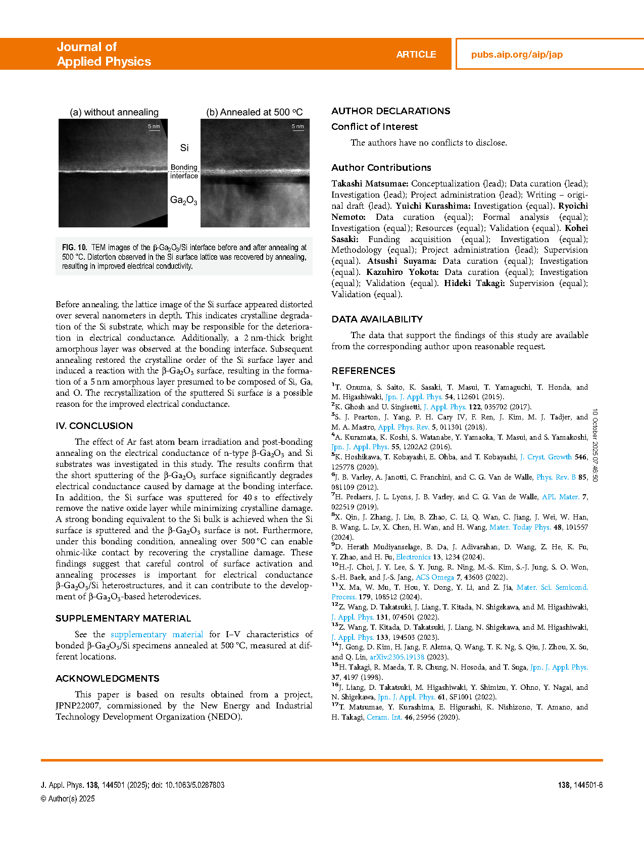 【Member Papers】Electrical conductance at Ga₂O₃/Si interfaces fabricated via surface activated bonding