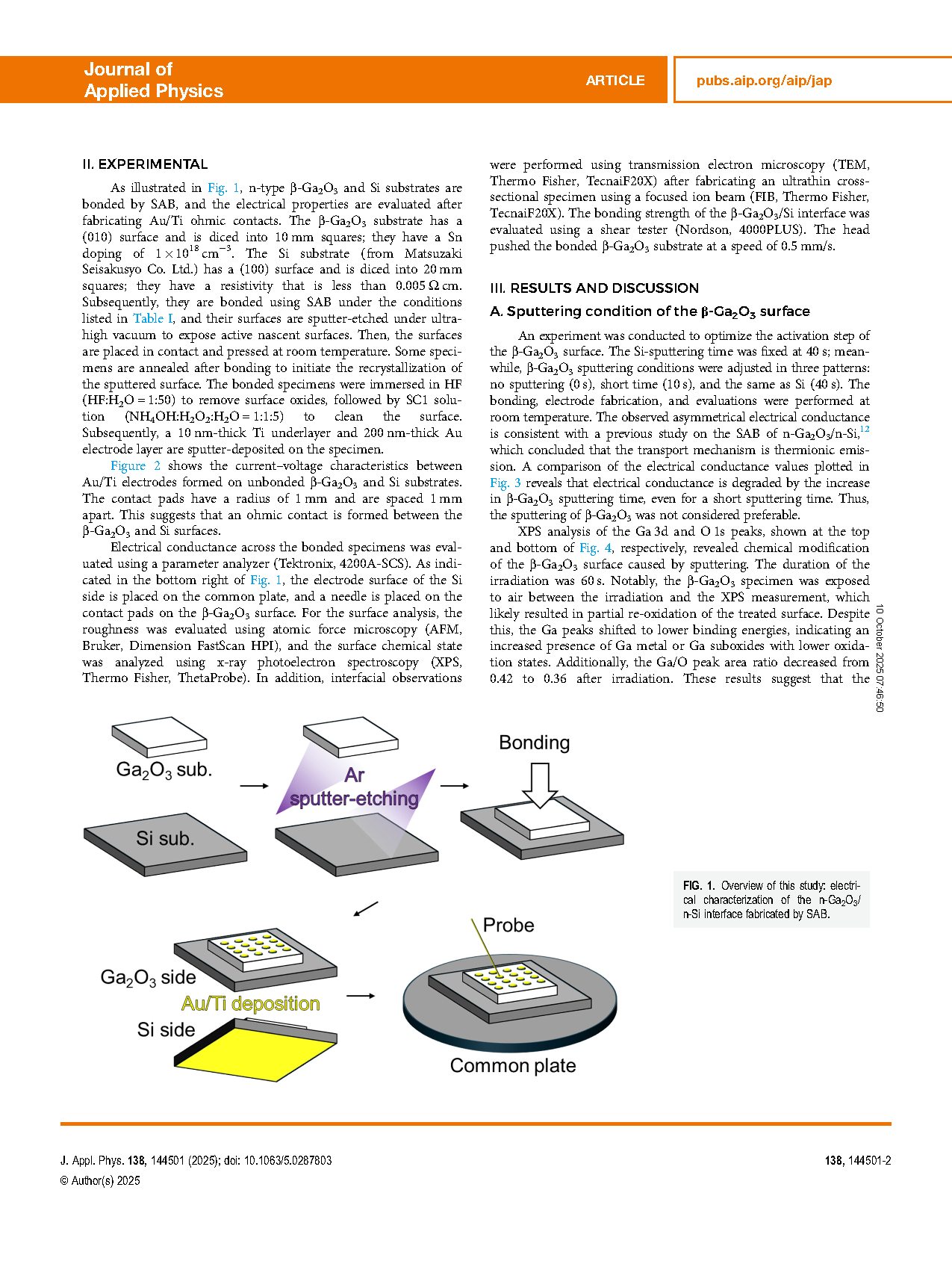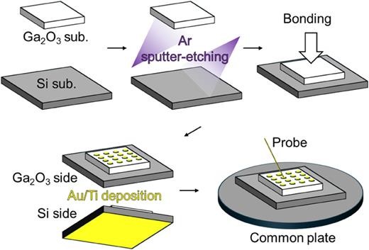 FIG. 1. Overview of this study: electrical characterization of the n-Ga2O3/n-Si interface fabricated by SAB.