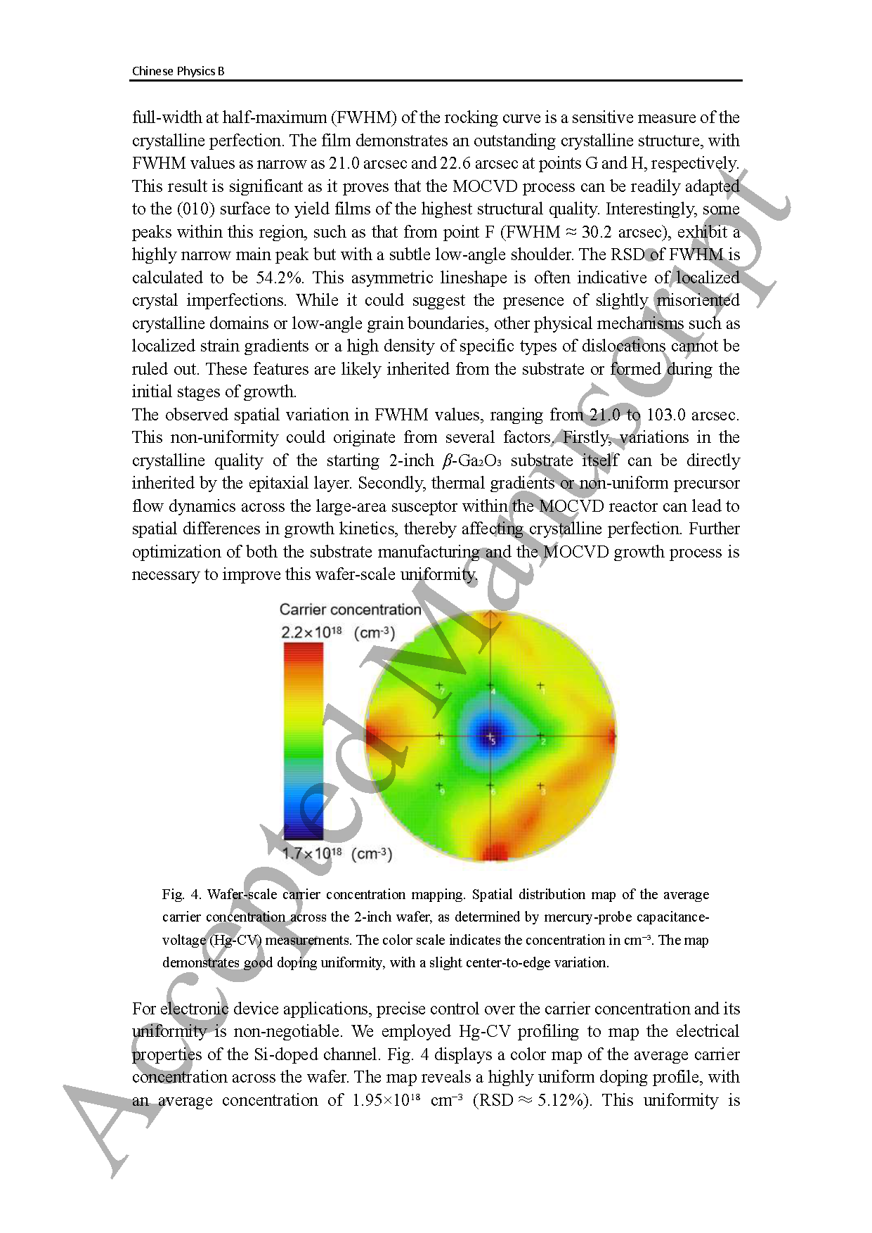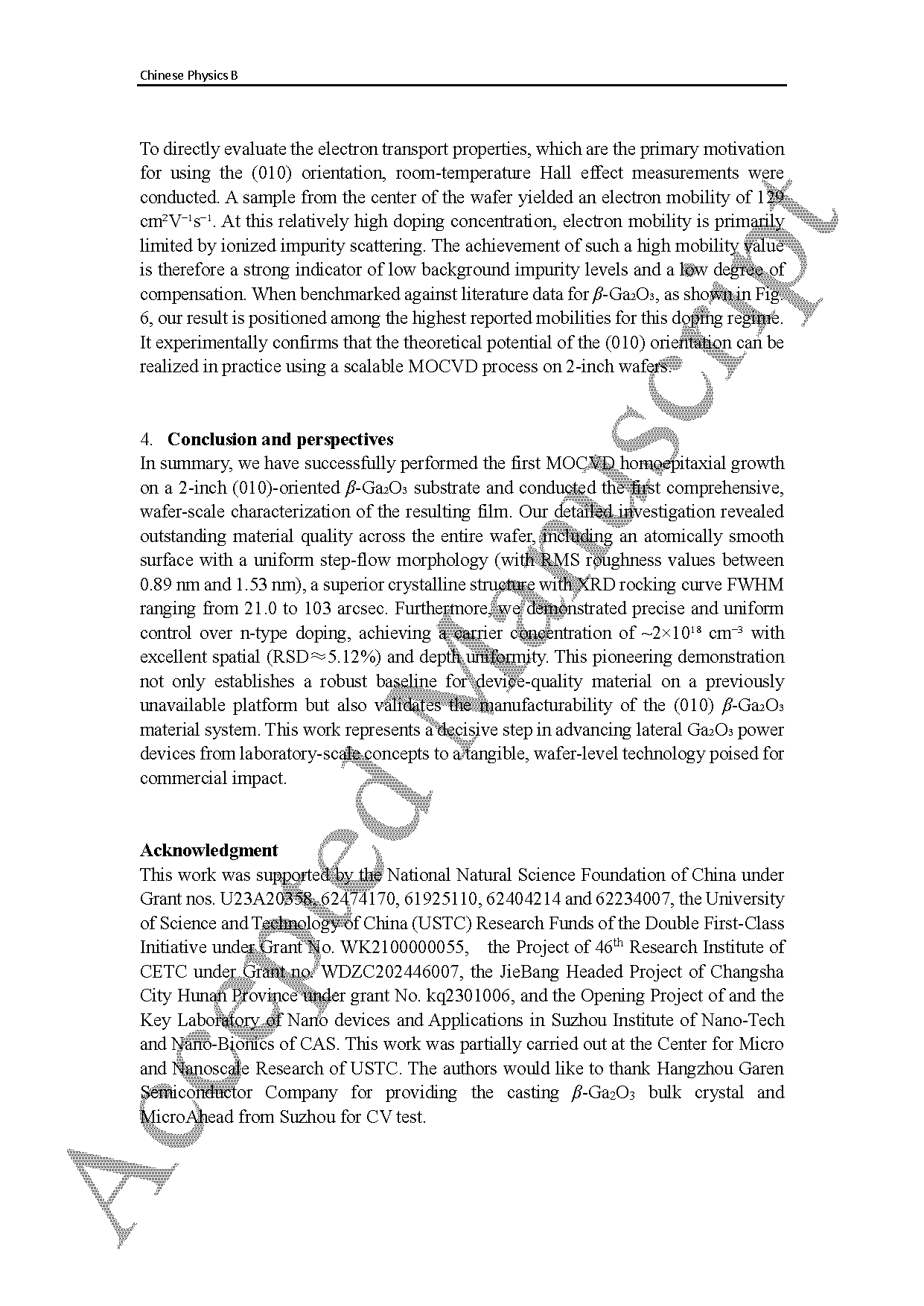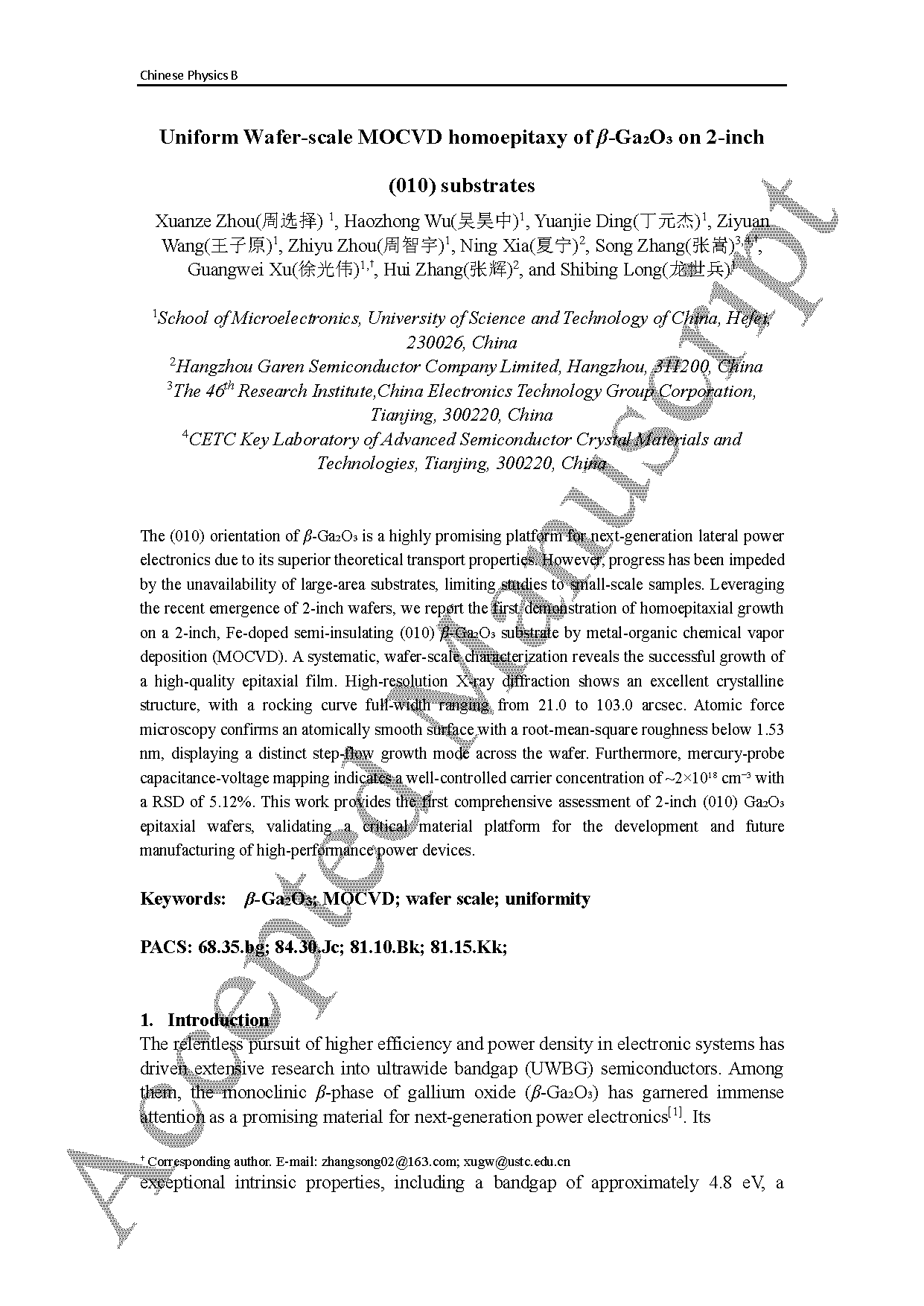 Researchers from the a joint research team from the University of Science and Technology of China, Hangzhou Garen Semiconductor, and the 46th Research Institute of China Electronics Technology Group Corporation have published a dissertation titled "Uniform Wafer-scale MOCVD homoepitaxy of β-Ga2O3 on 2-inch (010) substrates" in Chinese Physics B.