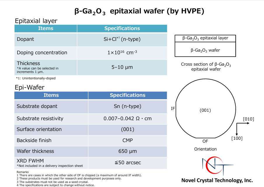 Novel Crystal Technology, Inc. (NCT), Japan, is the world’s first company engaged in the research, development, and production of Gallium Oxide substrates, epitaxy, and devices. As the pioneer in the global Gallium Oxide field, NCT integrates substrate manufacturing, epitaxial growth, and device R&D and production. From crystal growth and substrate fabrication to epitaxy and device development, NCT remains at the forefront of the global Gallium Oxide industry, driving the industrialization of Gallium Oxide technologies.