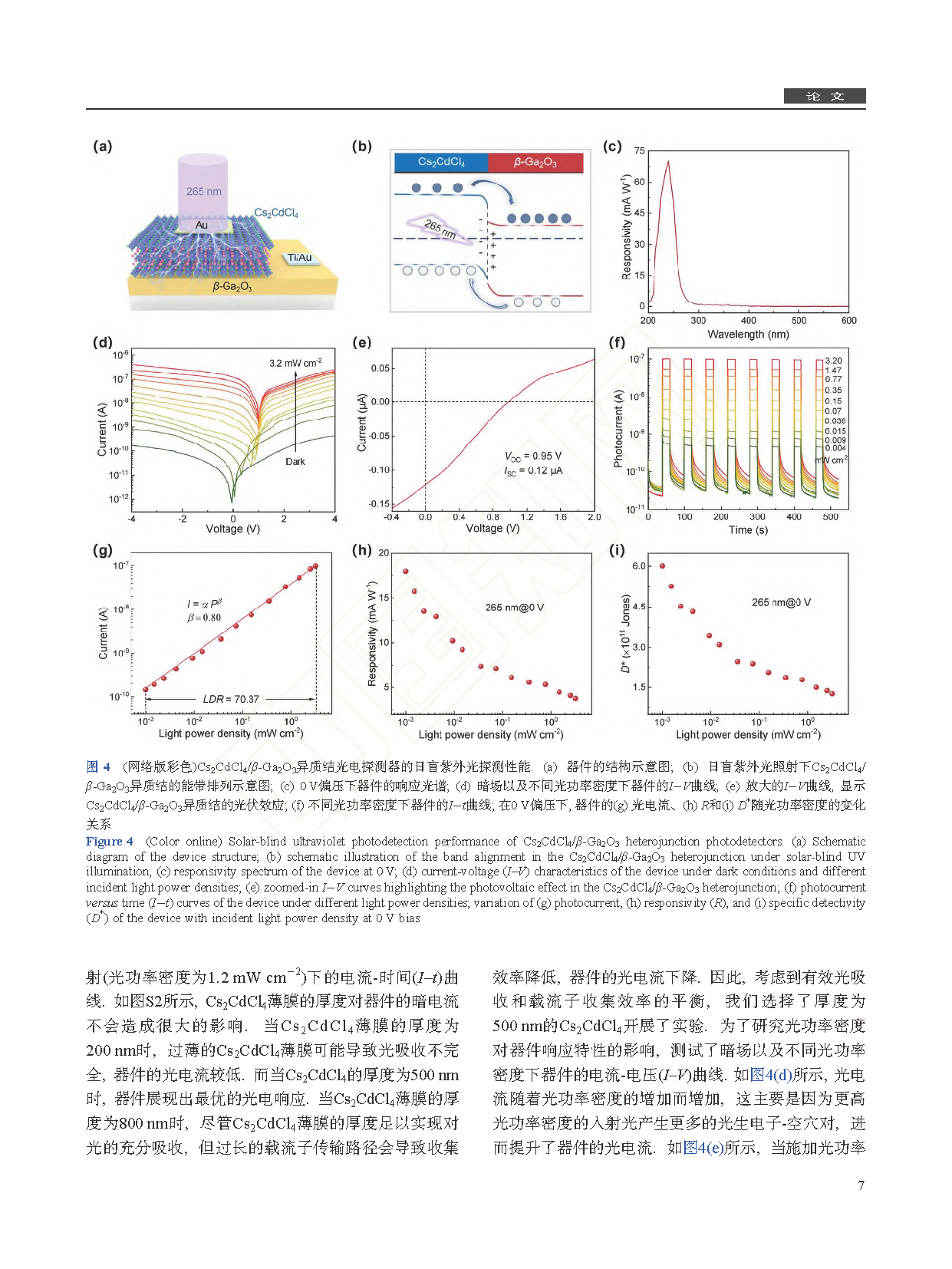 【Domestic Papers】Self-powered solar-blind UV photodetector based on Cs₂CdCl₄/β-Ga₂O₃ heterojunction