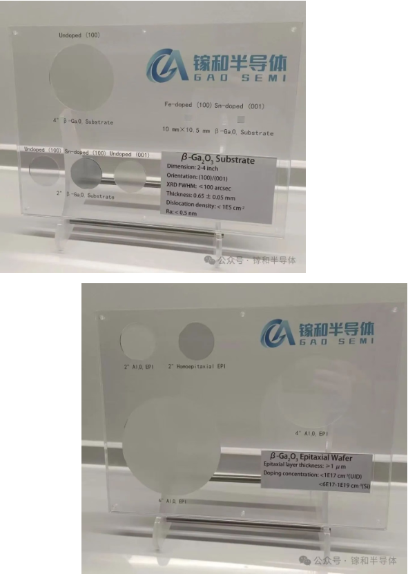 GAO SEMI showcased a range of Gallium Oxide products at the event, including 2-inch (100) substrates, 4-inch (100) substrates, and heteroepitaxial wafers. These samples were displayed onsite for attendees to examine and experience.
