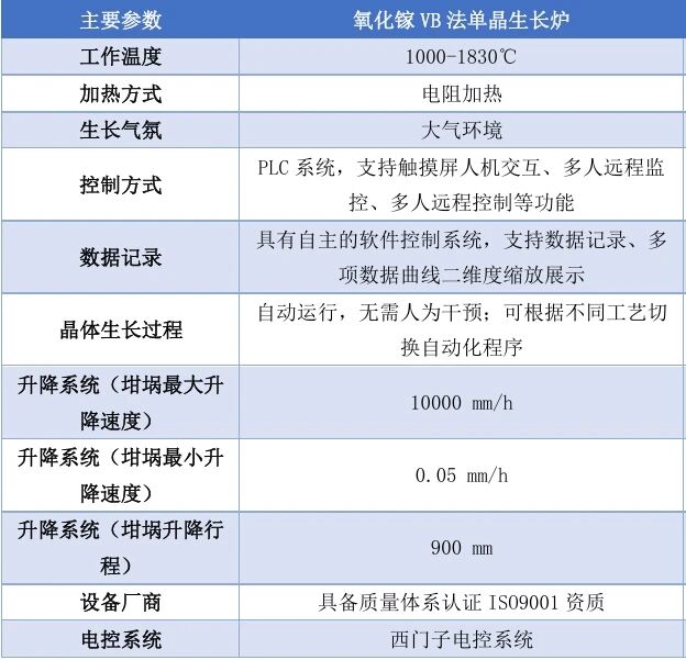 Designed specifically for VB growth of β-Gallium Oxide crystals, this equipment has been optimized through iterative coupling of simulation and experimental validation. It integrates dual-mode high-precision temperature measurement and control, with stability verified through multiple experimental cycles. The system supports the growth of 2–6 inch β-Gallium Oxide crystals, meeting the needs of both research and mass-production scenarios.