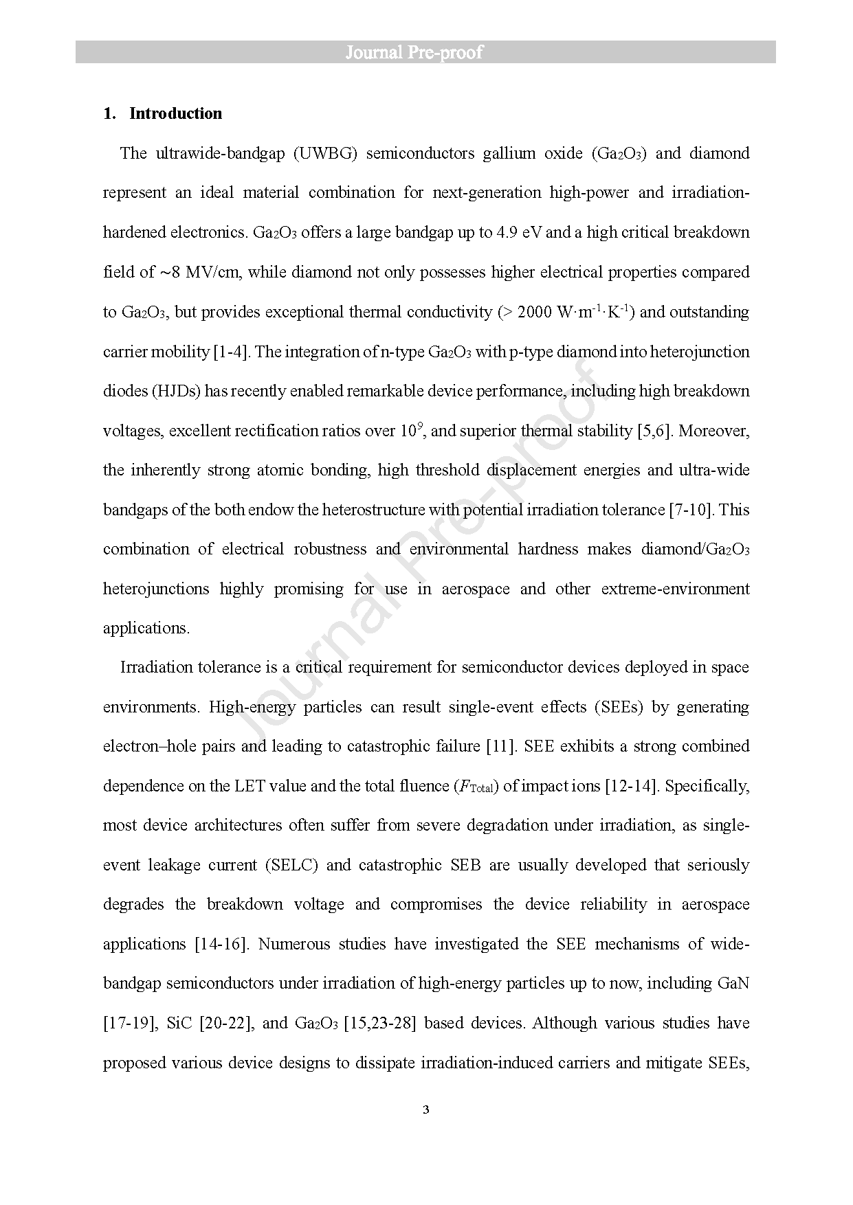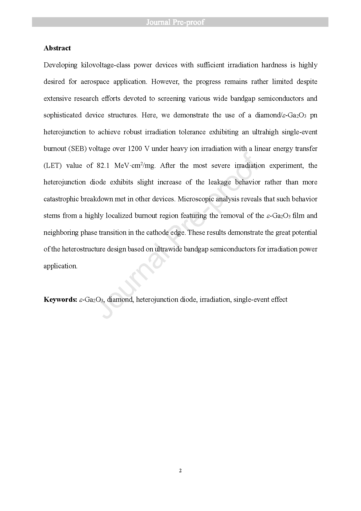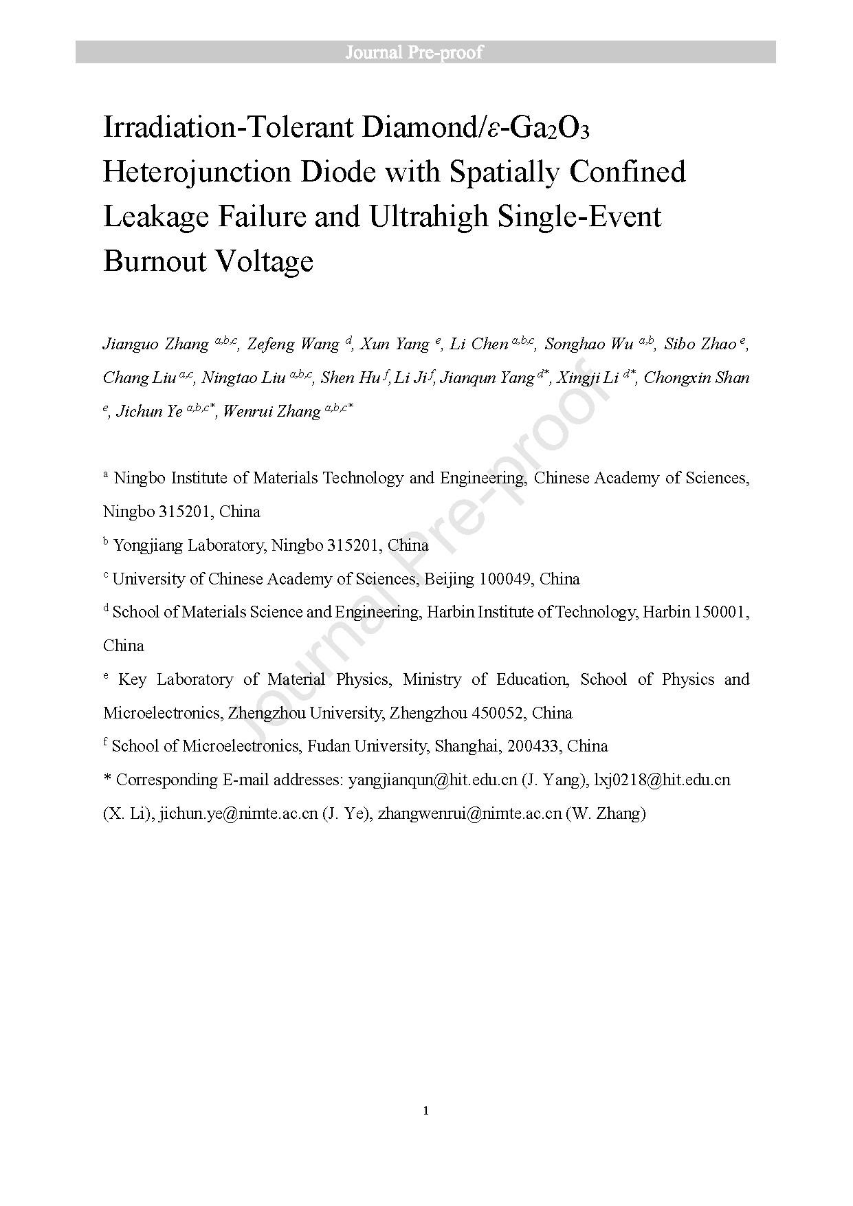 【Domestic Papers】Irradiation-Tolerant Diamond/ε-Ga₂O₃ Heterojunction Diode with Spatially Confined Leakage Failure and Ultrahigh Single-Event Burnout Voltage