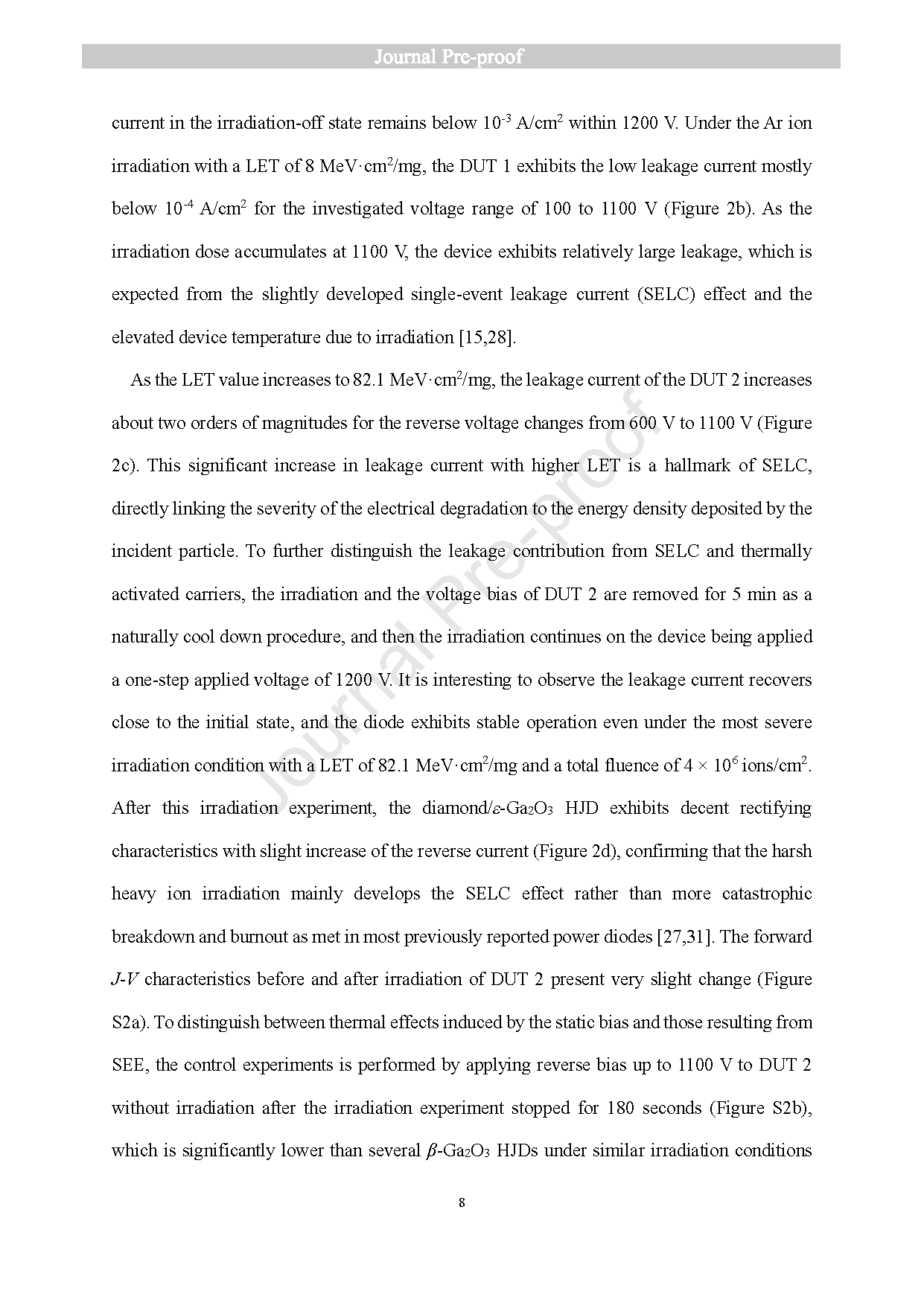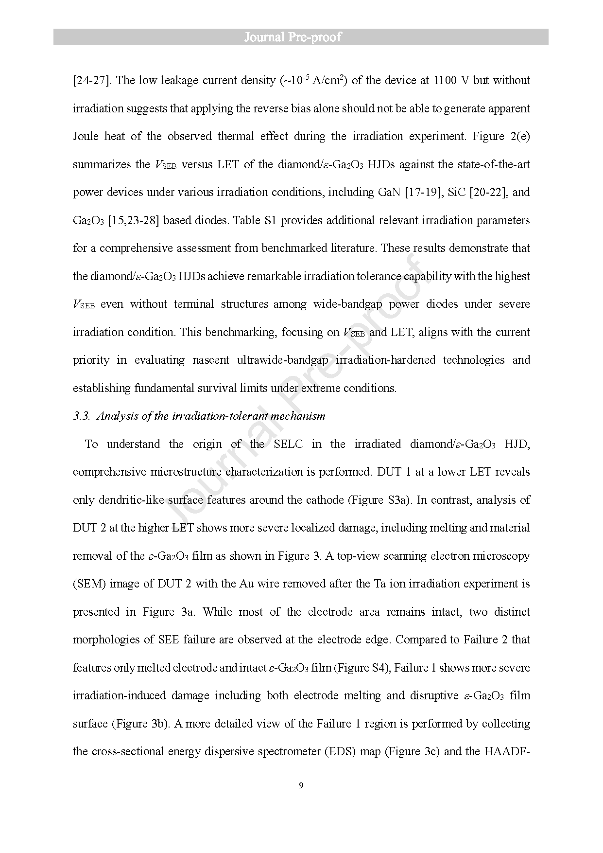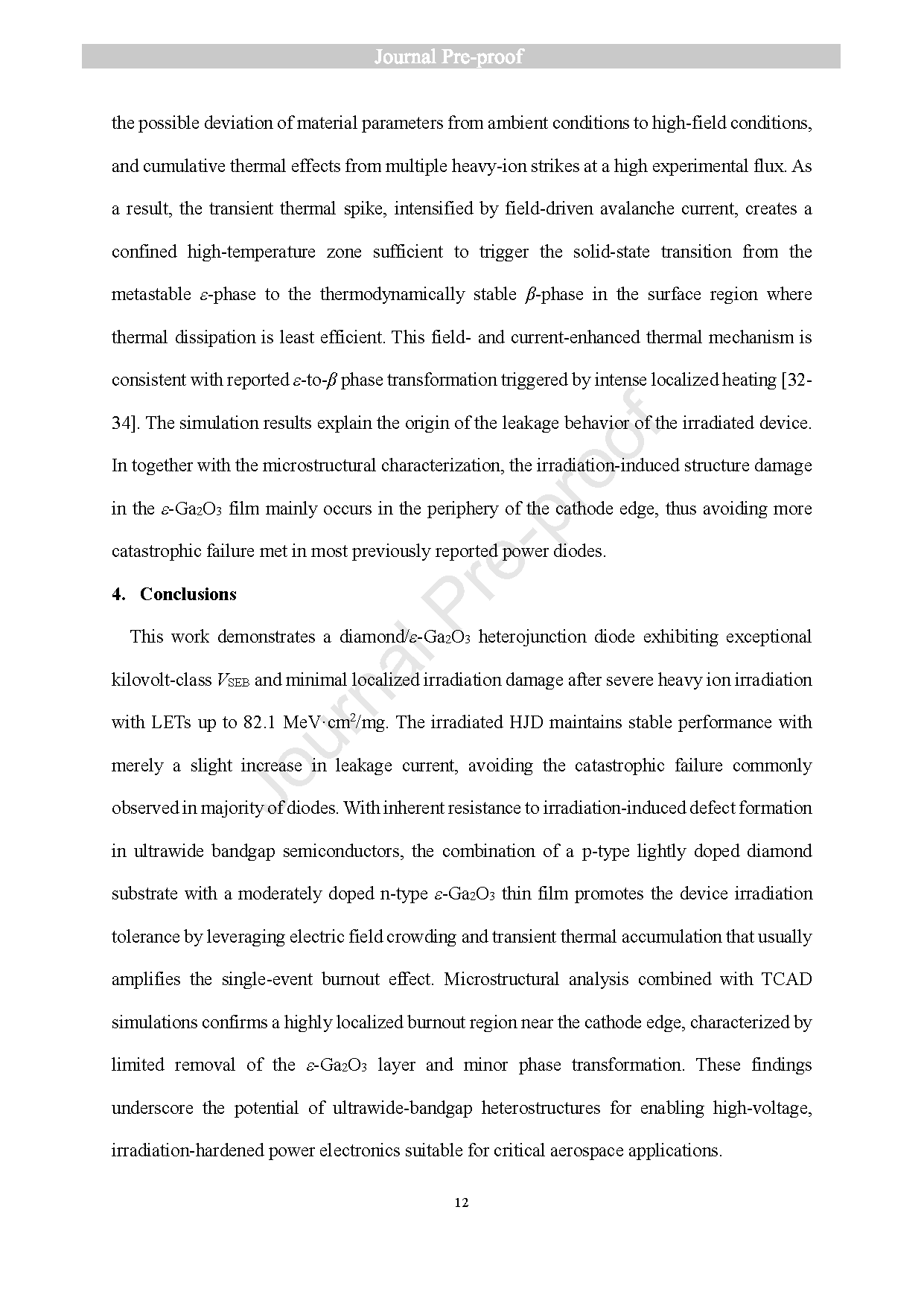 【Domestic Papers】Irradiation-Tolerant Diamond/ε-Ga₂O₃ Heterojunction Diode with Spatially Confined Leakage Failure and Ultrahigh Single-Event Burnout Voltage
