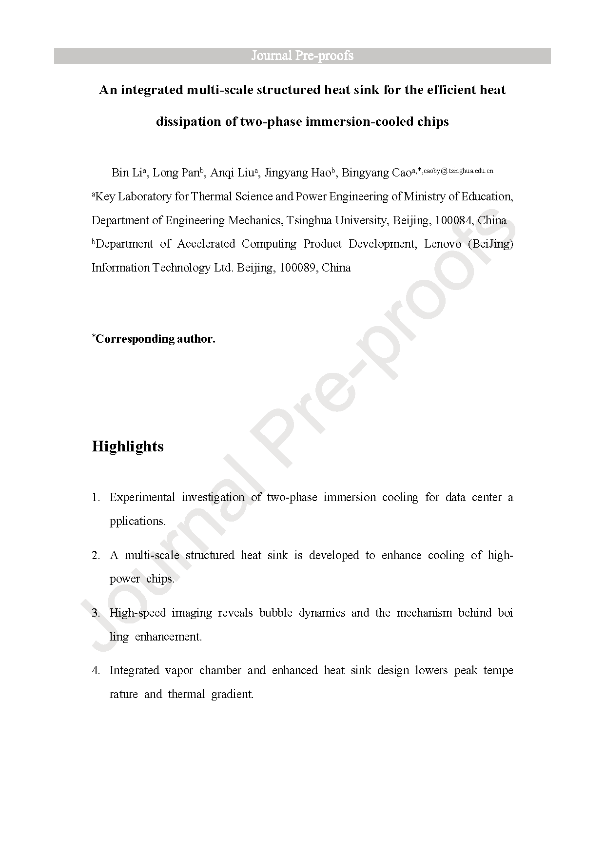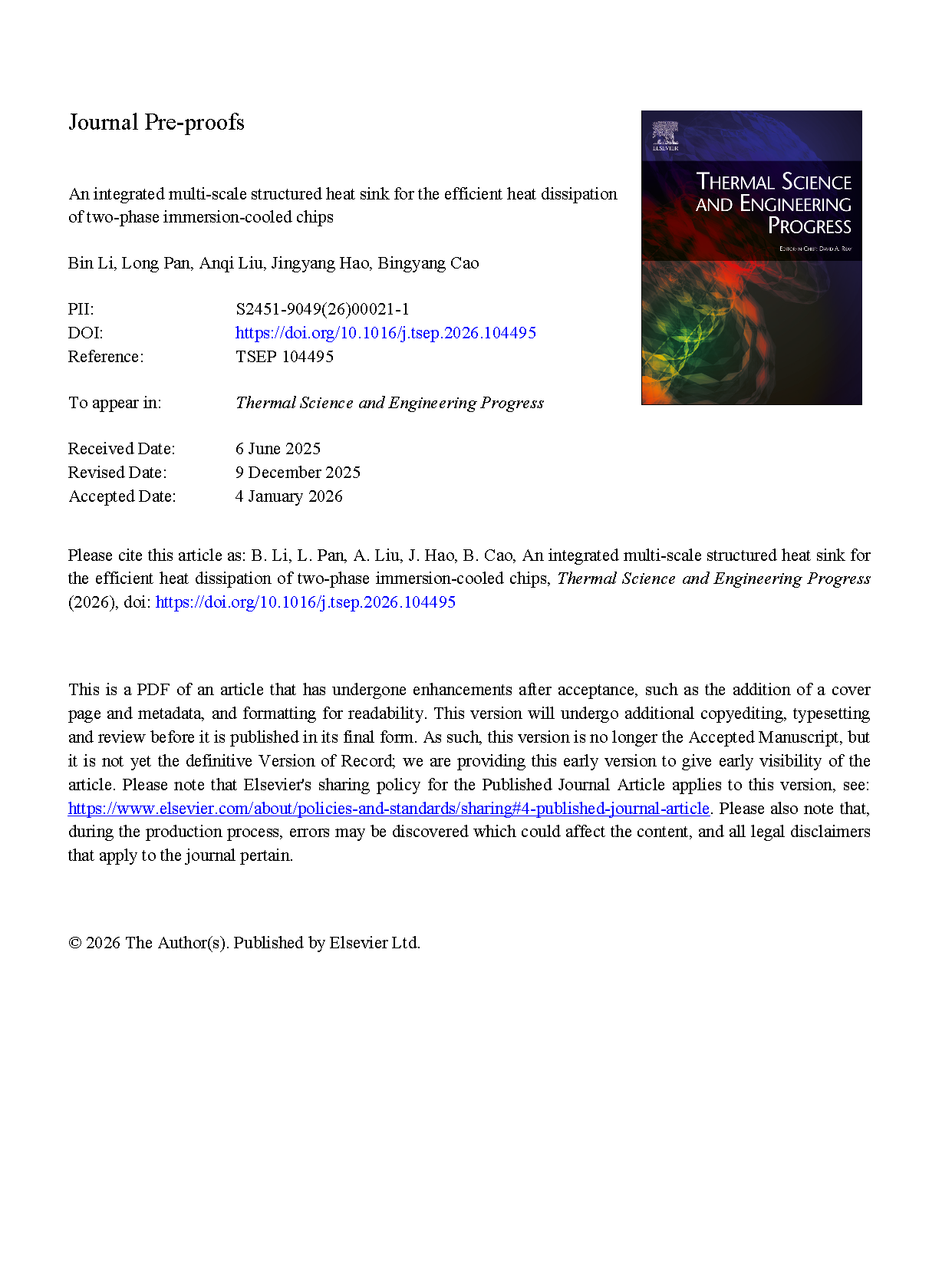 【Domestic Papers】An integrated multi-scale structured heat sink for the efficient heat dissipation of two-phase immersion-cooled chips