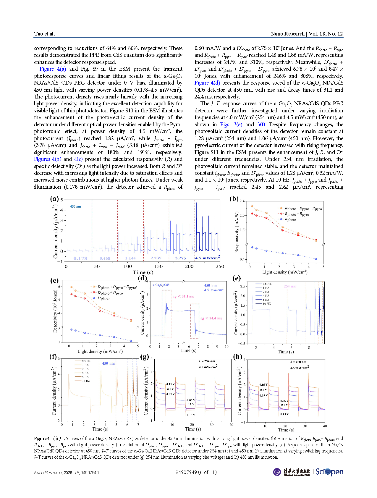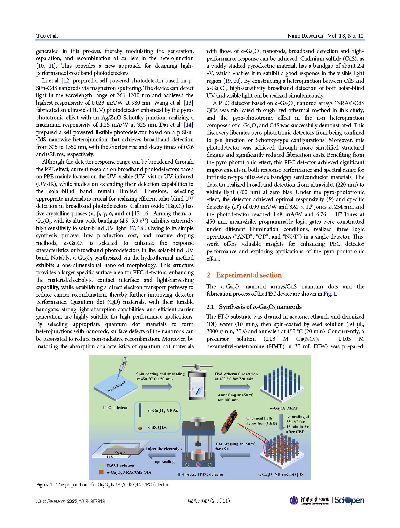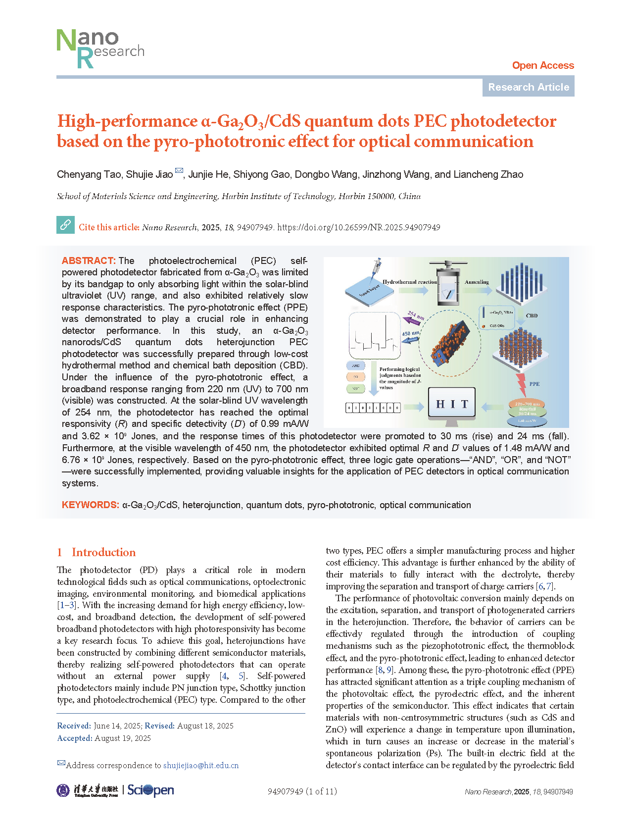 Researchers from the Harbin Institute of Technology have published a dissertation titled "High-performance α-Ga₂O₃/CdS quantum dots PEC photodetector based on the pyro-phototronic effect for optical communication" in Nano Research.