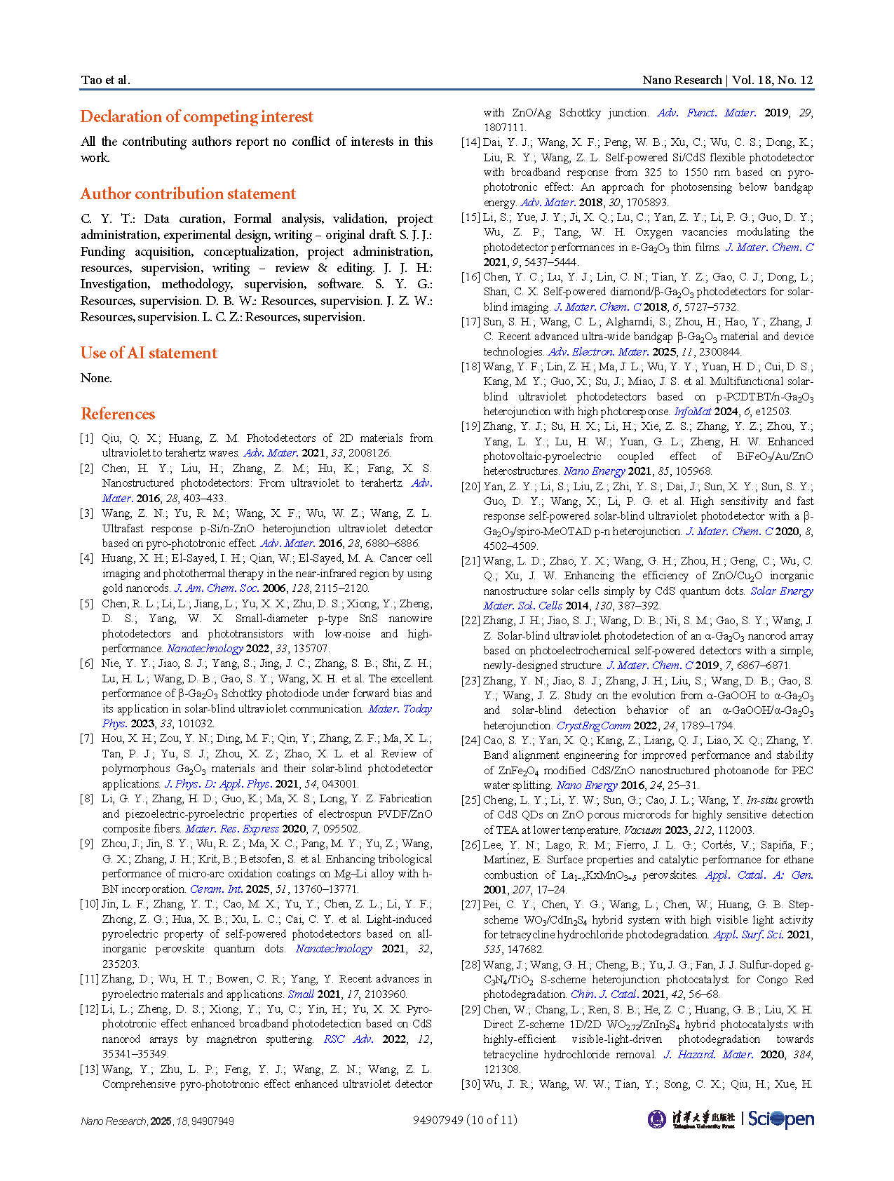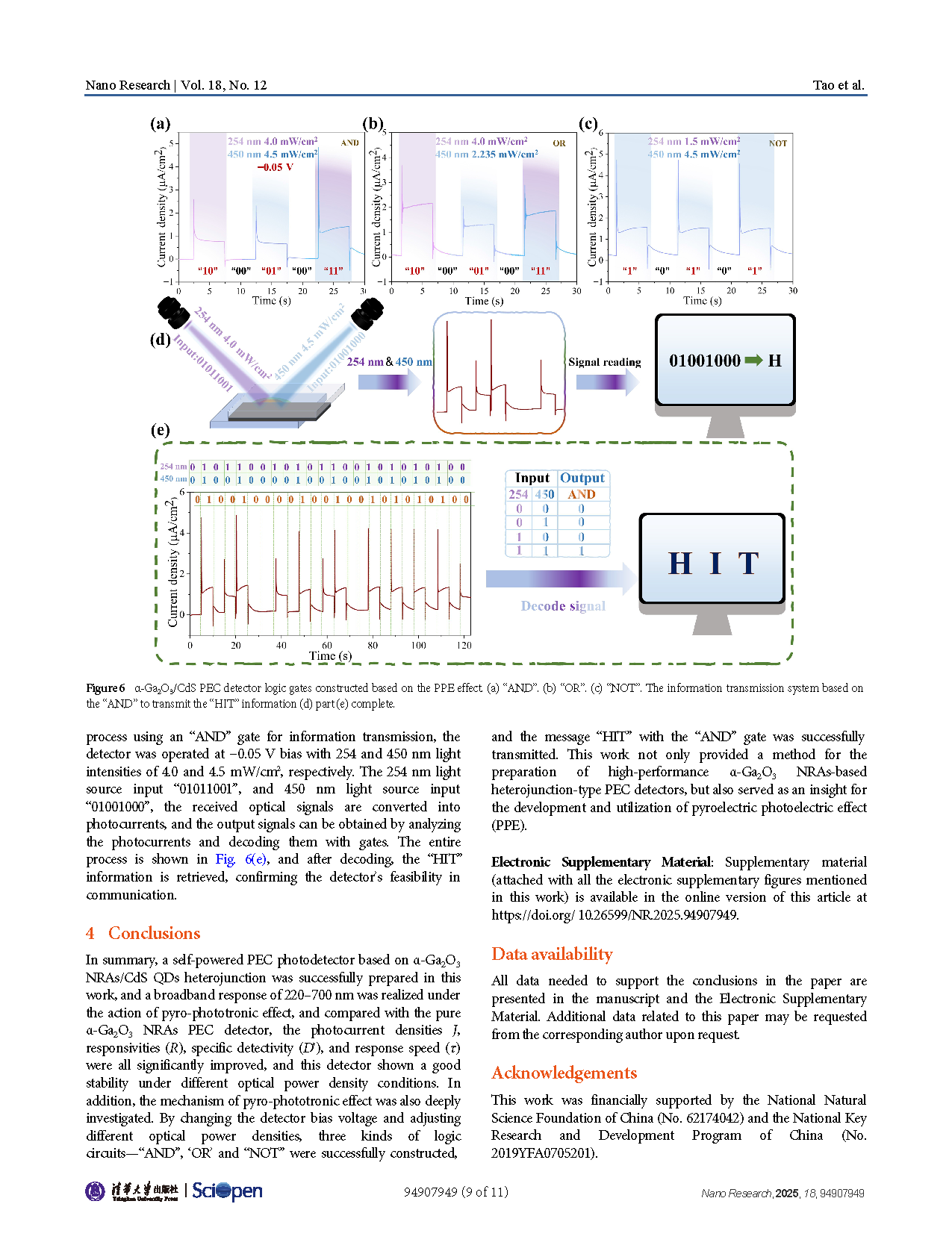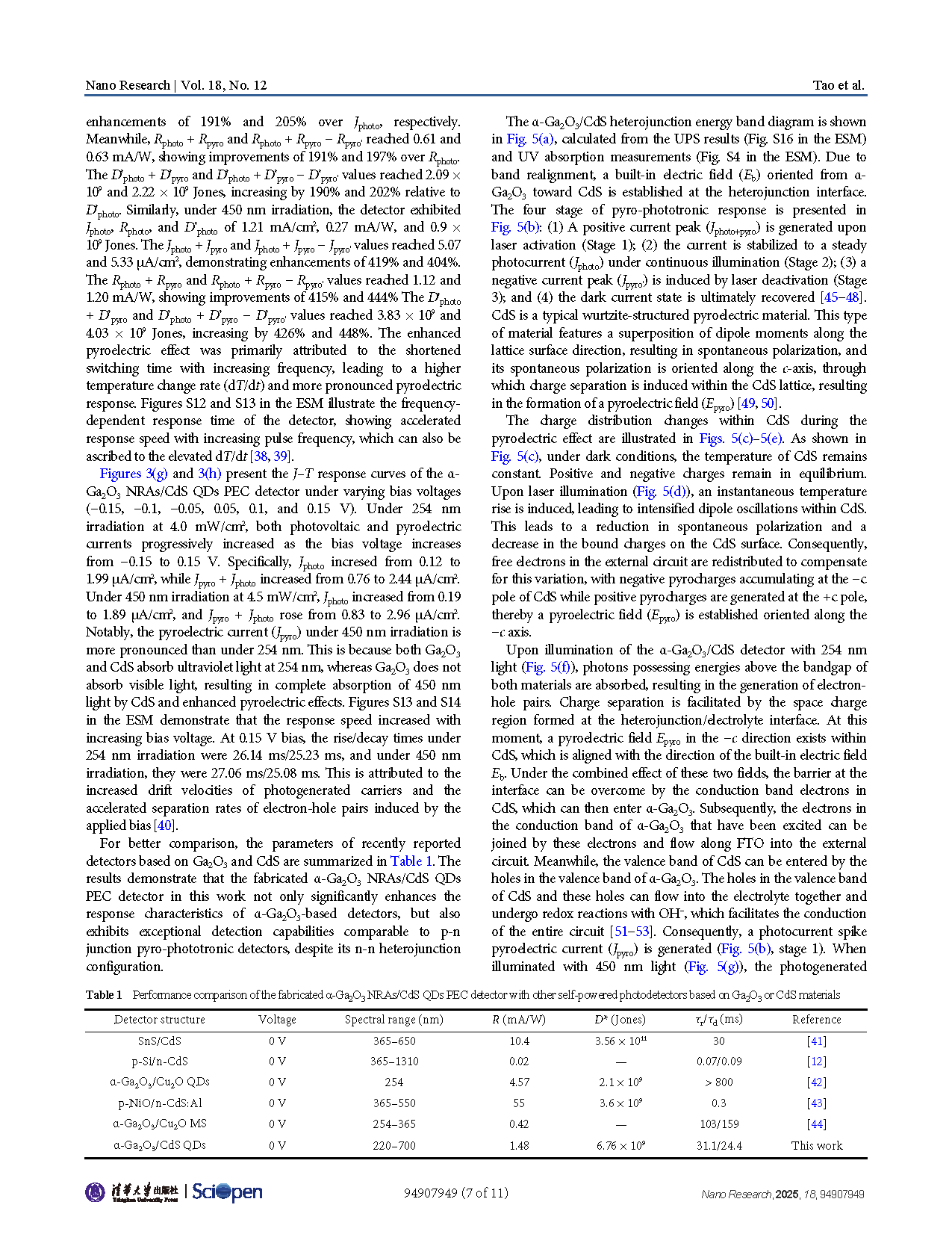 Researchers from the Harbin Institute of Technology have published a dissertation titled "High-performance α-Ga₂O₃/CdS quantum dots PEC photodetector based on the pyro-phototronic effect for optical communication" in Nano Research.