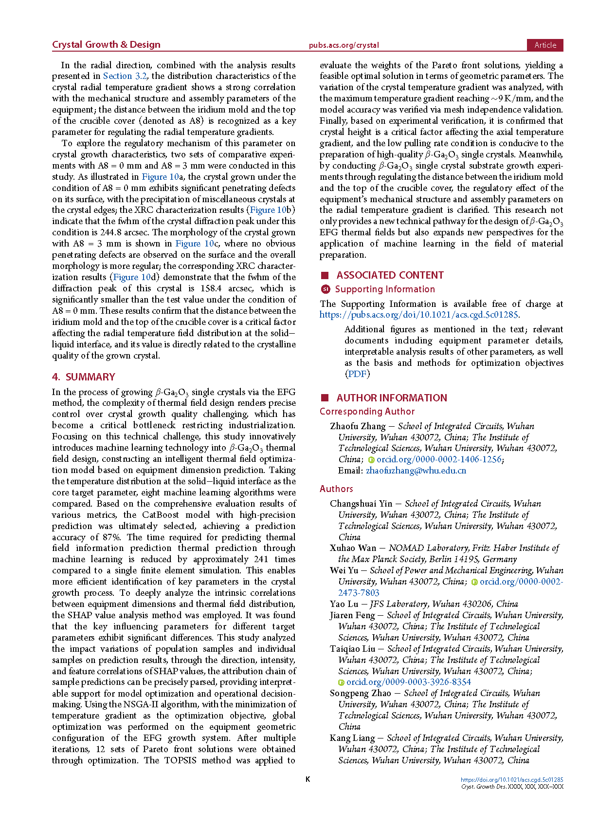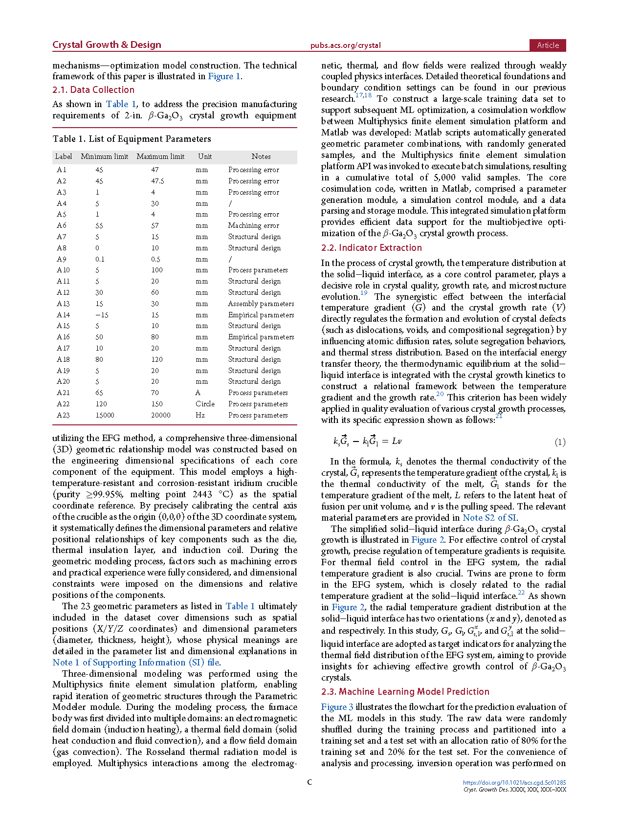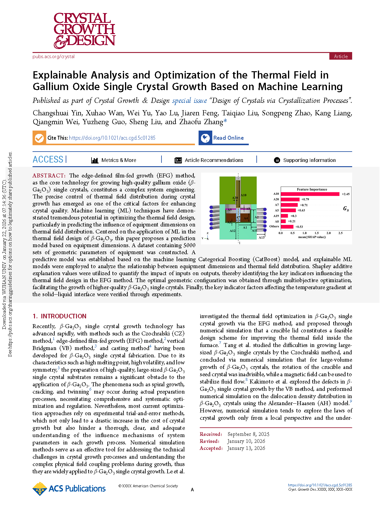 Researchers from the Wuhan University have published a dissertation titled " Explainable Analysis and Optimization of the Thermal Field in Gallium Oxide Single Crystal Growth Based on Machine Learning " in Crystal Growth & Design.