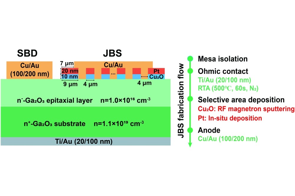 According to the spokesman for the team, Xiaohui Wang from Southern University of Science and Technology, by integrating a Cu2O/Ga2O3 heterojunction with a low work-function copper anode, this collaboration has produced a diode that combines a turn-on voltage of less than a volt with a breakdown voltage beyond 2 kV. The result is a leading figure-of-merit for power devices.