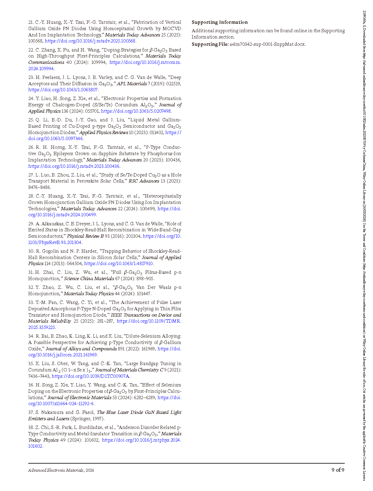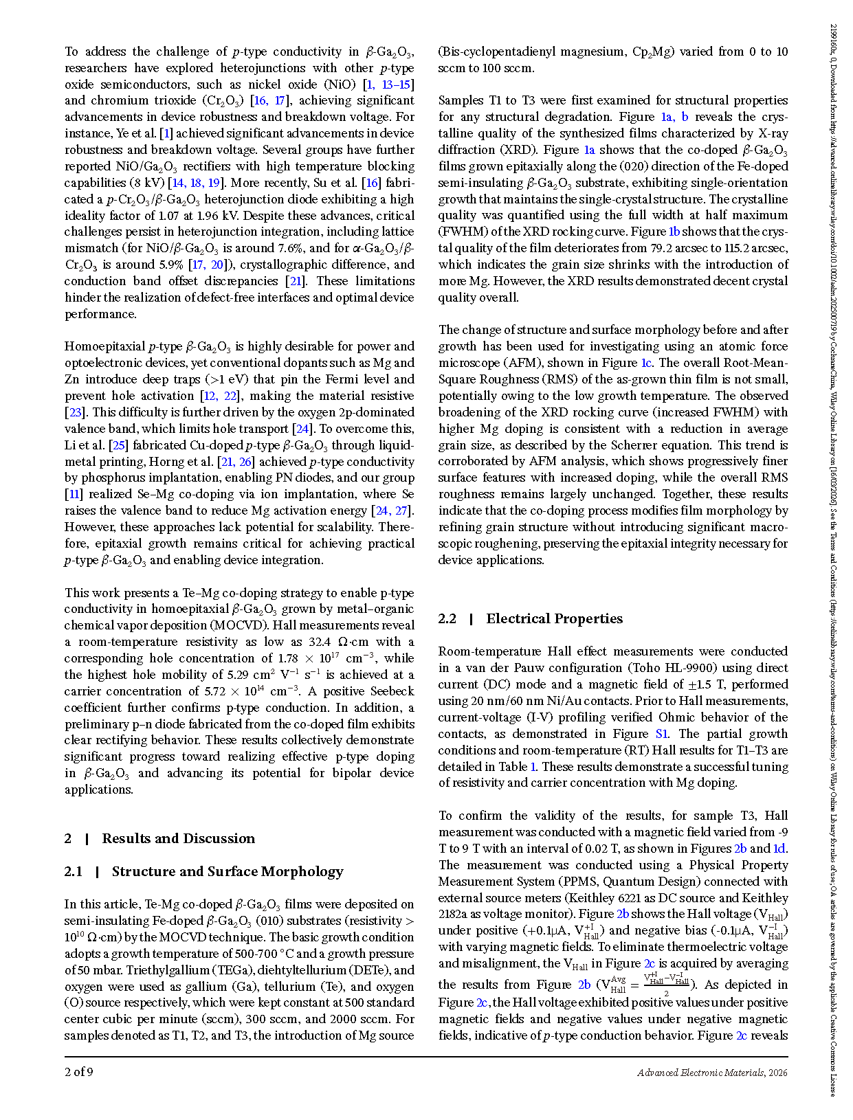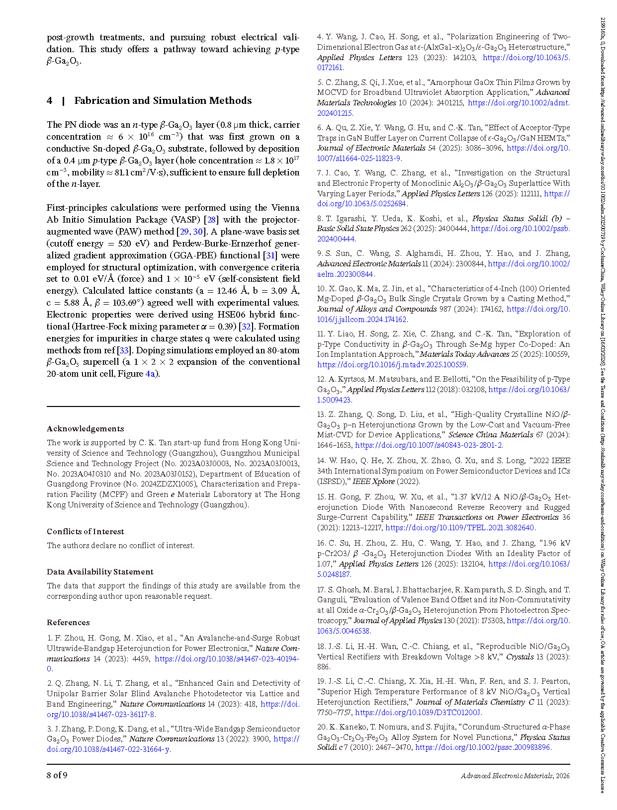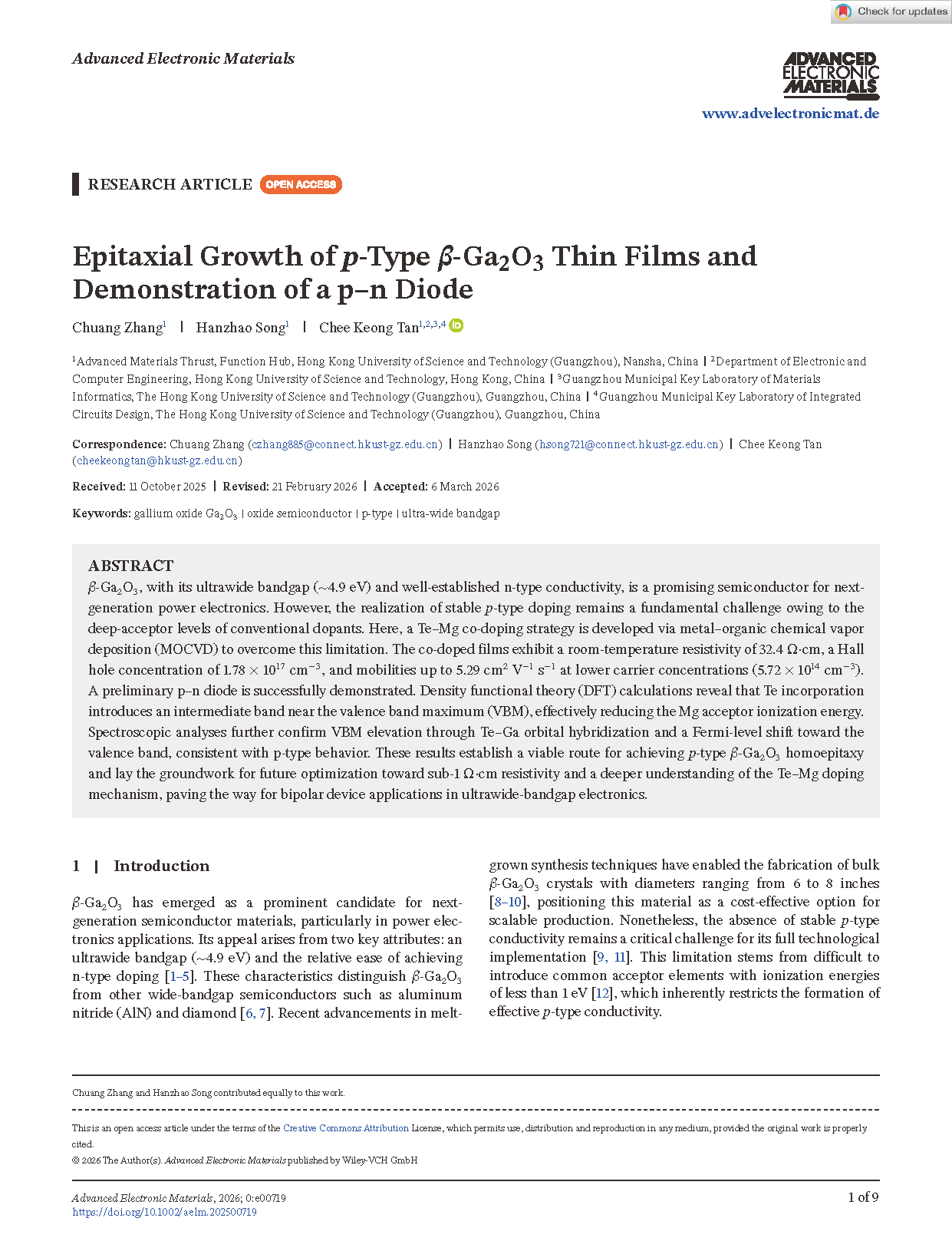 Researchers from the Hong Kong University of Science and Technology have published a dissertation titled " Epitaxial Growth of p-Type β-Ga2O3 Thin Films and Demonstration of a p–n Diode " in Advanced Electronic Materials.