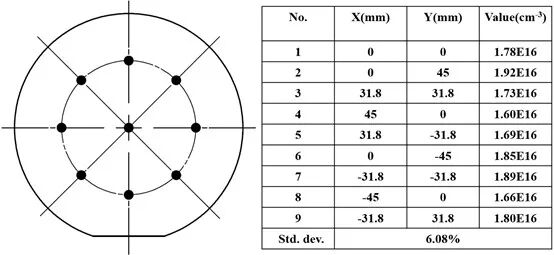 通过电容-电压(C-V)法测试得出,外延层载流子浓度介于1.60E16 cm-3至1.92E16 cm-3之间,标准方差为6.08%,证实外延层电学均匀性良好,适用于高压功率器件的制备。