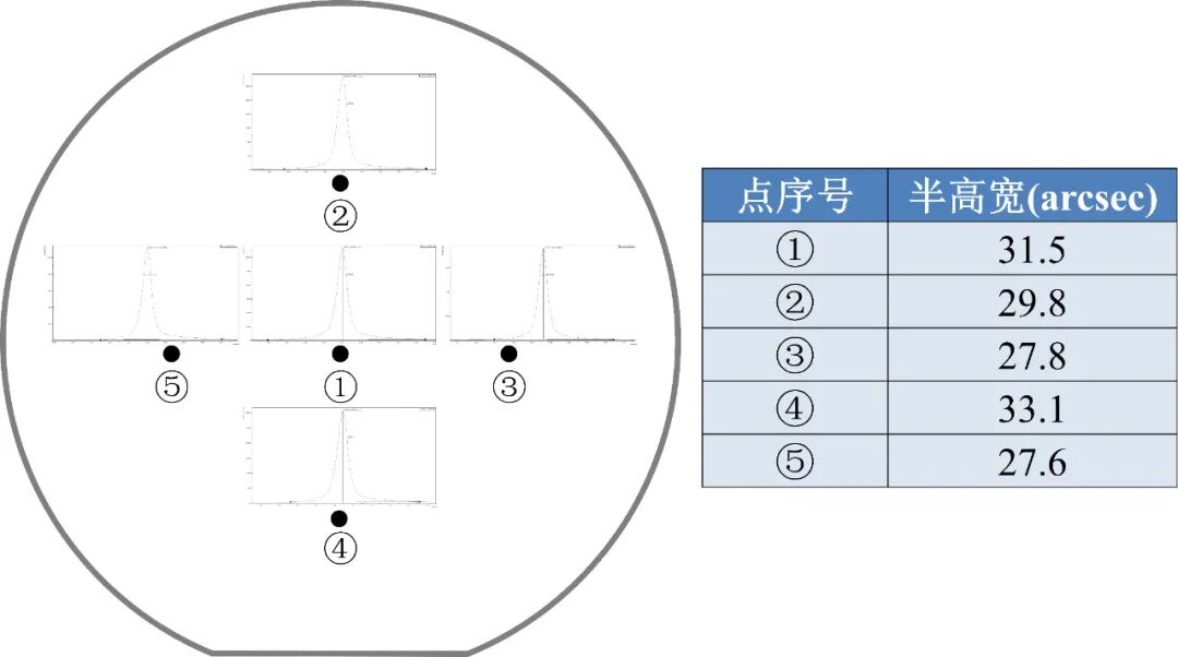 图4 高分辨XRD摇摆曲线及对应点位测试结果