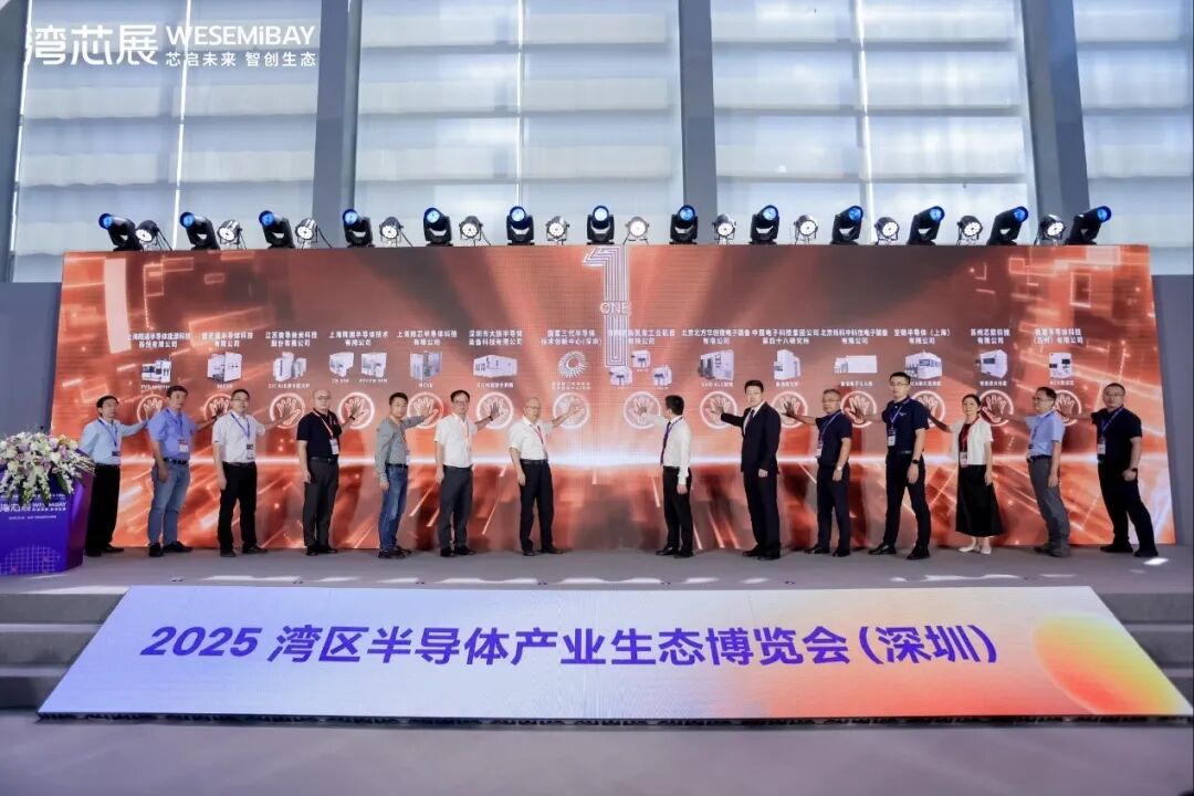 深圳平湖实验室副主任贾国军与北京北方华创微电子装备有限公司、深圳市大族半导体装备科技有限公司、上海精测半导体技术有限公司等13家国产设备商共同登台点亮16台国产设备标识,这也标志着8吋宽禁带半导体国产工艺设备首台(套)验证成果正式发布。