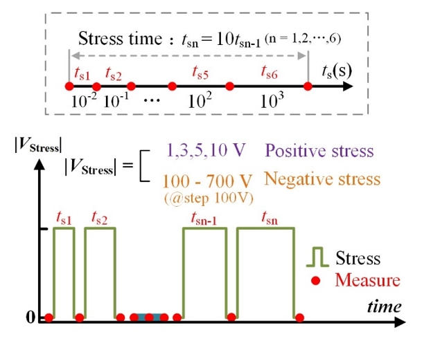 研究团队提出和制备了具有高击穿电压和可靠性的 VFT SBD 新结构。与未进行氟离子注入的常规 SBD 相比,VFT SBD 在不影响器件正向导通特性的前提下,将击穿电压从 520 V 显著提升至 1480 V,同时展现出快速稳定的反向恢复特性。通过施加 1 V、3 V、5 V 正向偏压和 -100 V 至 -700 V 反向偏压的应力测试评估器件可靠性。施加应力前后,VFT SBD 的电流密度、比导通电阻和开启电压的波动均小于3%。实验结果表明,所制备的具有氟离子变注入复合终端的氧化镓肖特基势垒二极管实现良好的阻断特性和可靠性,展现出在高功率、高可靠性应用领域中的工作潜力。