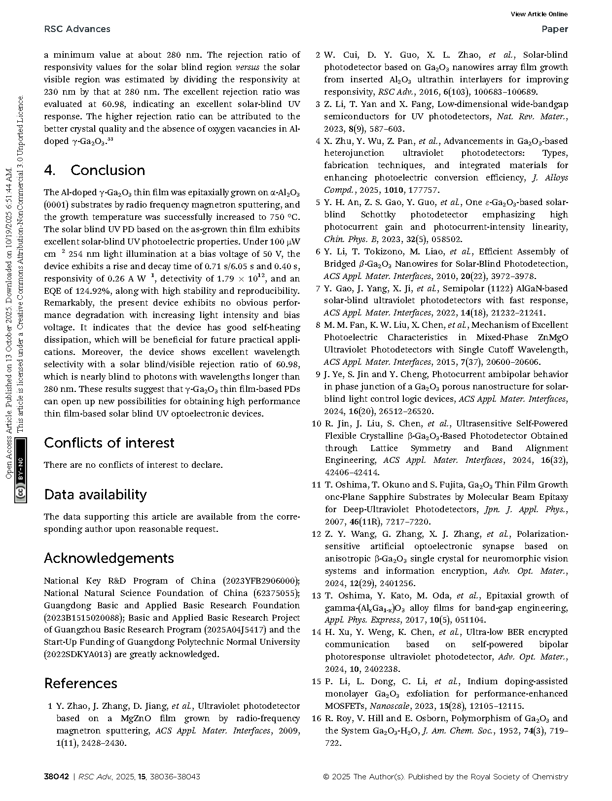 【国内论文】广东技术师范大学:基于铝掺杂尖晶石氧化镓薄膜的高性能日盲光电探测器