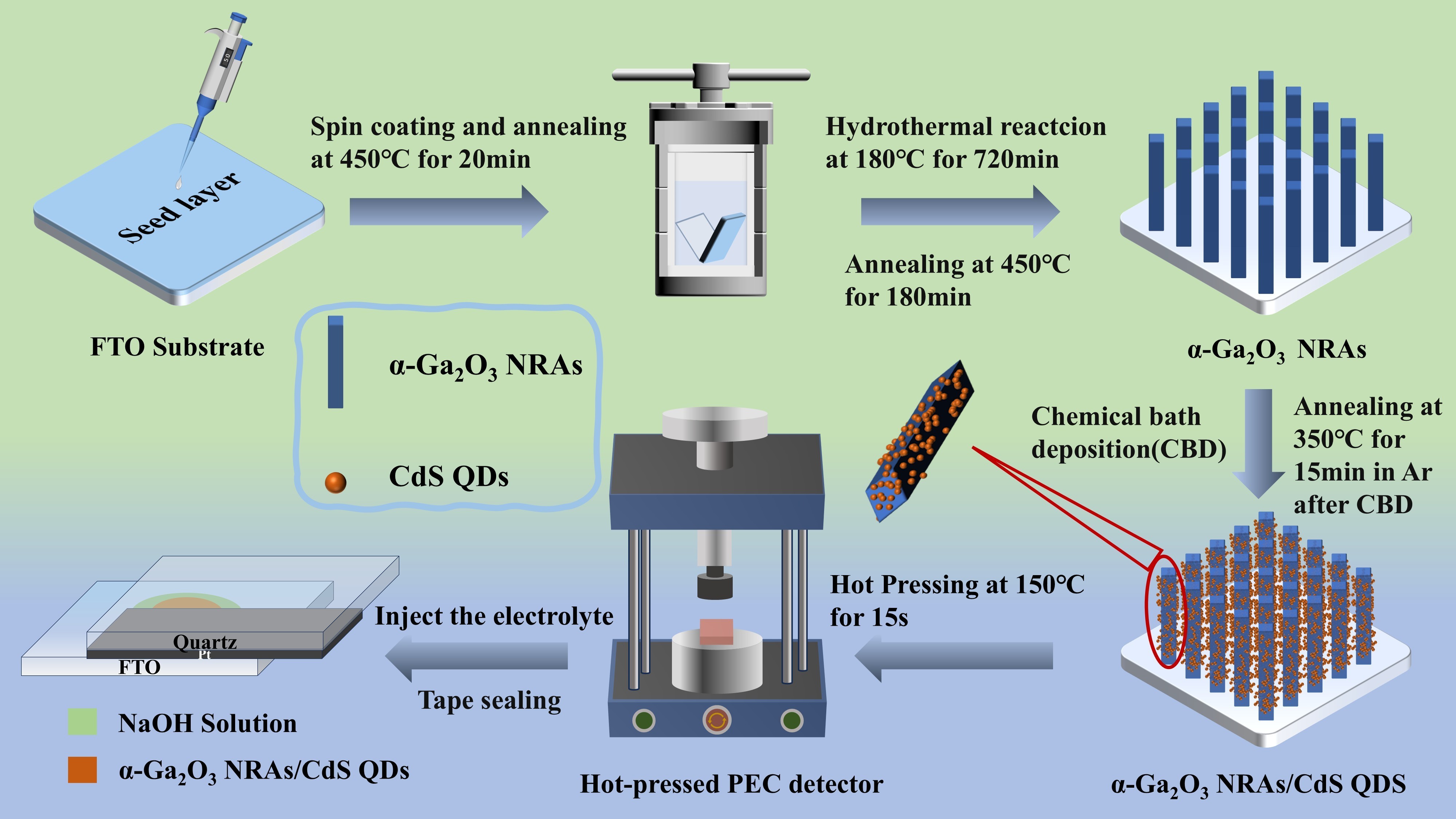 由哈尔滨工业大学材料学院矫淑杰副教授的研究团队在学术期刊 Nano Research 发布了一篇名为High-performance α-Ga₂O₃/CdS quantum dots PEC photodetector based on the pyro-phototronic effect for optical communication(通过α-Ga₂O₃/CdS光电化学型探测器的热释光电子学效应实现宽光谱、高响应光通信)的文章。