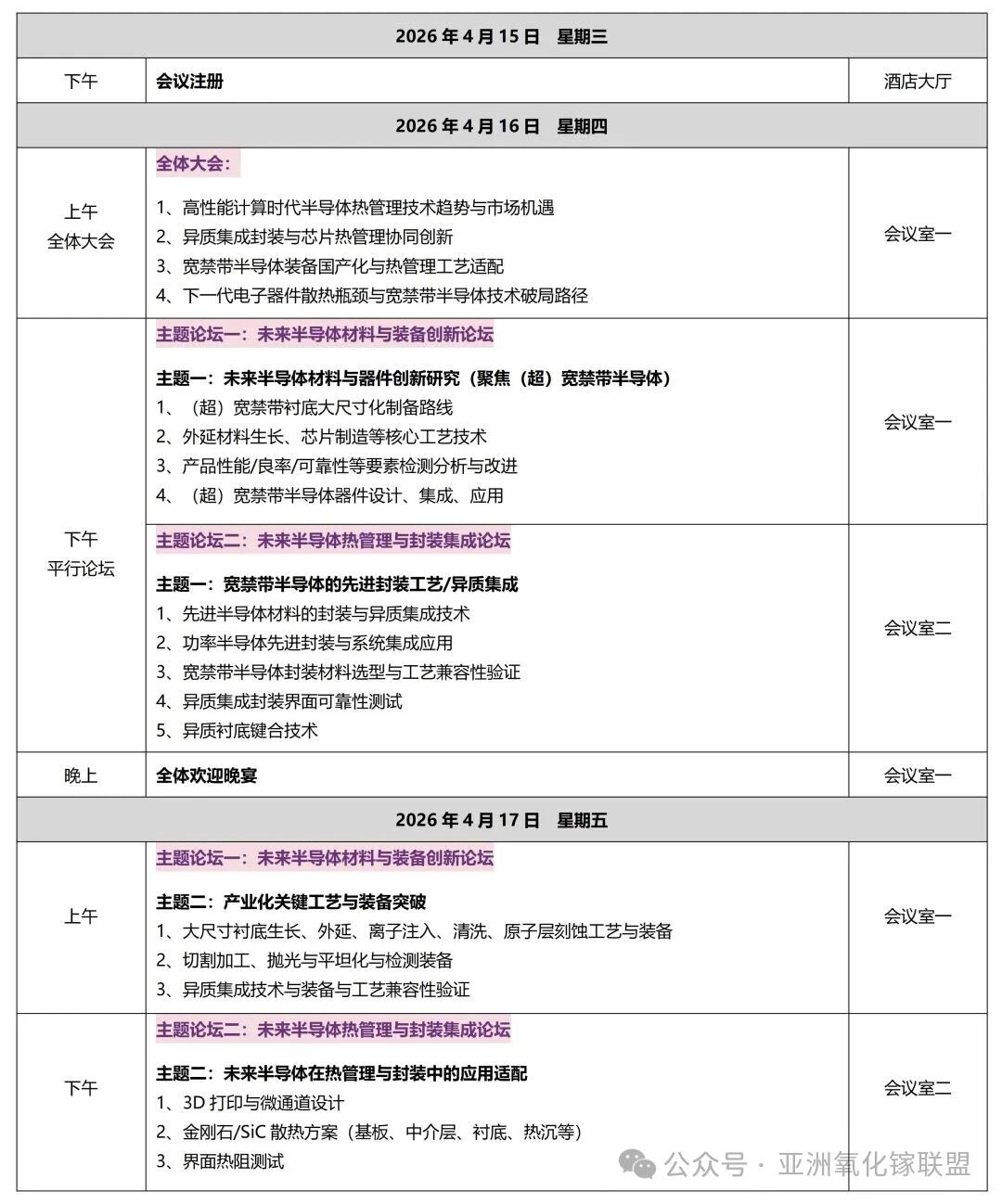 基于此,Flink启明产链将于4月16-17日江苏苏州举办“2026未来半导体产业创新大会”,本届大会以金刚石、碳化硅、氮化镓、氧化镓等(超)宽禁带半导体材料为核心,紧扣“材料-器件-工艺-装备”与“异质集成-热管理-封装应用”两大链条,聚焦半导体材料生长、高导热基底、异质集成、先进封装、微通道散热等关键领域,探讨下一代电子器件散热趋势,旨在搭建产学研协同平台,助力半导体绿色计算新生态构建。