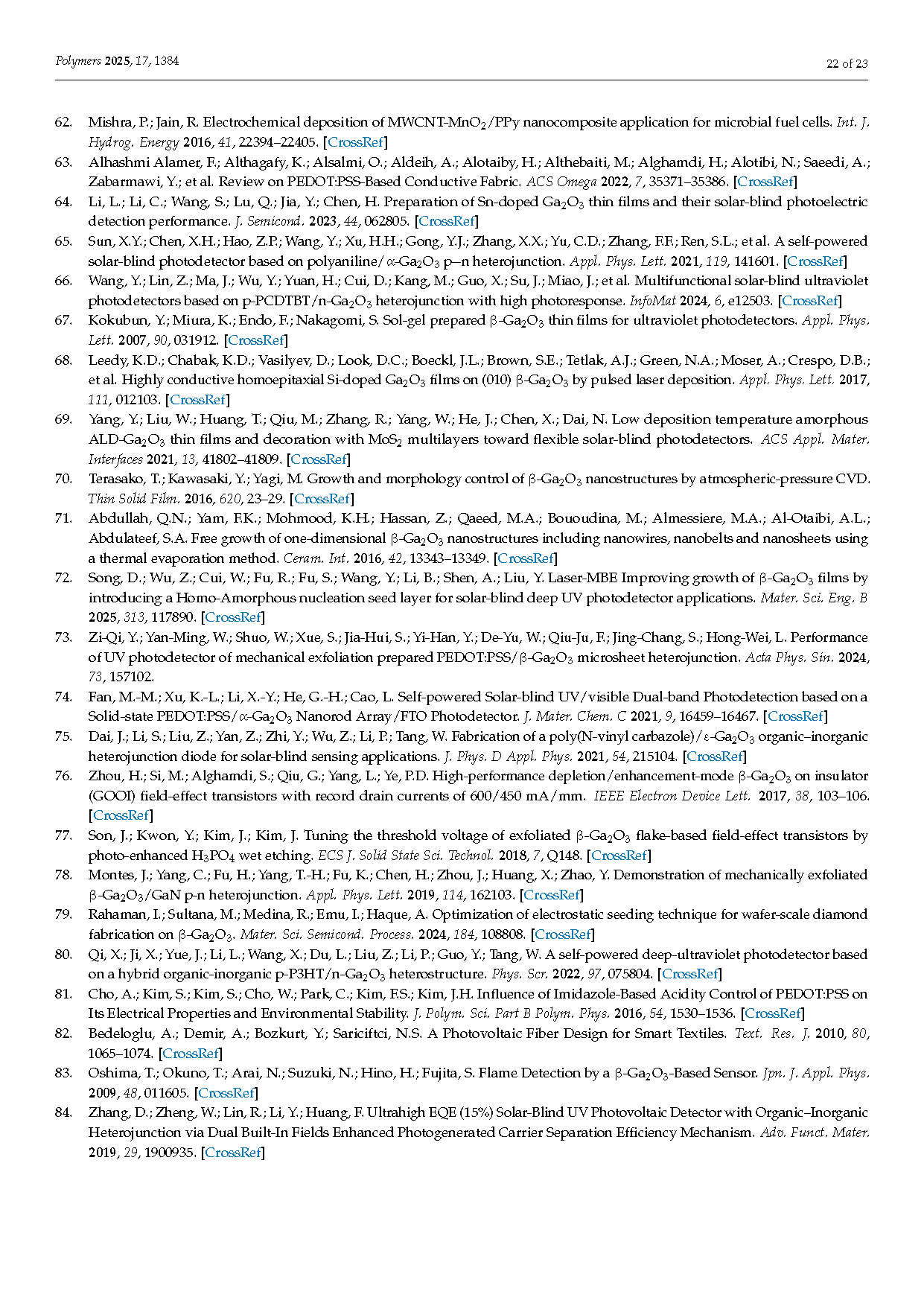 由华南理工大学的研究团队在学术期刊 Polymers 发布了一篇名为 Self-Powered Ultraviolet Photodetectors Based on Conductive Polymers / Ga₂O₃ Heterojunctions: A Review(基于导电聚合物/Ga₂O₃ 异质结的自供电紫外线光电探测器: 综述)的文章。