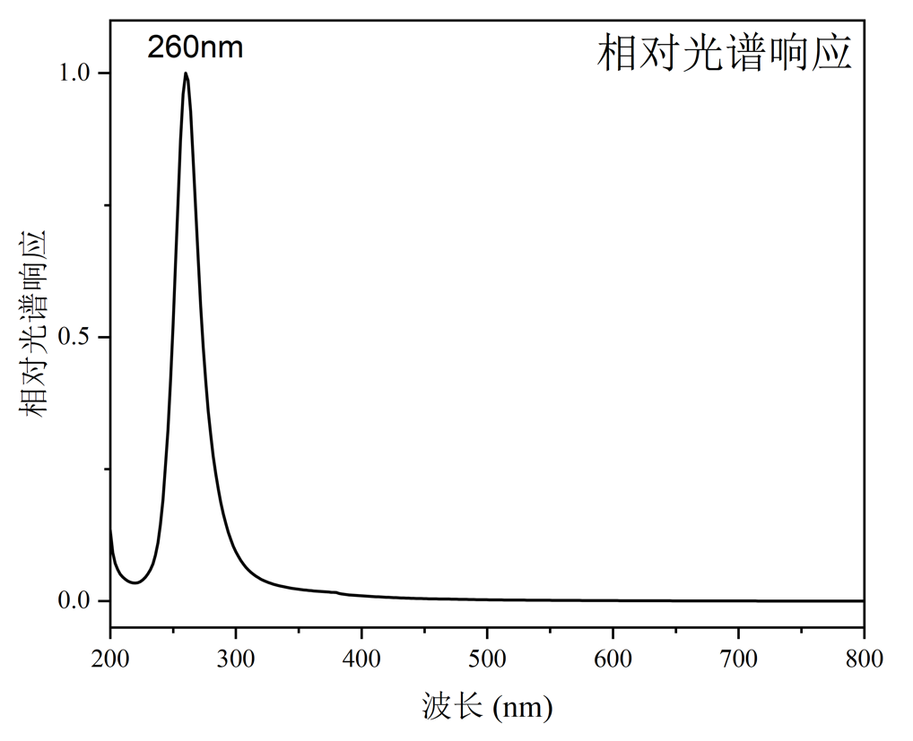 图2、氧化镓日盲紫外光电探测芯片光谱响应曲线