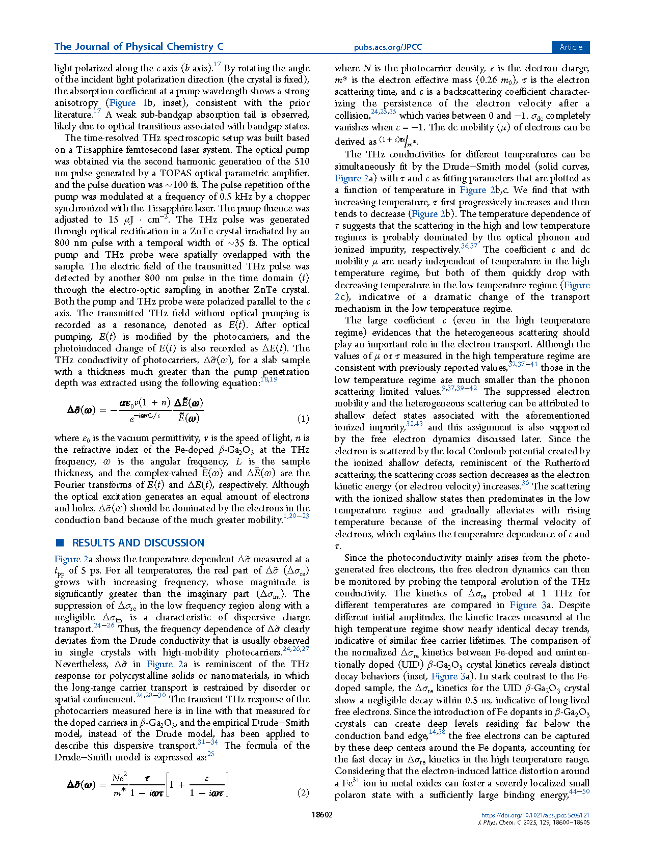 ● 成功地将时间分辨 THz 光谱与 Drude-Smith 模型结合,清晰地揭示了 Fe 掺杂 β-Ga2O3 中复杂的色散电子传输行为,并定量分离了不同散射机制的贡献。