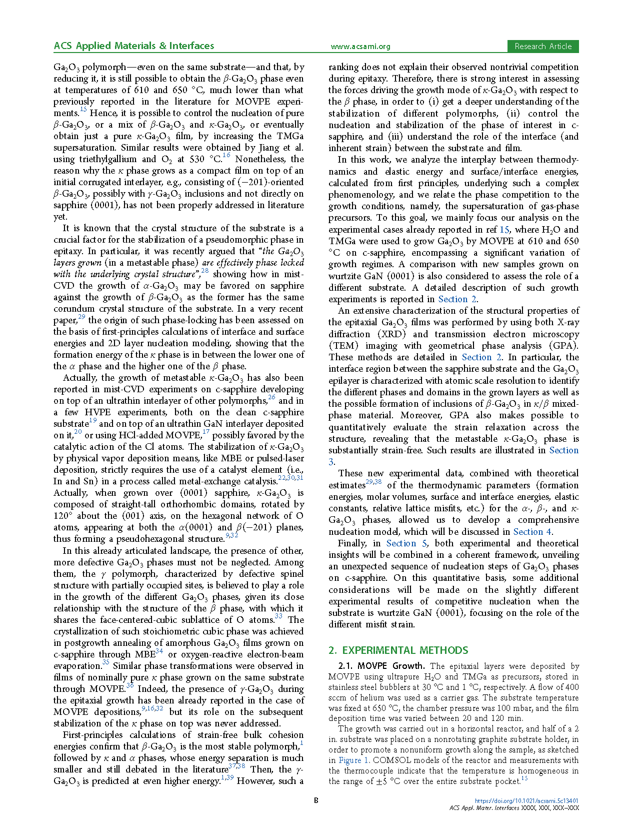 本文揭示了 MOVPE 生长机制,并将其描述为一系列连续的生长步骤。由于 Ga2O3 与 α-Al2O3 或 GaN 衬底之间存在较大的晶格失配,第一层成核层总是由聚并的三维 β 岛组成。