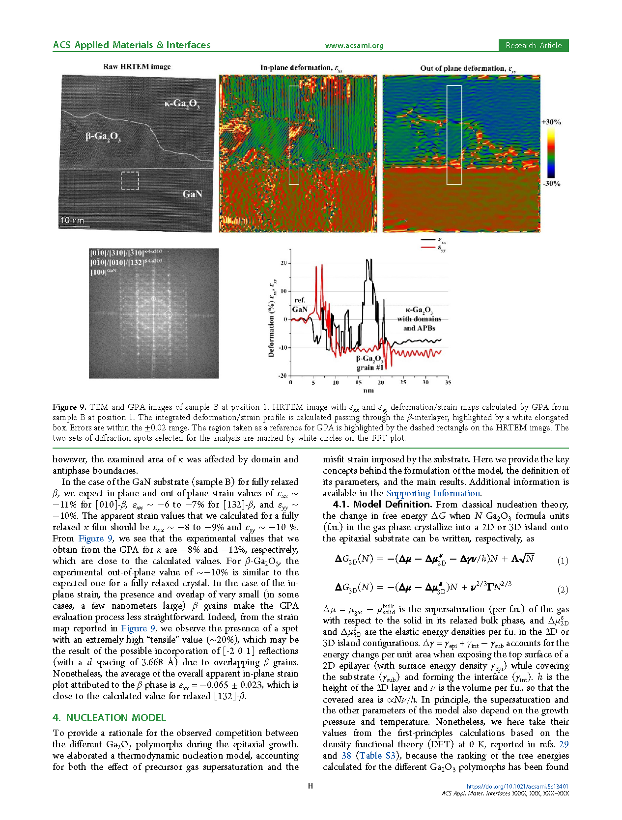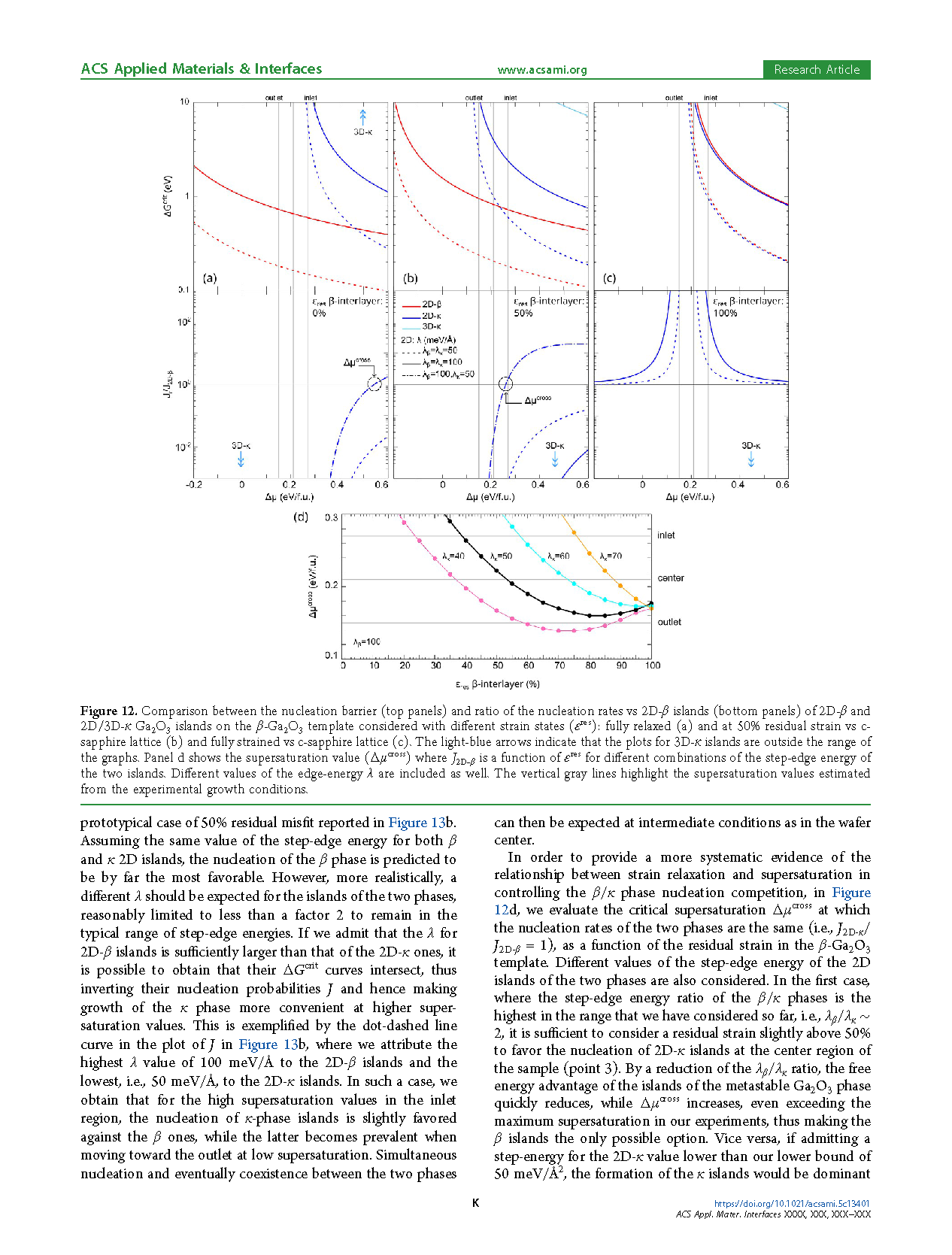 在随后的 Ga2O3 生长过程中,成核层部分起到模板作用,其特性受到下方衬底类型的显著影响。随后 κ 相或 β 相的进一步发展主要受两种机制驱动:β 成核层中残余应变的差异,以及成核层本身与 κ 相之间界面能的不同。