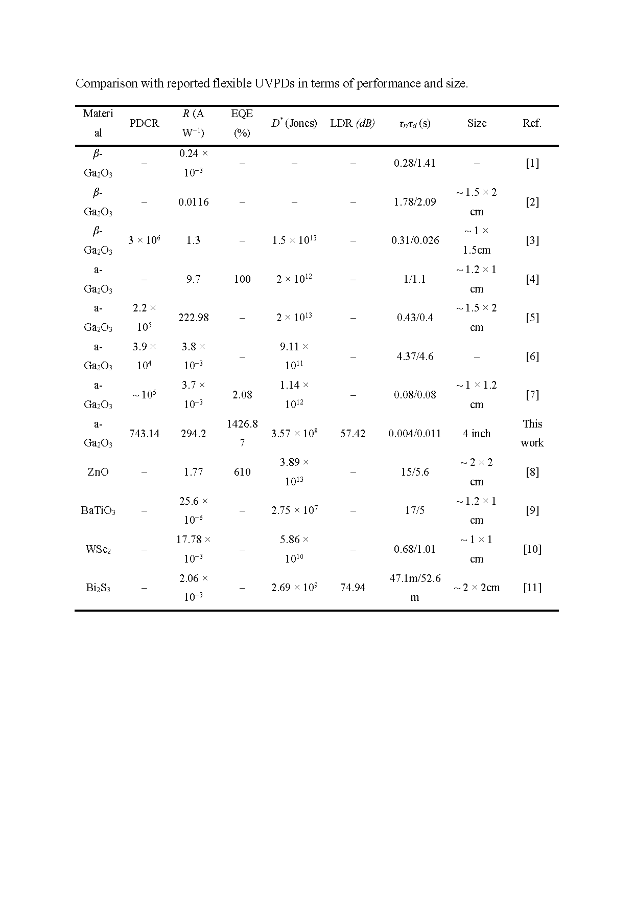 ● 基于非晶氧化镓的晶圆级柔性紫外探测器。
