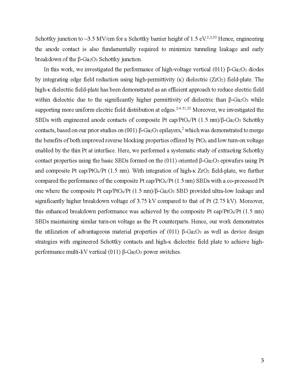 【国际论文】突破 3 kV 耐压与极低漏电的垂直 (011) β-Ga₂O₃ 二极管:采用工程化肖特基和高介电常数场