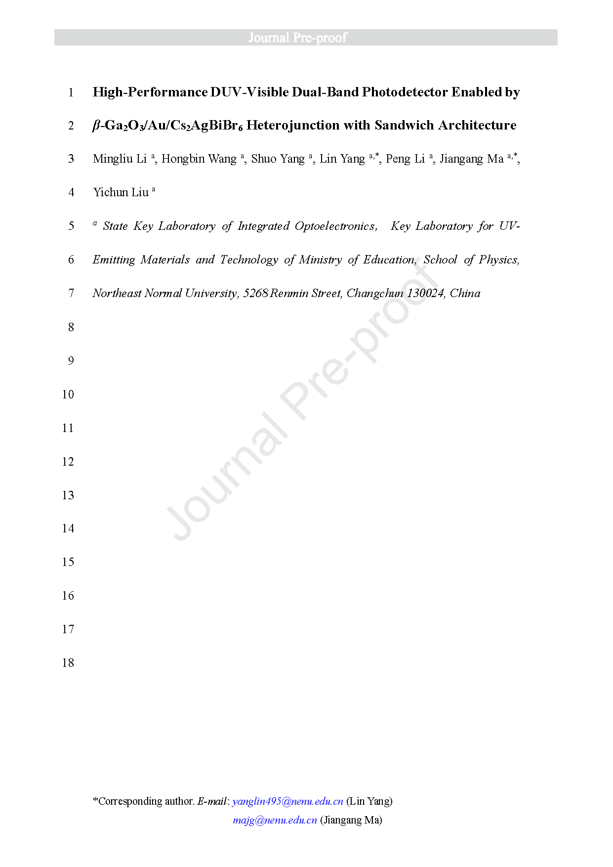 【国内论文】华北电力大学:基于优化工艺生长的 ε-Ga₂O₃/ZnO 异质结的光电突触器件