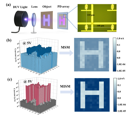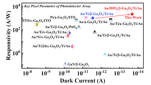 【国内论文】北京邮电大学吴真平教授团队:采用HfO₂绝缘层的氧化镓MISM光电二极管阵列实现20 fA超低暗电流日盲成像