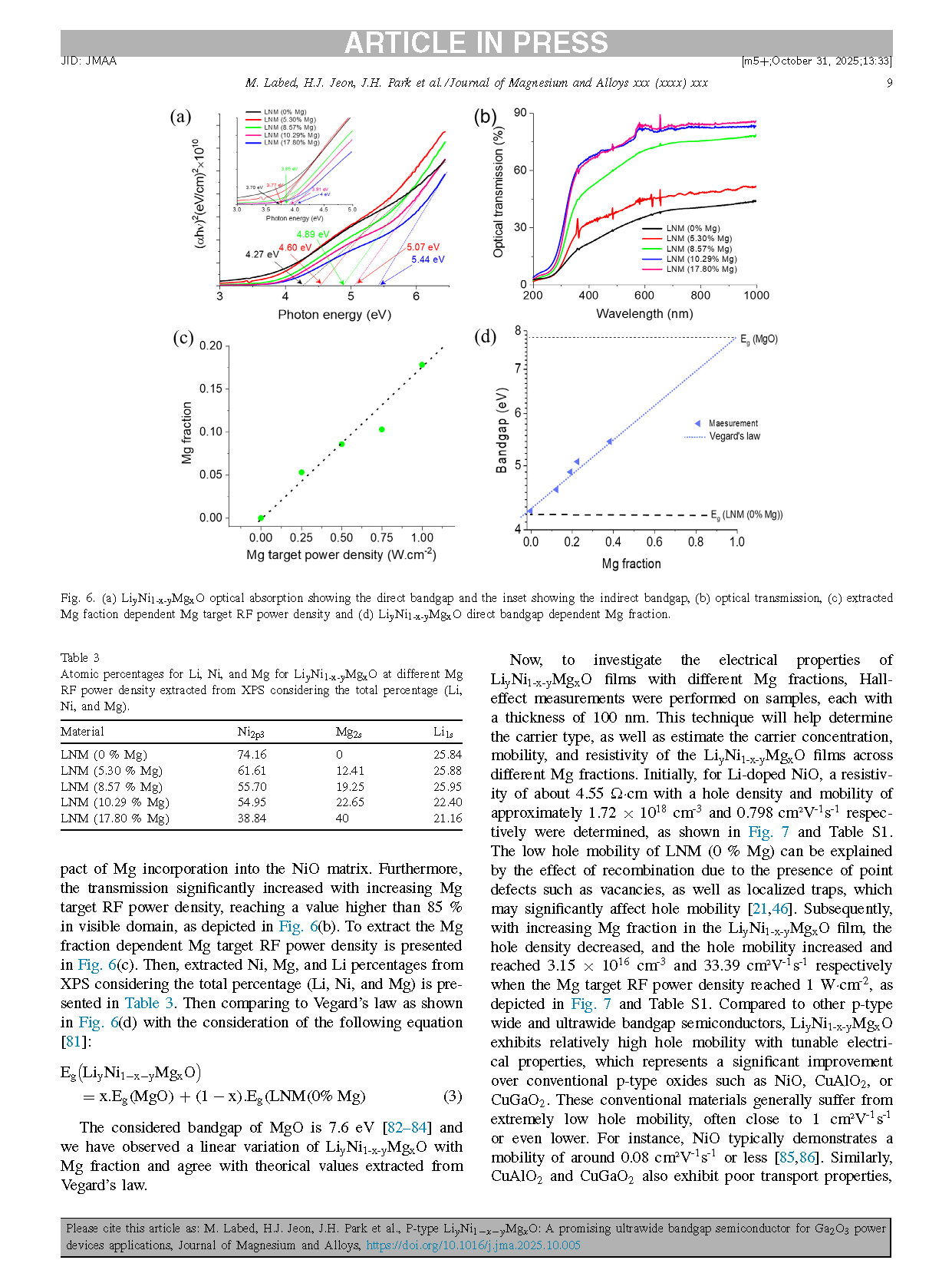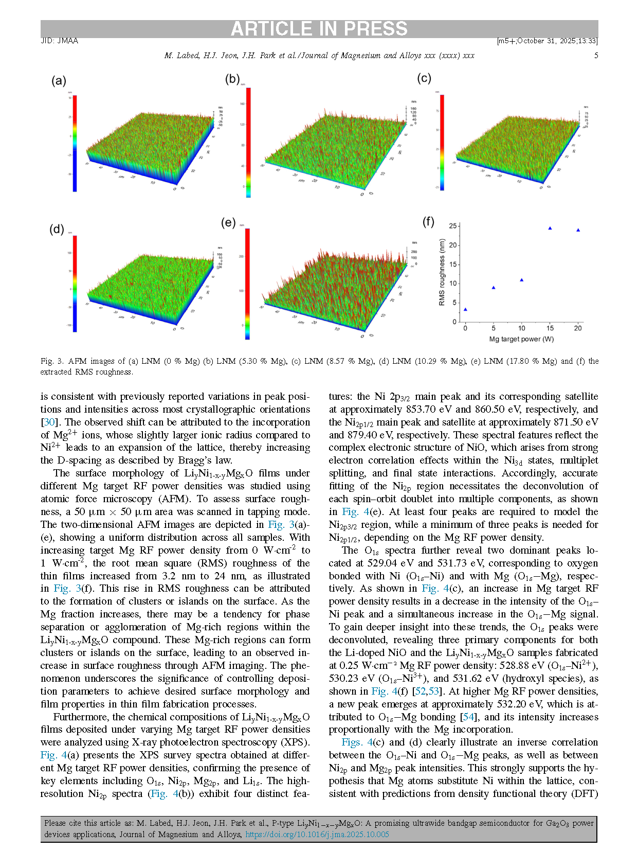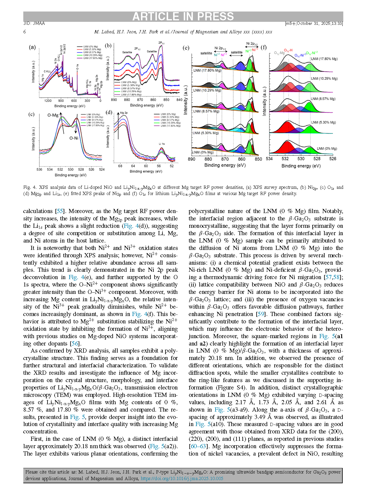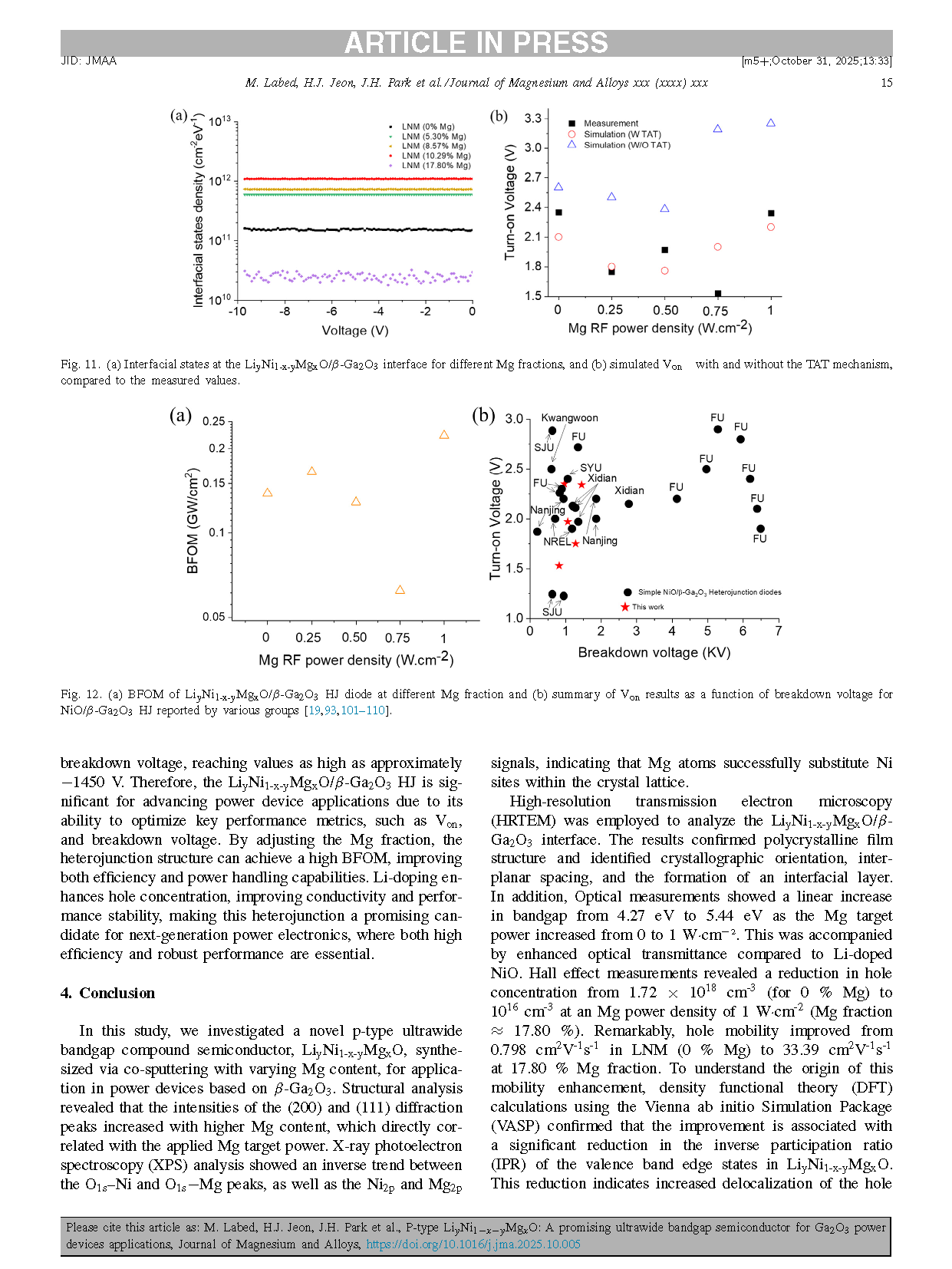 【国际论文】韩国世宗大学:P型LiᵧNi₁₋ₓ₋ᵧMgₓO:一种在氧化镓功率器件应用中具有潜力的超宽禁带半导体