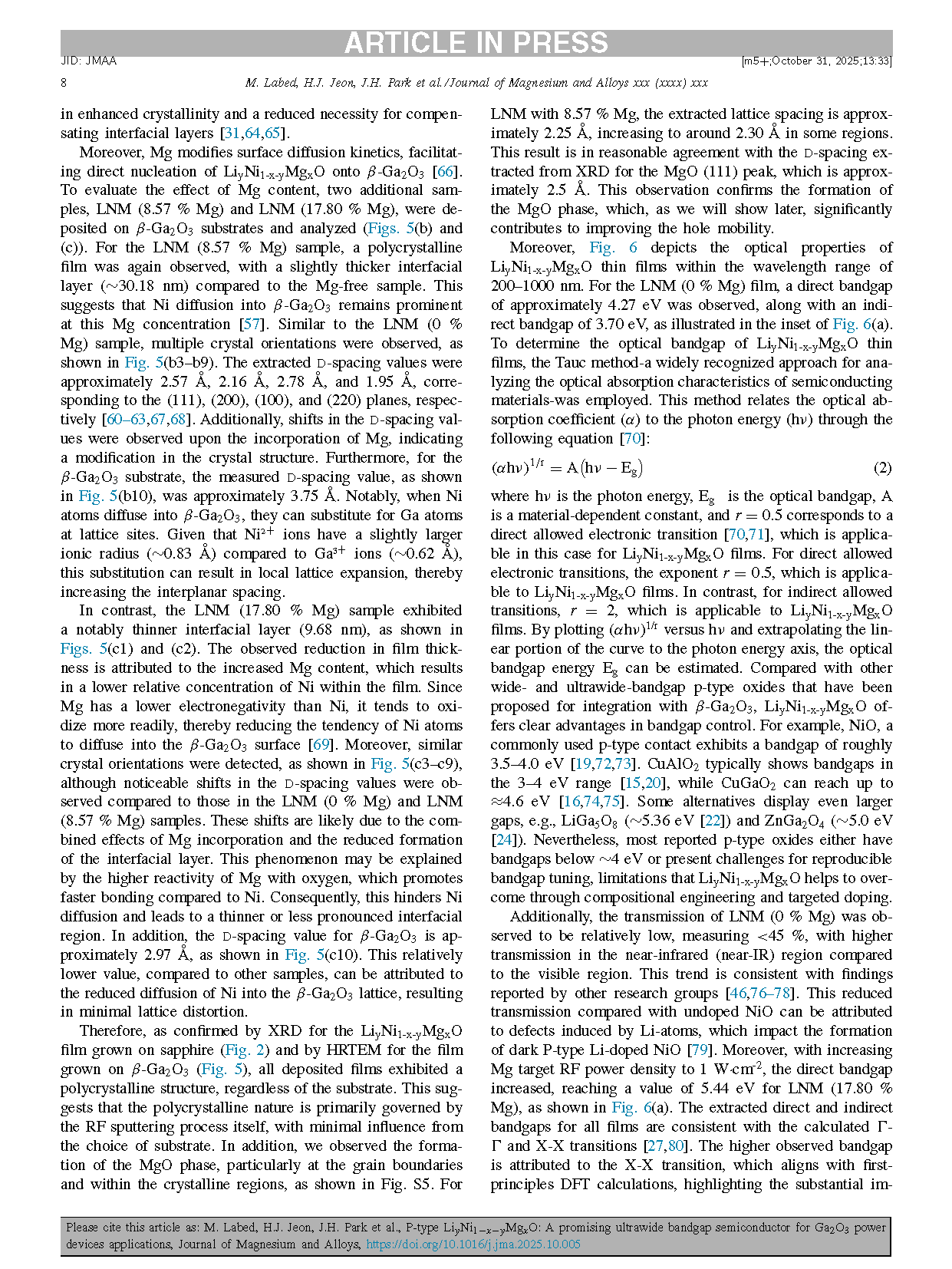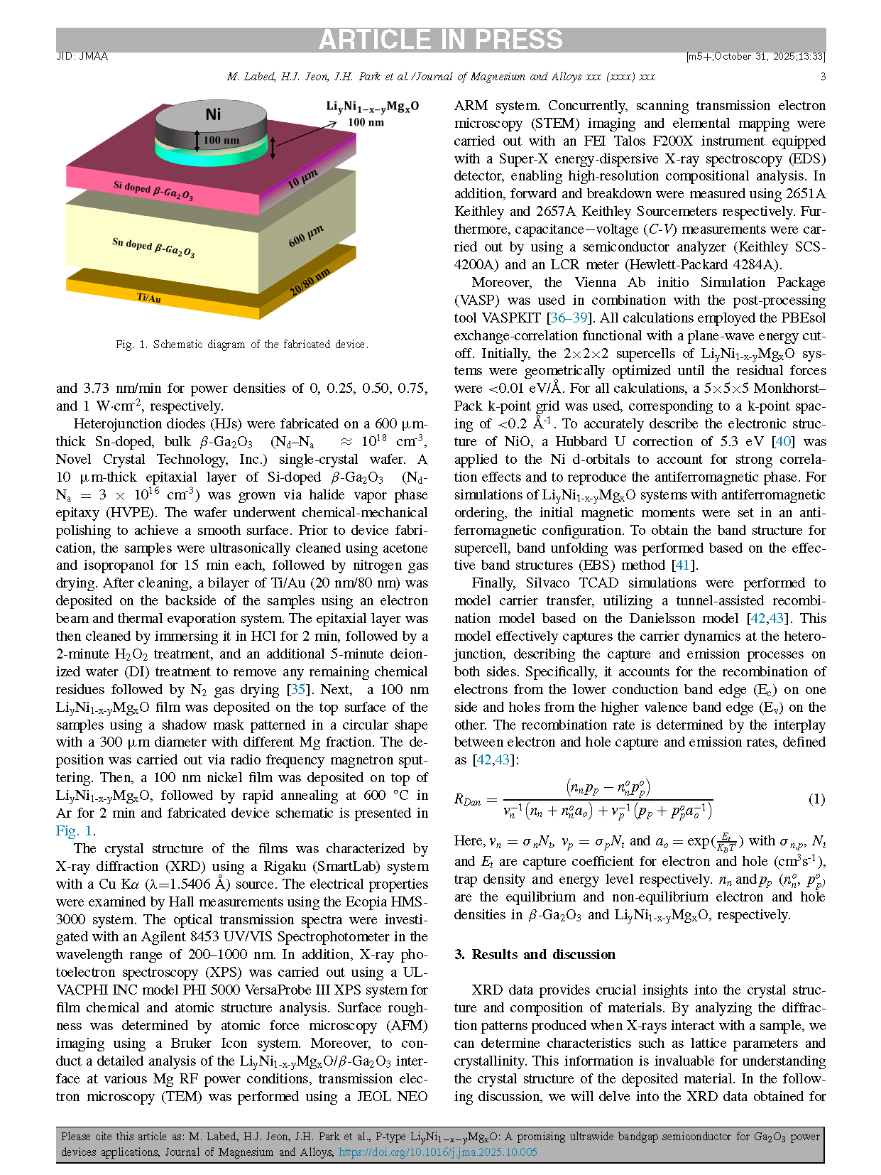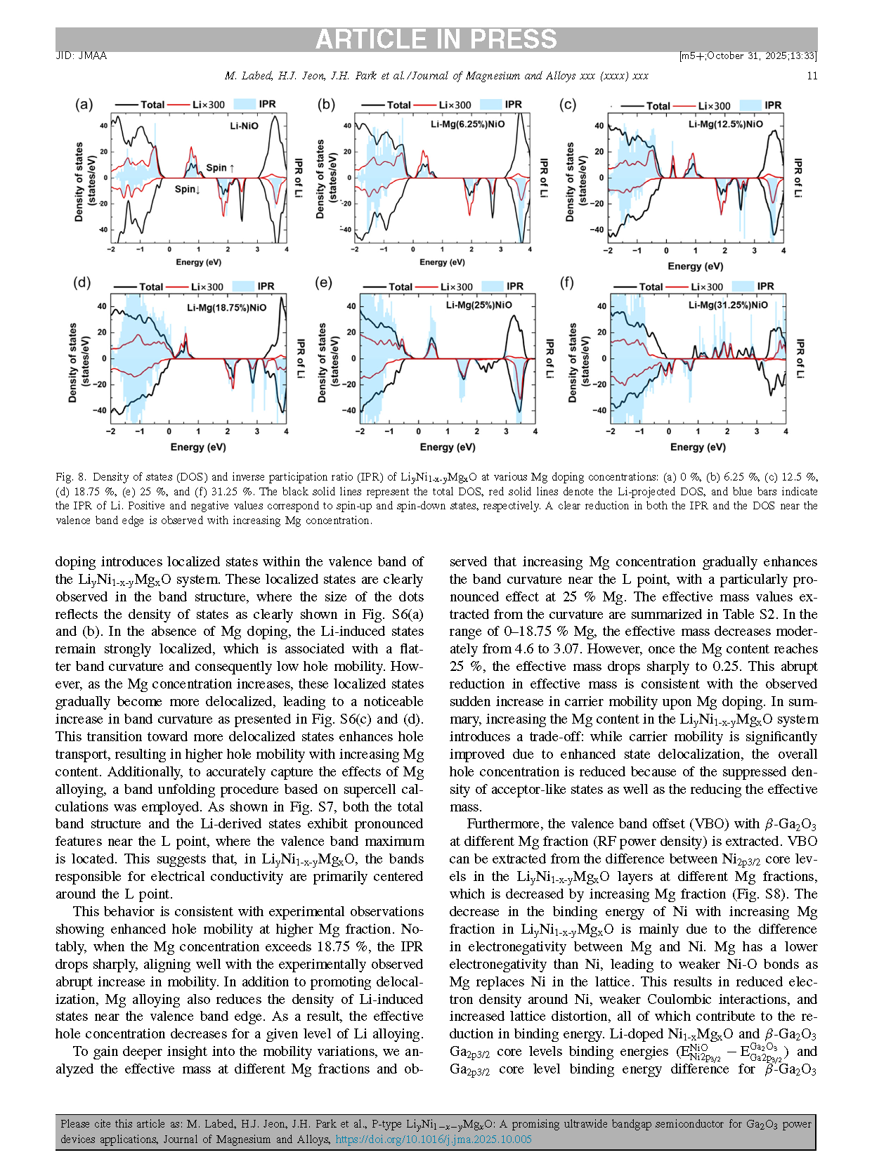 【国际论文】韩国世宗大学:P型LiᵧNi₁₋ₓ₋ᵧMgₓO:一种在氧化镓功率器件应用中具有潜力的超宽禁带半导体