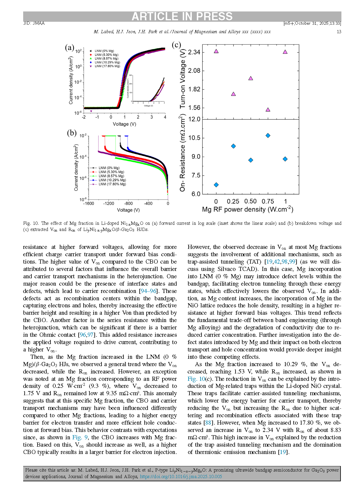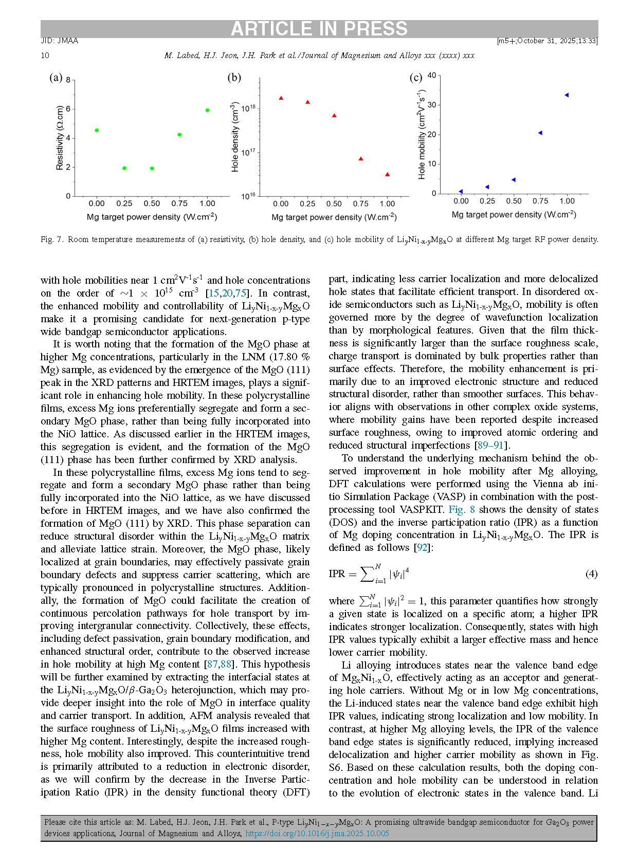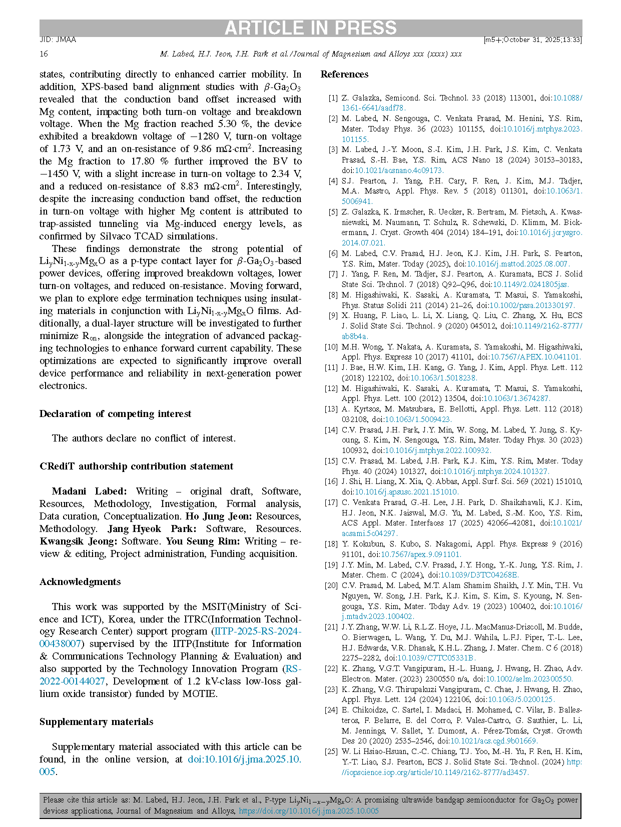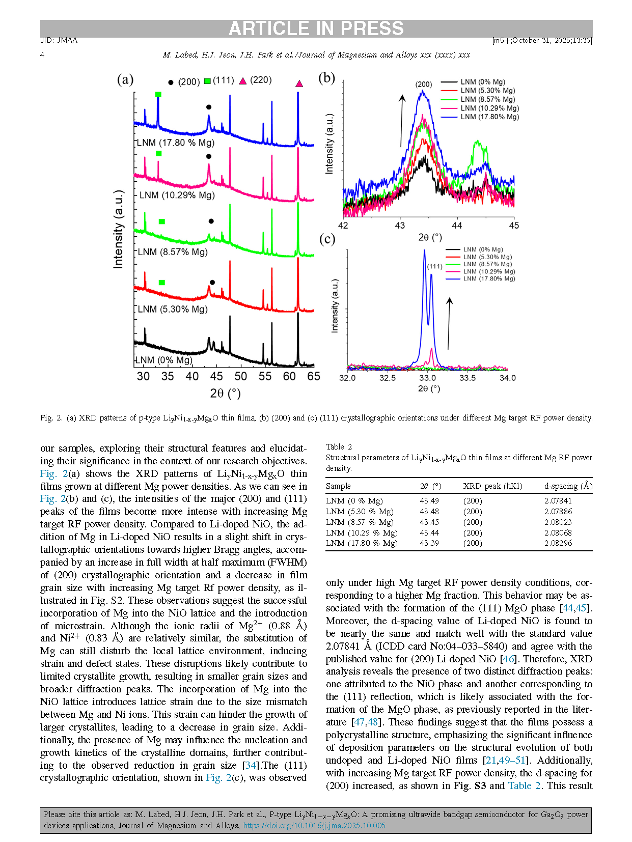 【国际论文】韩国世宗大学:P型LiᵧNi₁₋ₓ₋ᵧMgₓO:一种在氧化镓功率器件应用中具有潜力的超宽禁带半导体