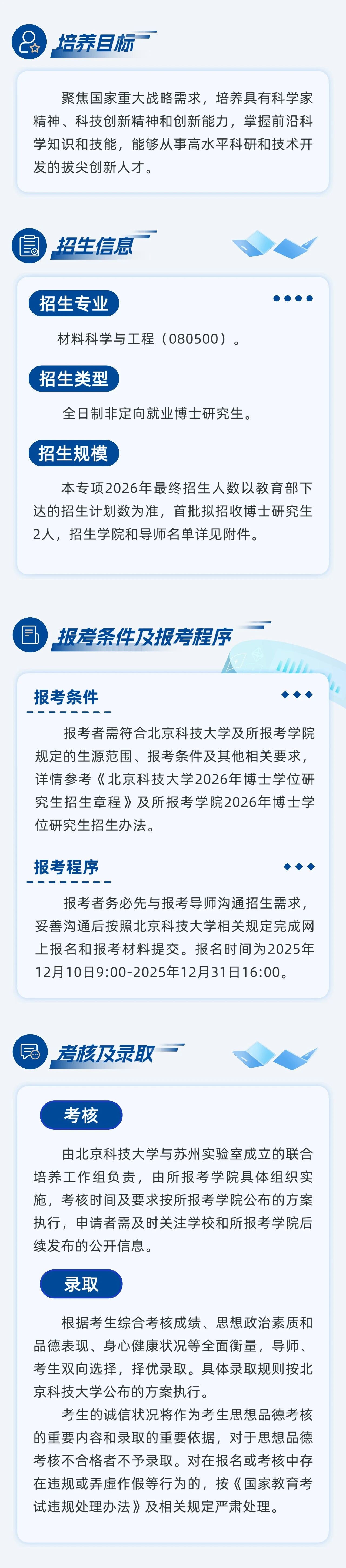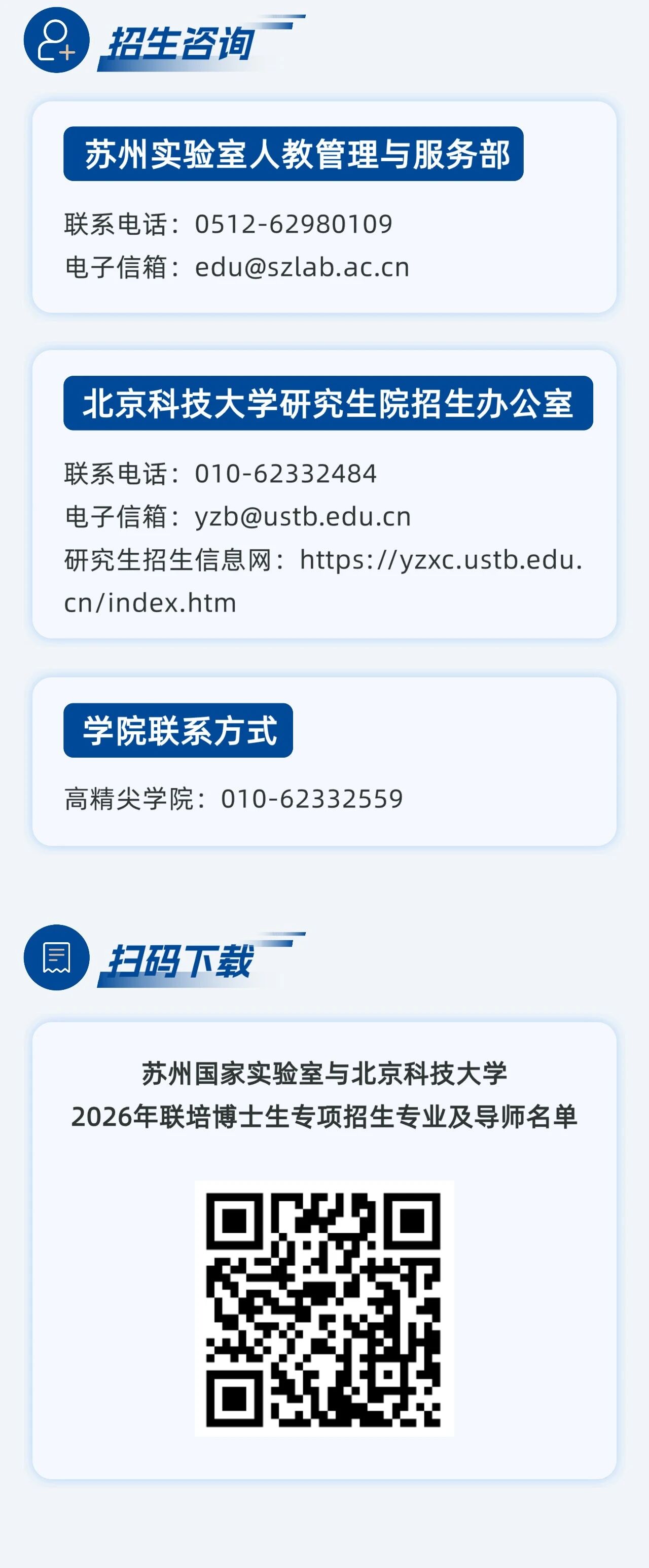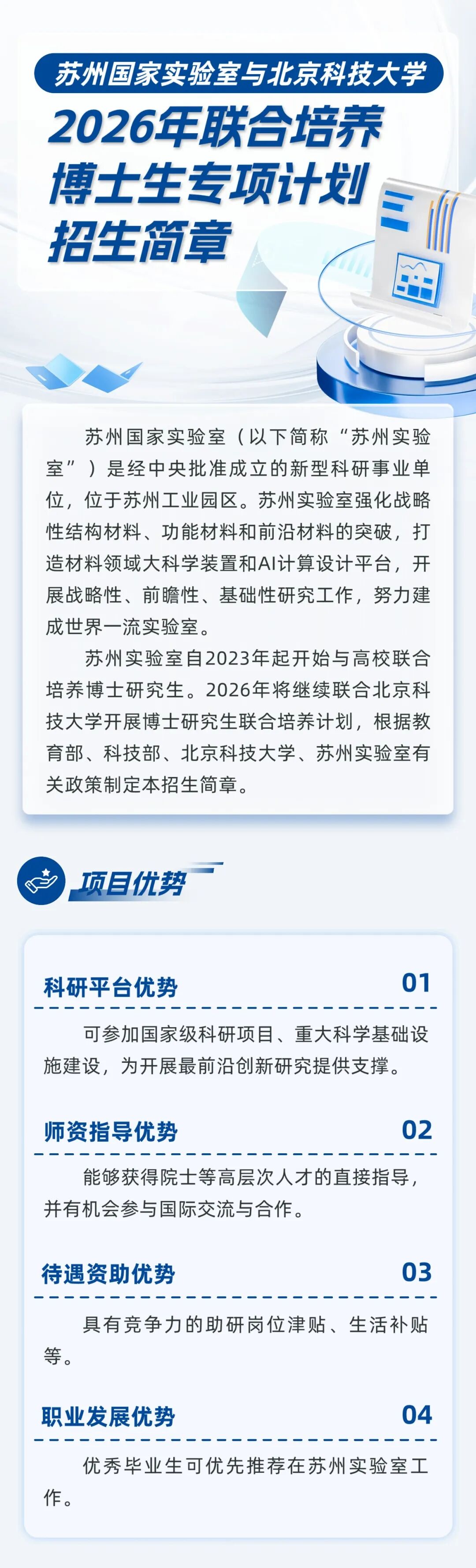 【人才库】苏州国家实验室与北京科技大学2026年联合培养博士生专项计划招生简章
