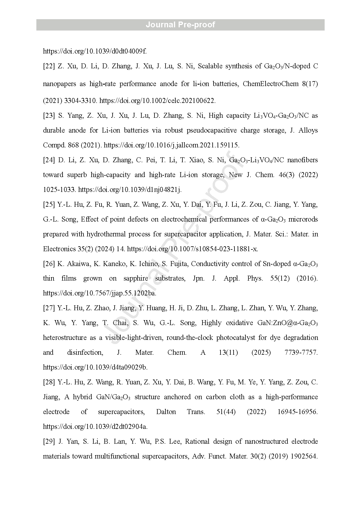 氧化镓(Ga2O3)是一类典型的超宽禁带半导体材料,已在高功率器件、日盲紫外探测器、透明导电层、传感器以及光电化学等领域展现出广泛的应用前景。近年来,凭借其较高的理论比容量,Ga2O3 也逐渐成为锂/钠离子电池和超级电容器电极材料的研究热点。然而,Ga2O3 在能量存储领域的实际应用性能在很大程度上受限于其内部丰富的本征点缺陷(如氧空位和镓空位)。这些缺陷一方面作为载流子散射中心,导致材料电导率较低;另一方面又可作为电化学反应的活性位点,促进离子吸附与氧化还原反应,体现出“劣势与优势并存”的特性。