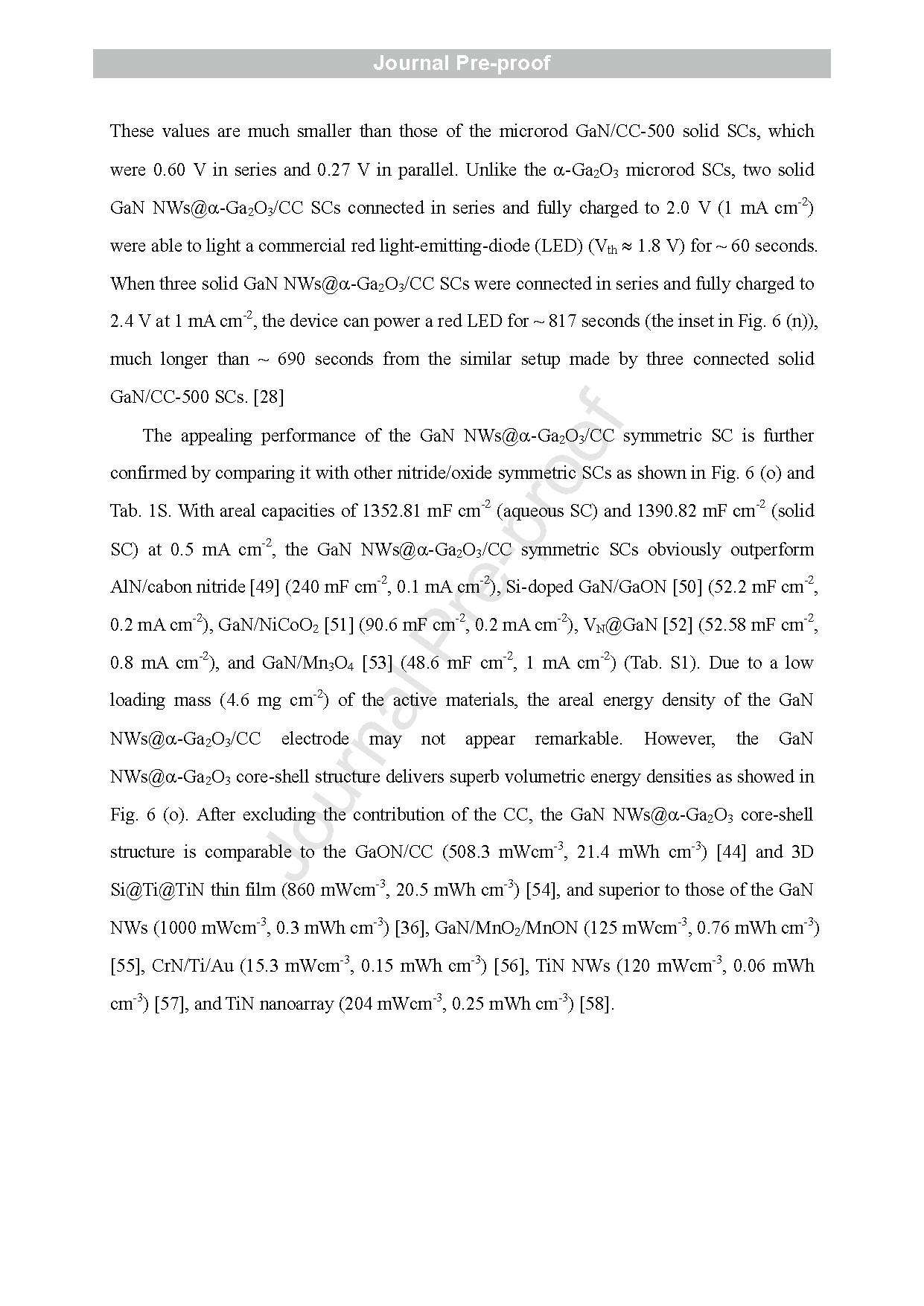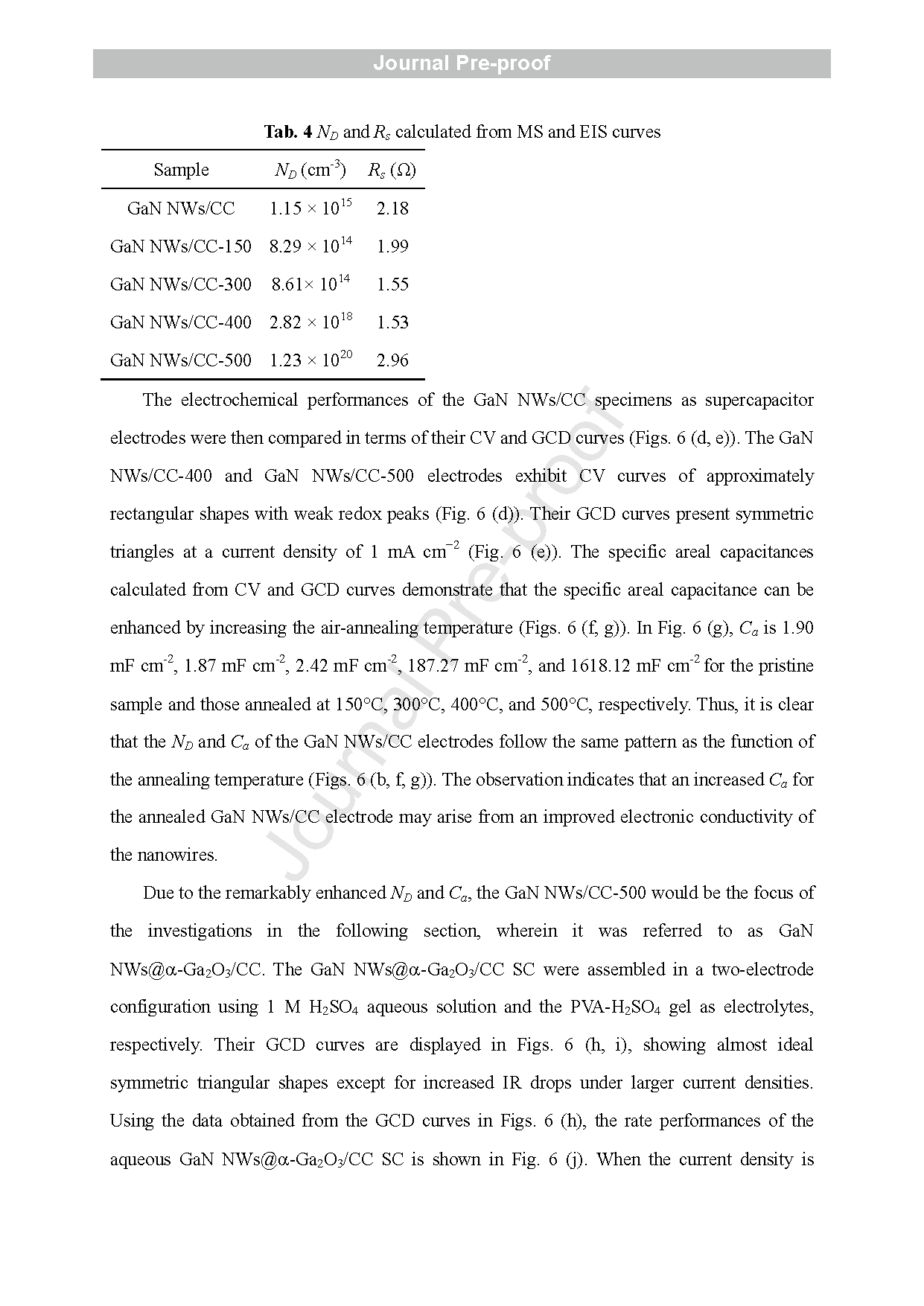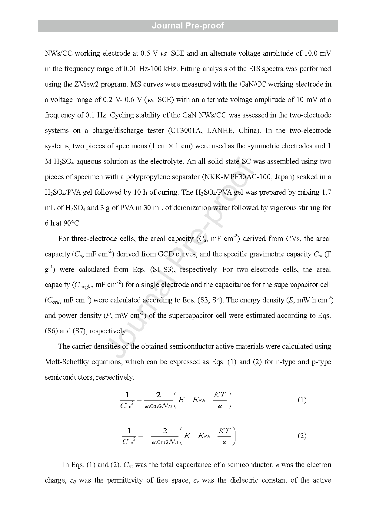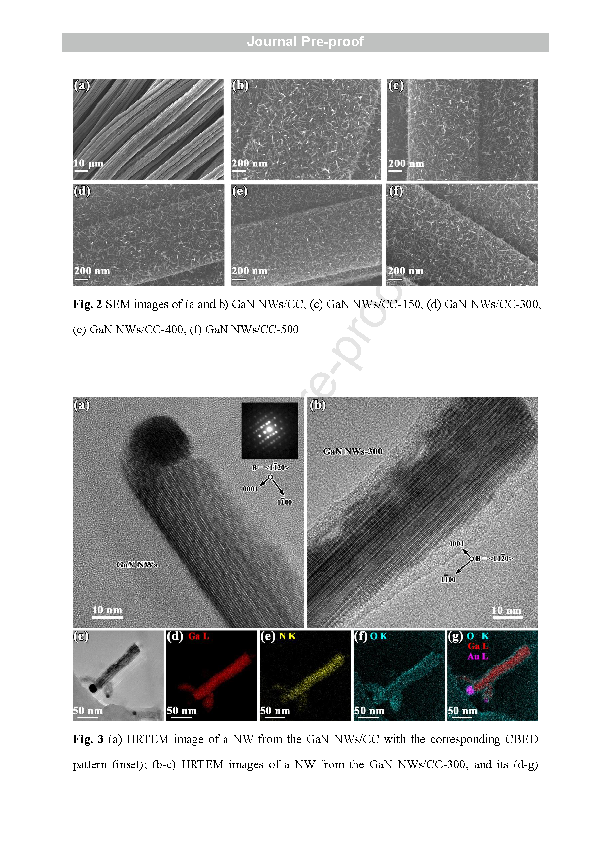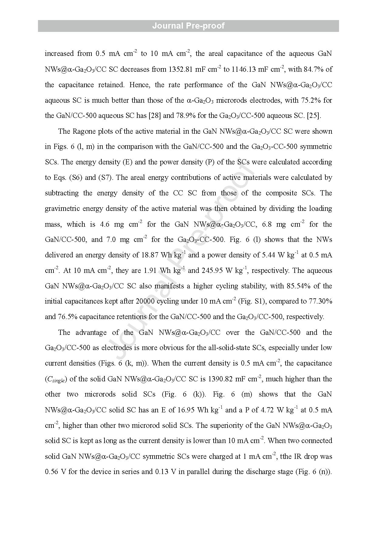 • 在碳布基底上成功制备了具有 GaN NWs@α-Ga2O3 结构的超级电容器电极。